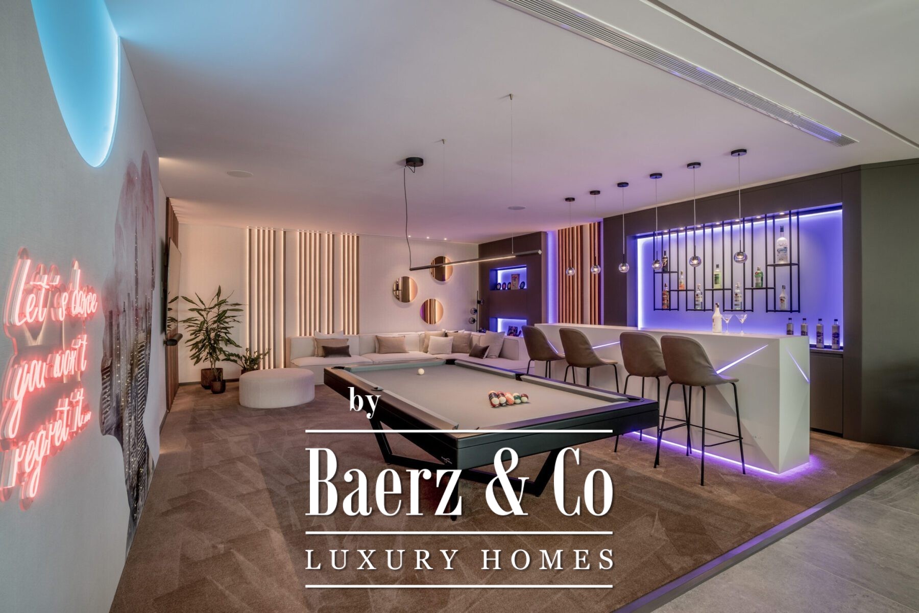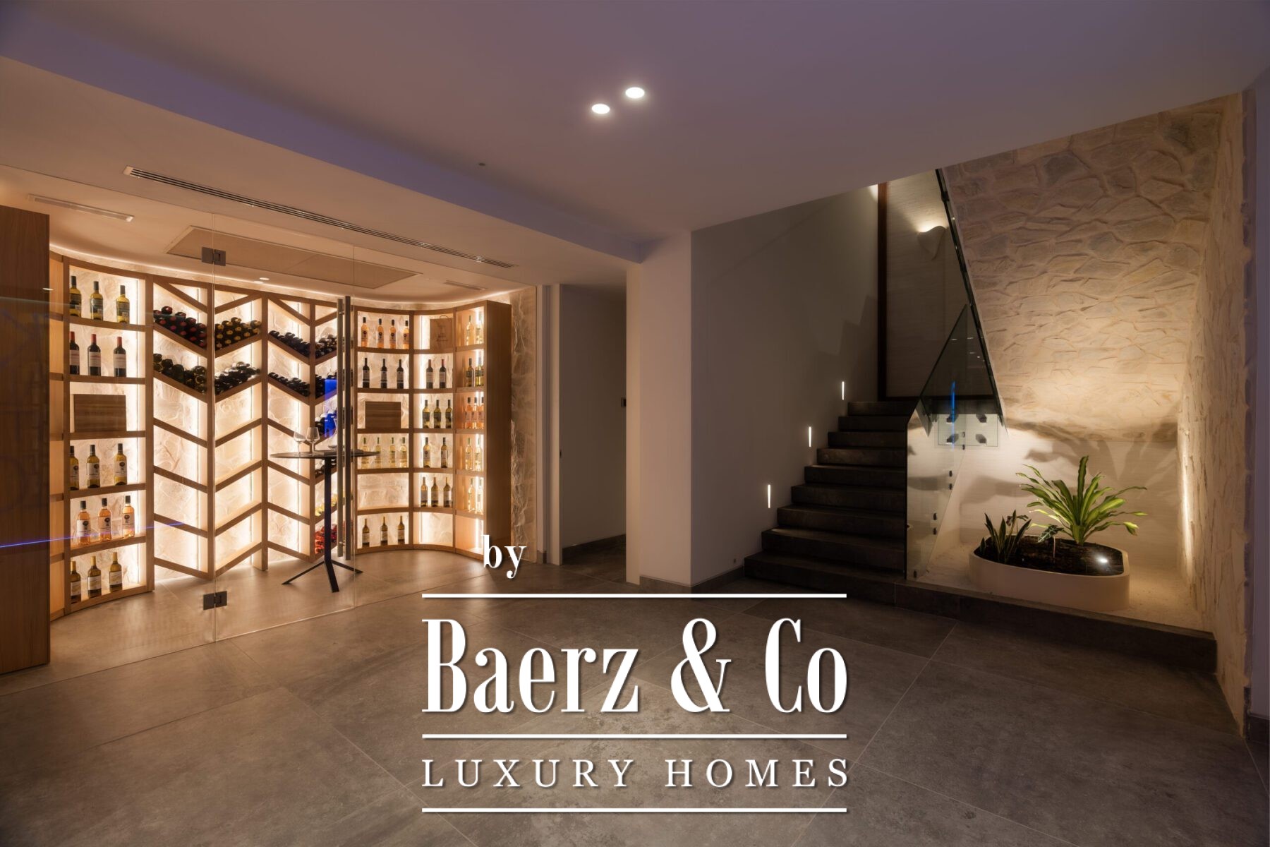 The villa’s architecture emphasises space and clarity, with six generous bedrooms, each finished to a refined standard. Seven bathrooms and three guest toilets are seamlessly distributed throughout the home. The master suite, positioned for optimal sea views, features a custom walk-in closet and a tranquil en-suite bathroom, offering a true private sanctuary.