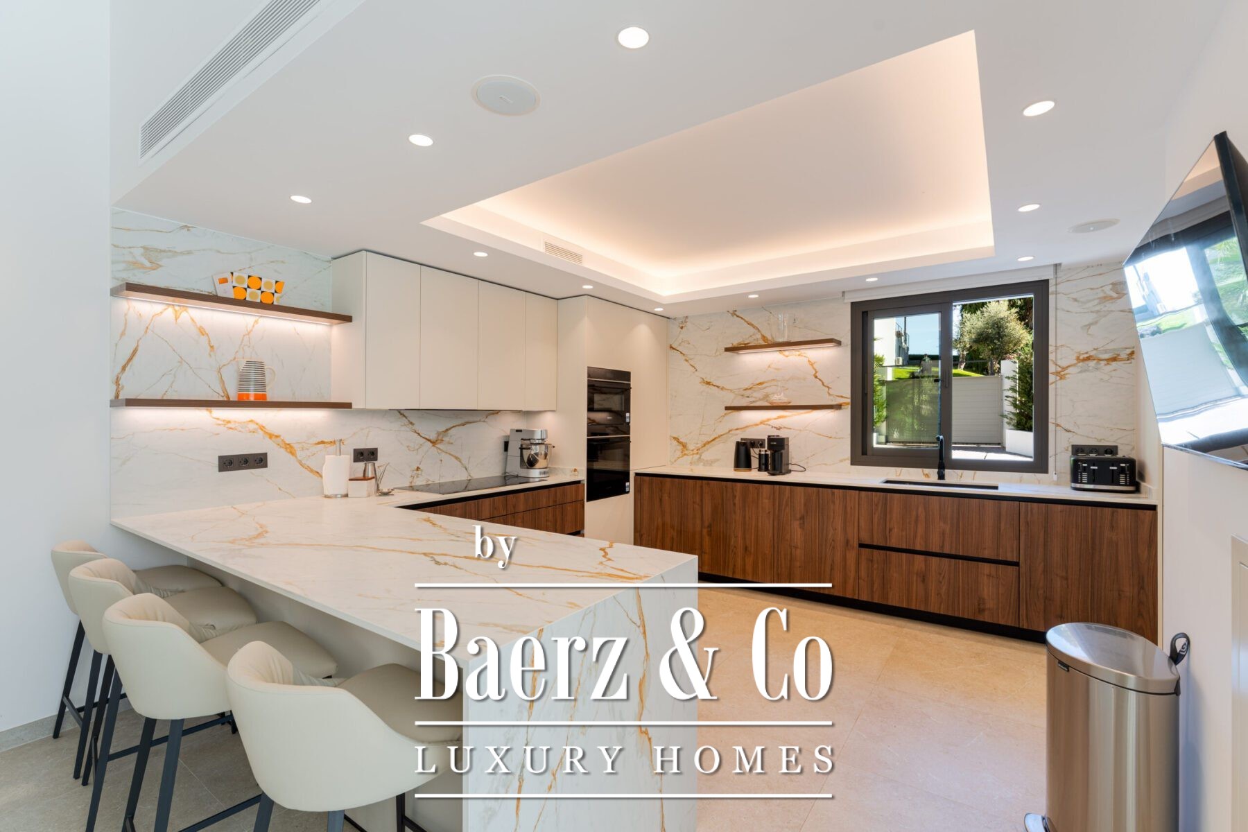 Carefully landscaped grounds enclose a private, heated swimming pool and generous terraces equipped with an outdoor kitchen, dining area, and chill-out zones for timeless alfresco living. Features such as underfloor heating, zoned air conditioning, and advanced security meet the expectations of international buyers. The villa offers total privacy while maintaining proximity to top international schools, Marbella Sports & Tennis Club, and seamless AP-7 motorway connectivity.