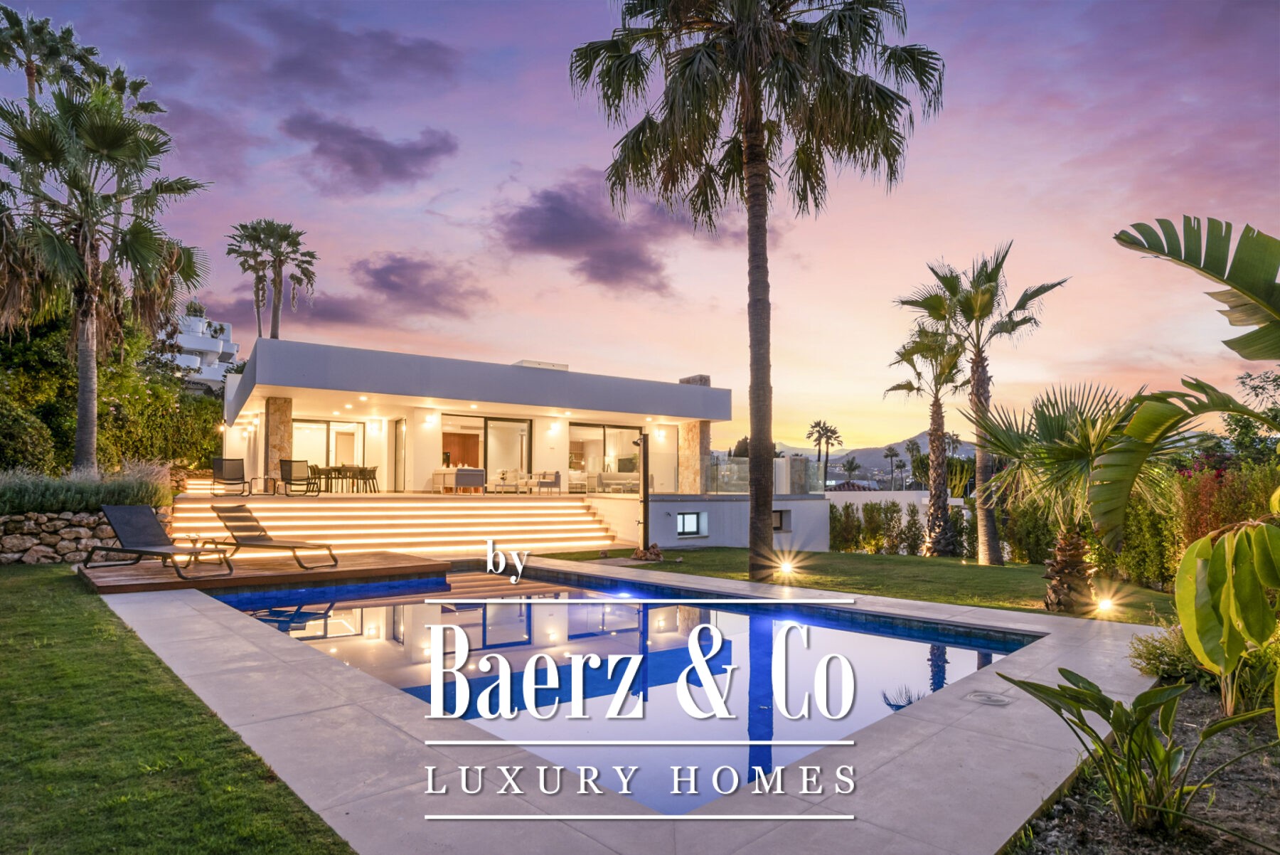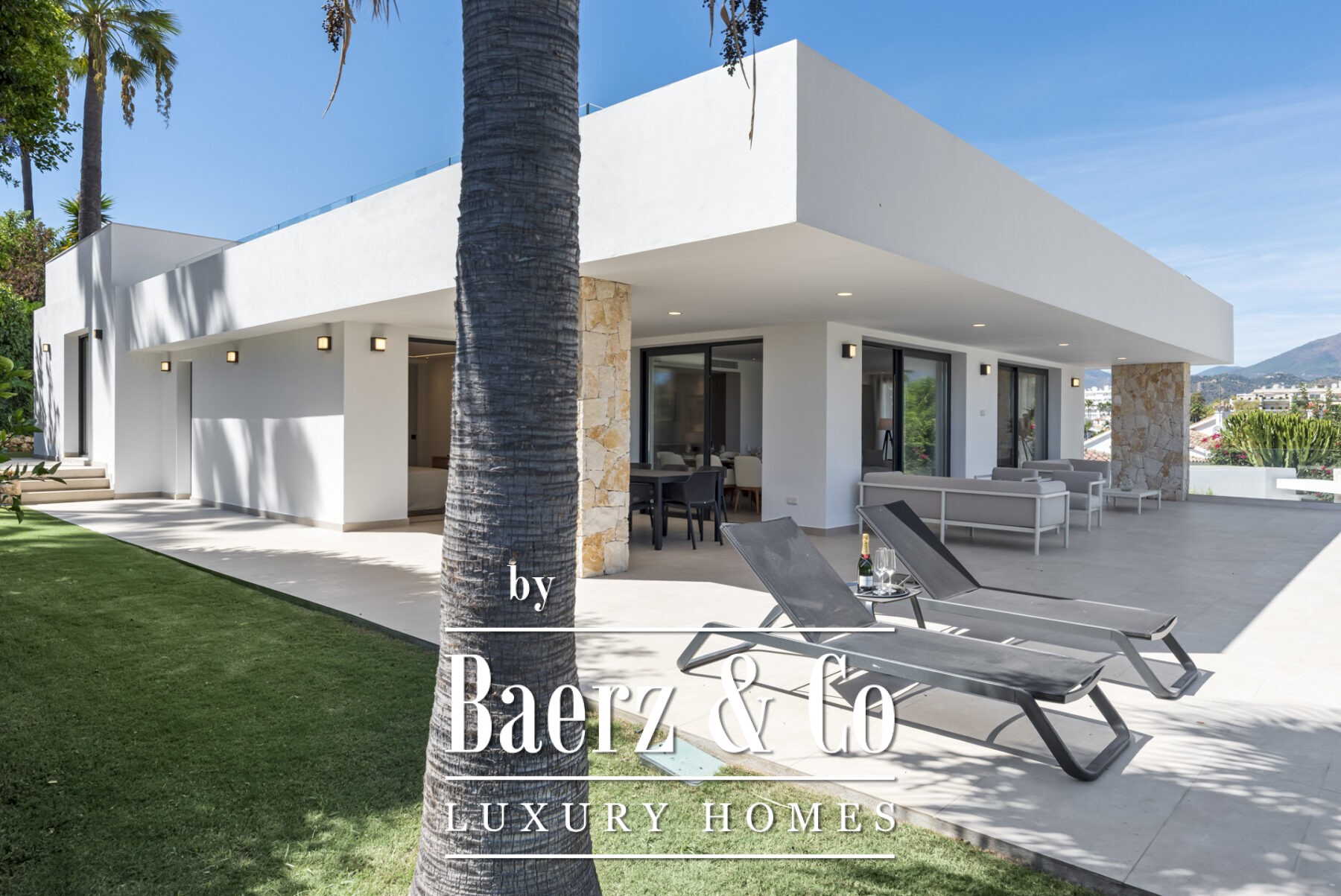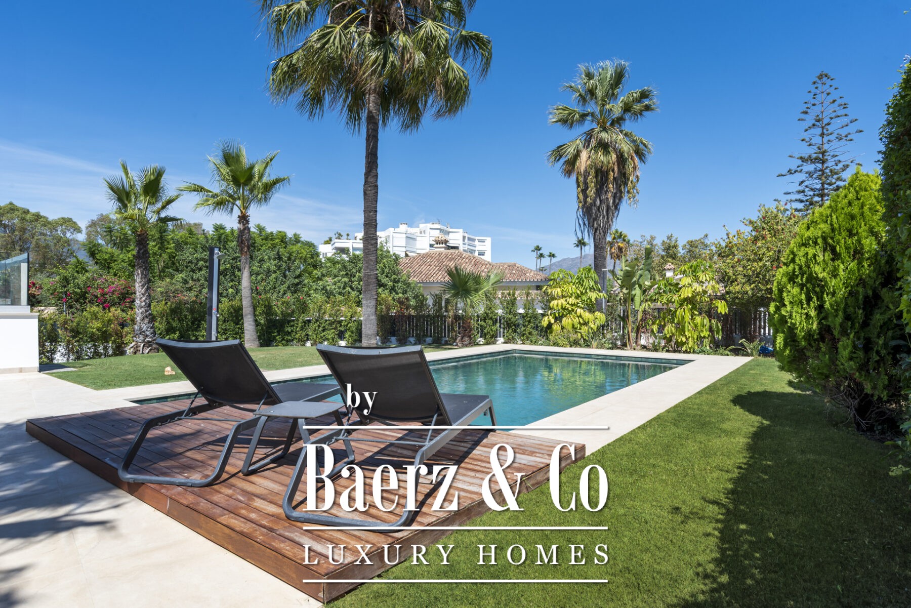 Villa Marbella with sea and mountain views welcomes you to an atmosphere of refined Mediterranean living. Ideally situated within walking distance of Guadalmina Golf Club and only minutes from the coastline, this 320 m² villa offers both seclusion and accessibility in Marbella’s coveted surroundings.