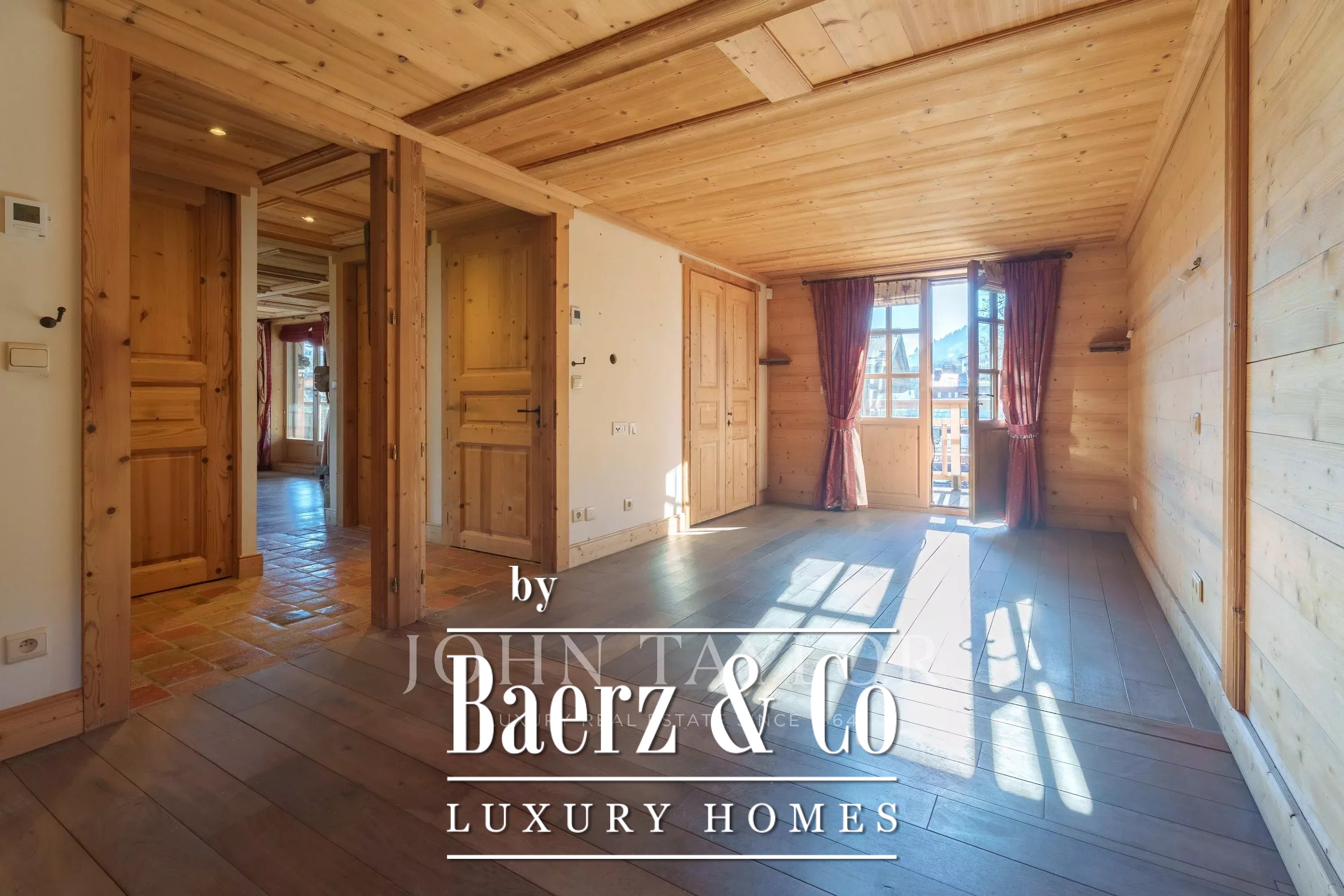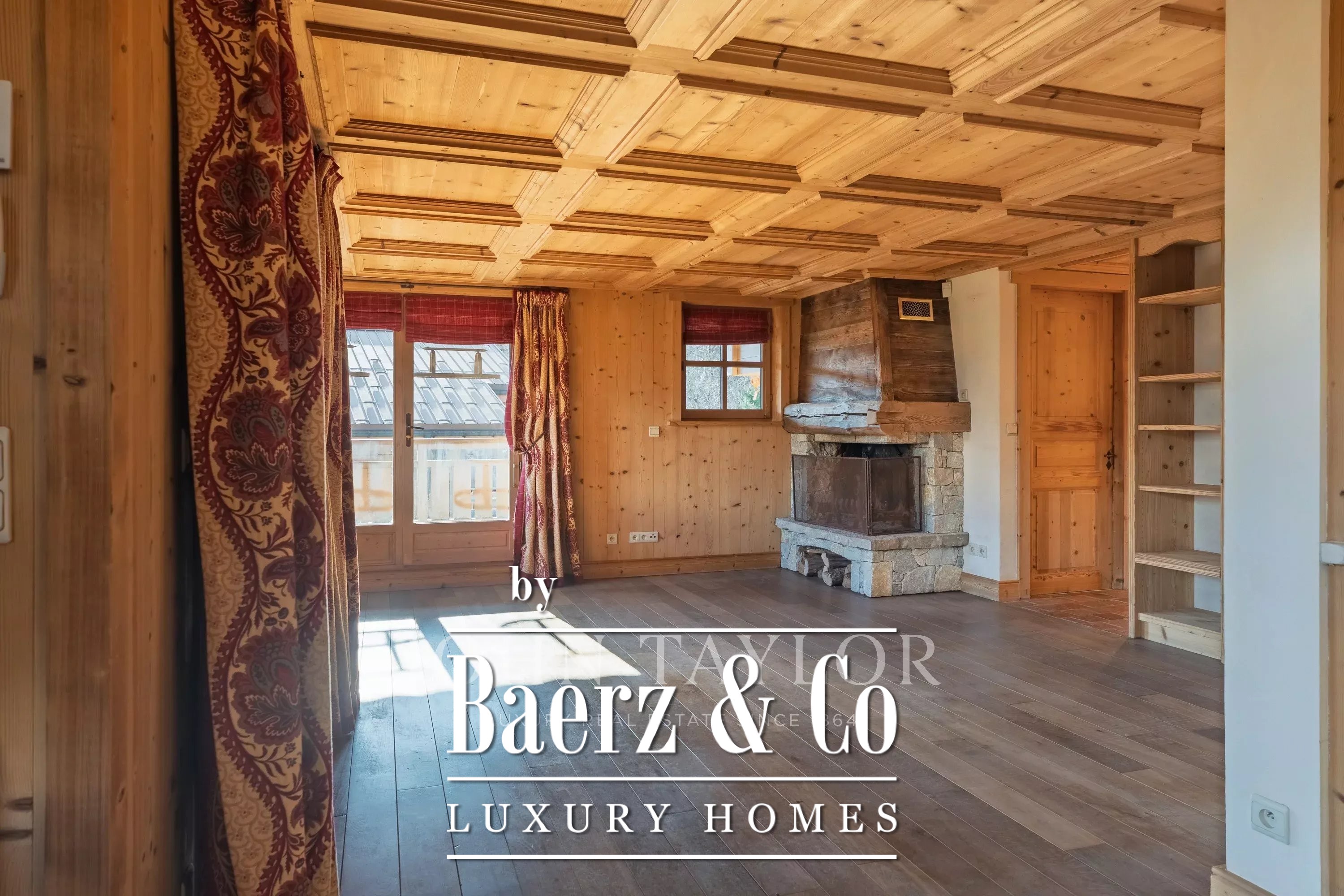 Apartment Megève offers a refined retreat just steps from the heart of the village. With a living area of 85.30 m², this property is set on the first floor and is easily accessed by elevator. The apartment welcomes you with an entrance hall leading into a luminous kitchen and a living room enhanced by a fireplace. Large windows open onto an expansive terrace, framing an unobstructed view that brings light and space together in quiet harmony.