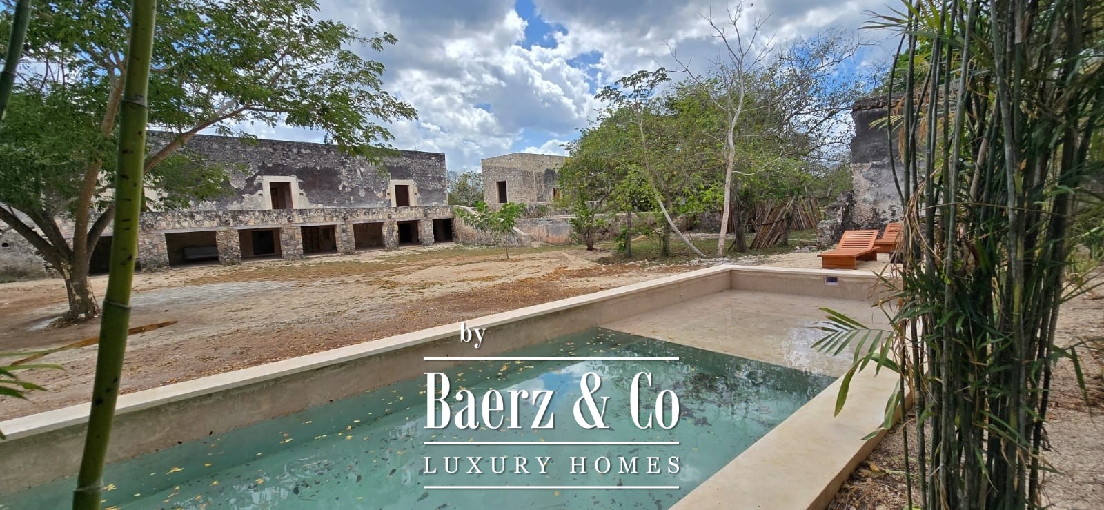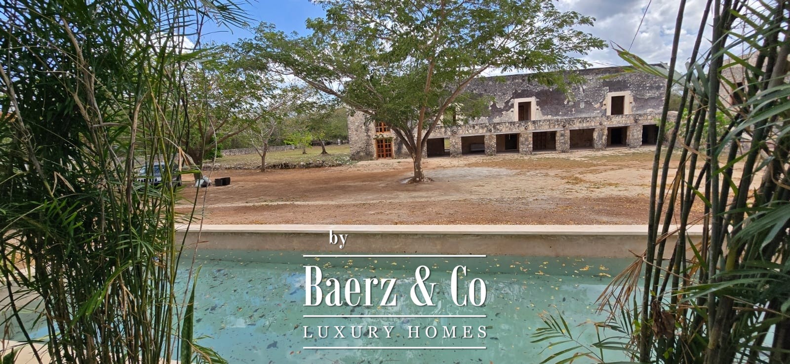 Hacienda with cenote Merida offers a rare encounter with 18th-century history and nature in deep Yucatán. This extraordinary property, comprised of 163 hectares and featuring a restored main house of 829 m², is a secluded retreat where heritage and privacy are experienced at every turn. Six bedrooms with private bathrooms, a traditional kitchen with comal and stone mill, spacious dining room, and an office form the heart of a layout designed for comfort and authenticity.