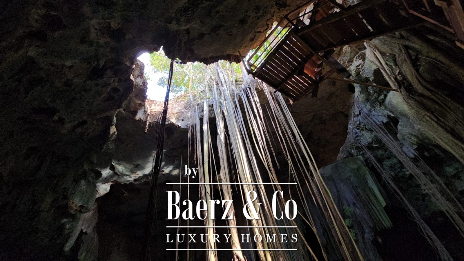 The estate is surrounded by jungle, with cenote views enhancing the experience of place. Colonial corridors, original stone walls, an orchard under restoration, and a swimming pool with lounge areas create layered moments throughout the grounds. The cenote itself reveals stone waterfalls and crystal-clear waters accessed by a hand-crafted zapote wood staircase, providing an intimate connection to the land’s legacy.