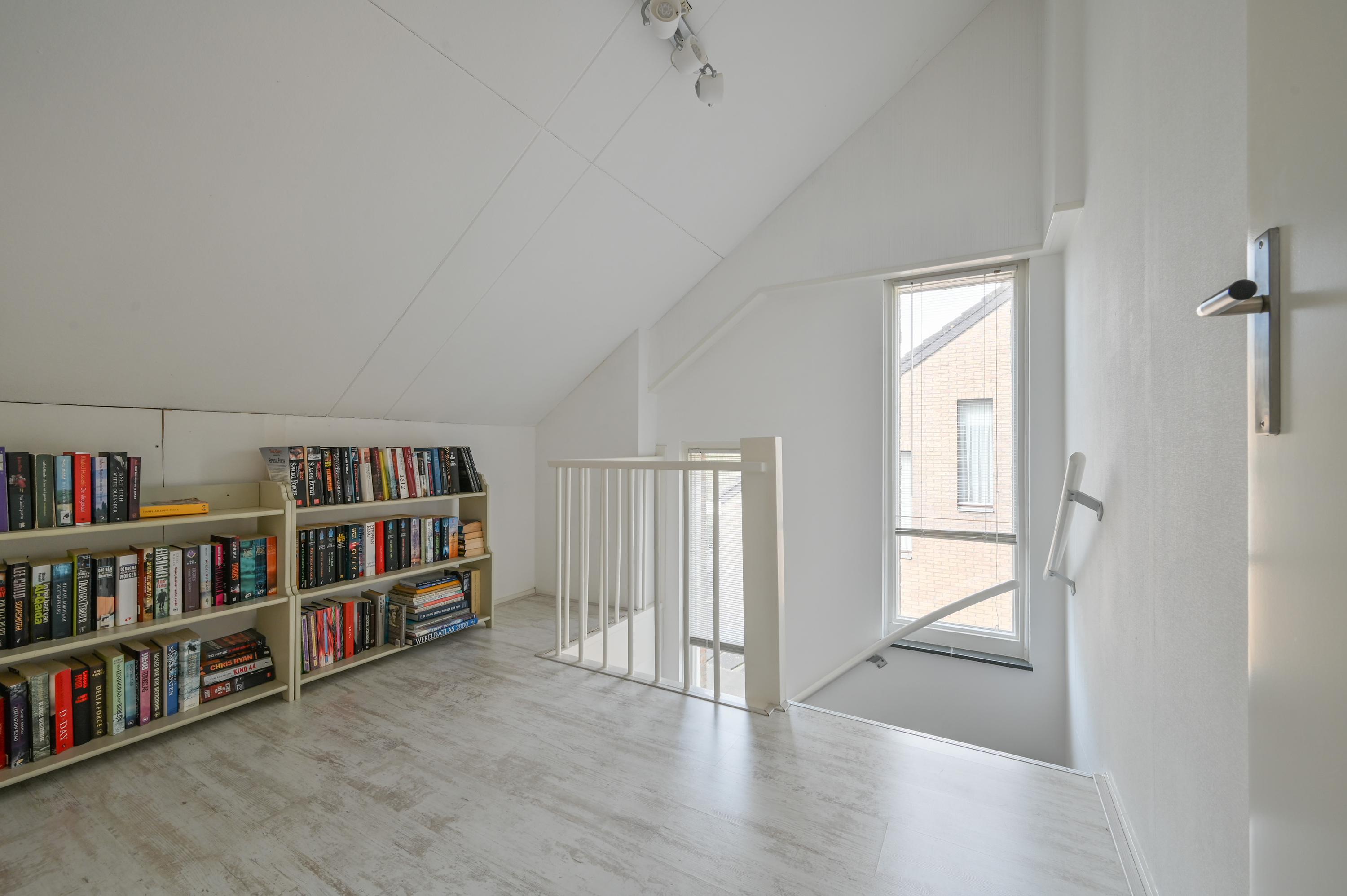 The second floor is surprisingly spacious and bright. The landing is generously sized and ideal for use as a workspace or home office. Thanks to the windows in the stairwell, there is an abundance of natural light, creating an open and pleasant atmosphere.
