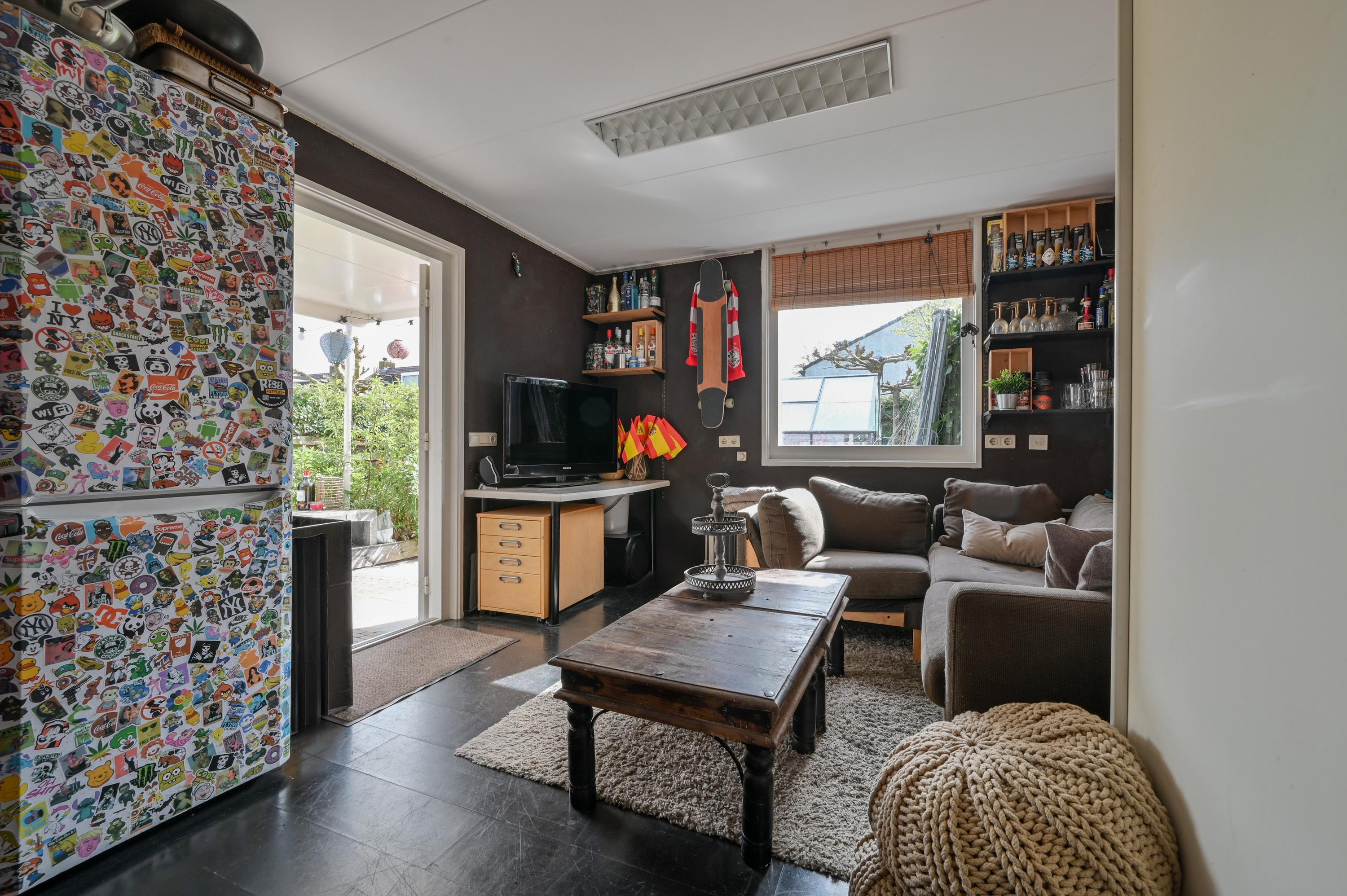 The rear is currently used as a cozy lounge area, an extension of the home where you can relax. This space is highly versatile and can easily be converted into an office, playroom, studio, or additional (work) room. It can be accessed dry from the house via the covered area.