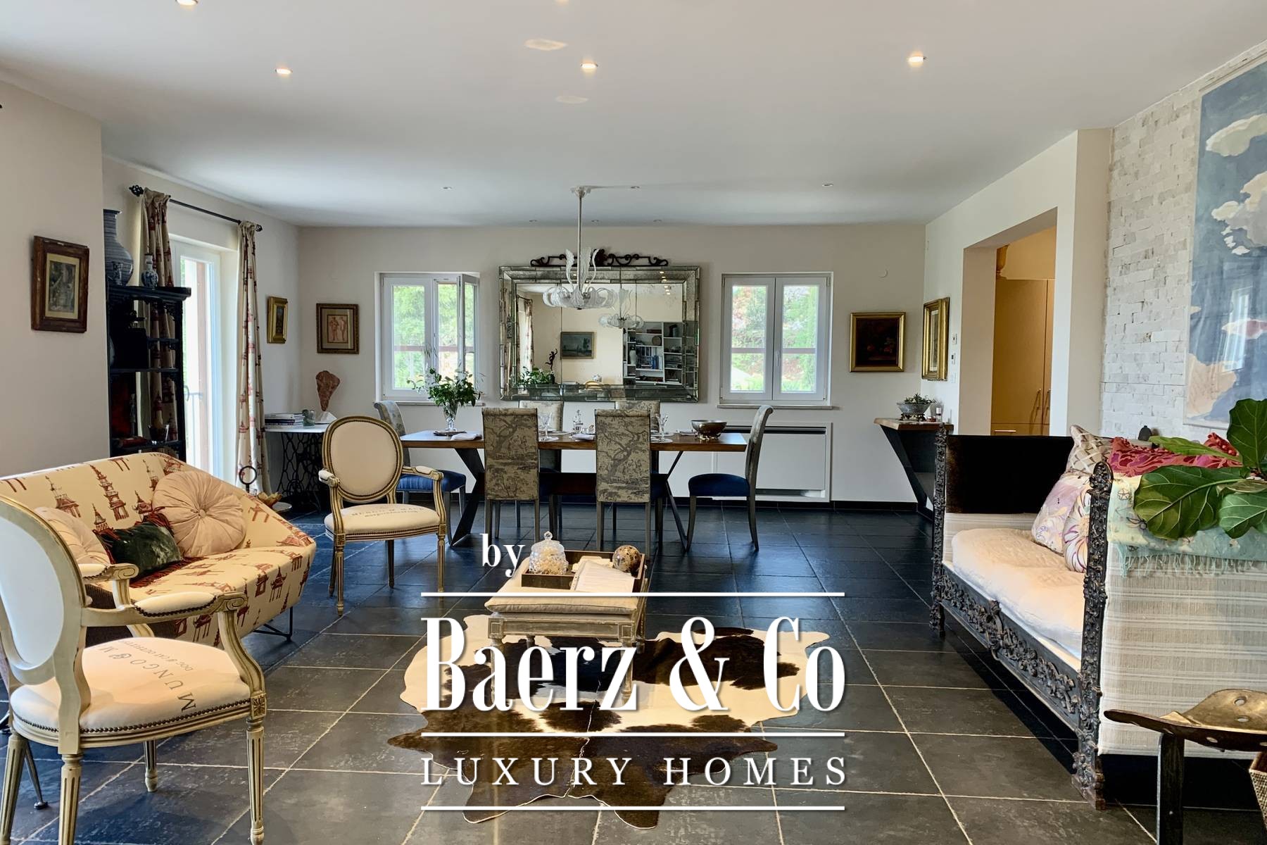 A lower-level tavern and an attic add layers of function and charm. Poolside lounge areas, a 32 m² swimming pool with countercurrent, and Mediterranean stone benches extend the living experience outdoors. Underfloor heating, air conditioning, WIFI controls, and comprehensive security integrate seamlessly for a modern pace of life.