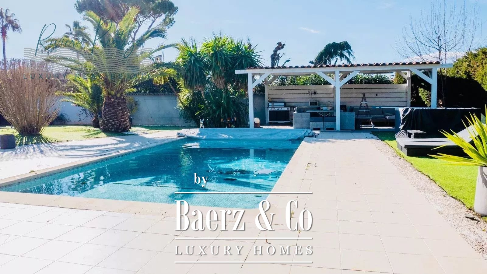 Materials and features reflect a commitment to comfort and security, from home automation to double glazing, air conditioning and mains gas heating. The villa opens to a heated 8x4-meter swimming pool with an elegant pool house, set amidst privacy-giving gardens. Additional modern conveniences include an alarm system, video surveillance, electric shutters, and optical fiber, supporting both security and connectivity. The presence of a fireplace and barbecue underscores its open, sociable heart, while the location assures direct access to Mougins’ celebrated amenities.