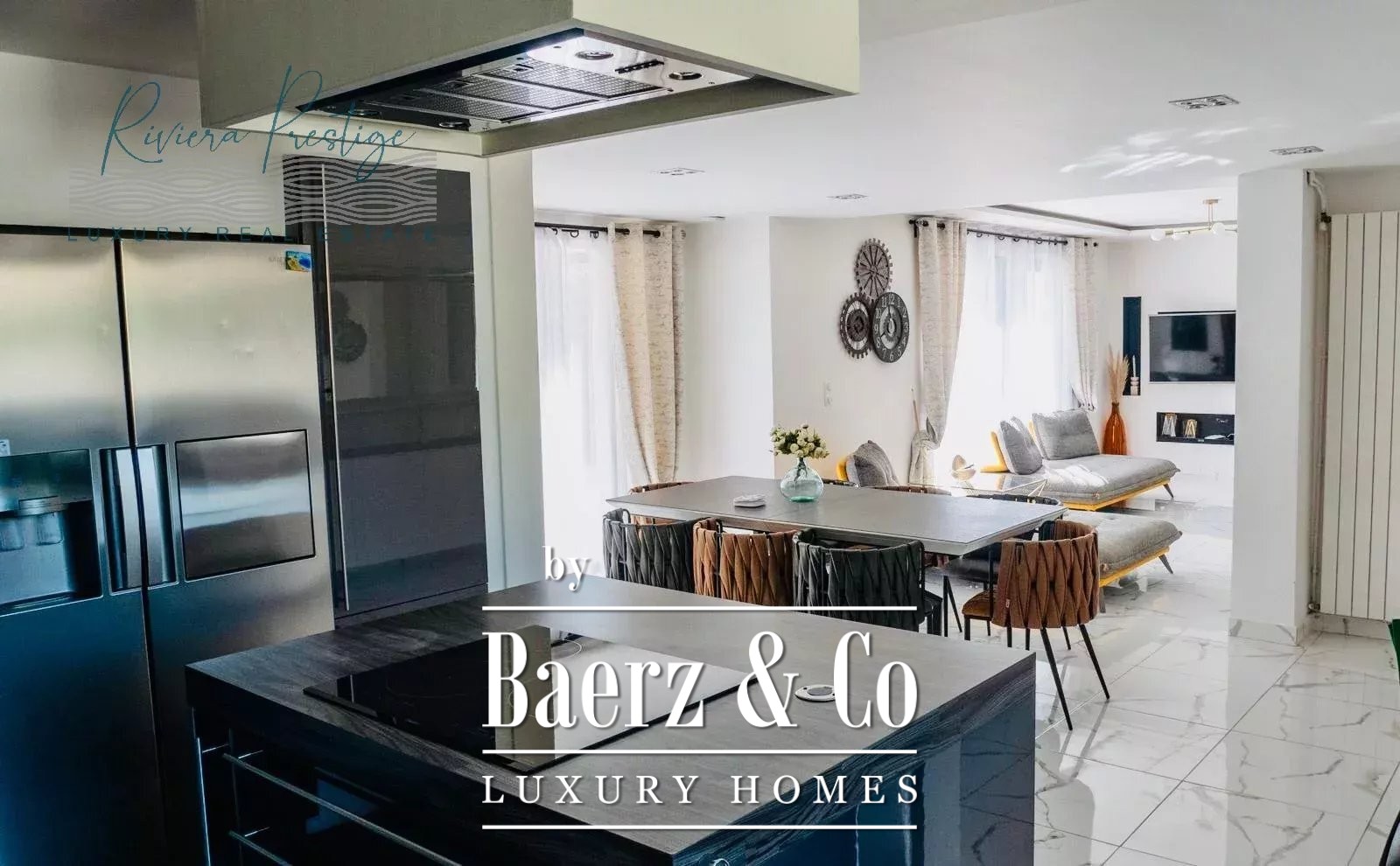 House Mougins is situated a few steps from the renowned golf course, seamlessly integrating refined living with tranquil landscaped surroundings. This single-storey villa, fully renovated in 2018, reveals approximately 140 m² of interior space, extending over a carefully tended 1,700 m² plot. The flow of light and the spatial rhythm have been thoughtfully composed, dividing the villa into two distinct bedroom wings: one side with two bedrooms and a bathroom, the other with two further bedrooms, each with its own shower room, offering adaptable space where one currently serves as a dressing room.