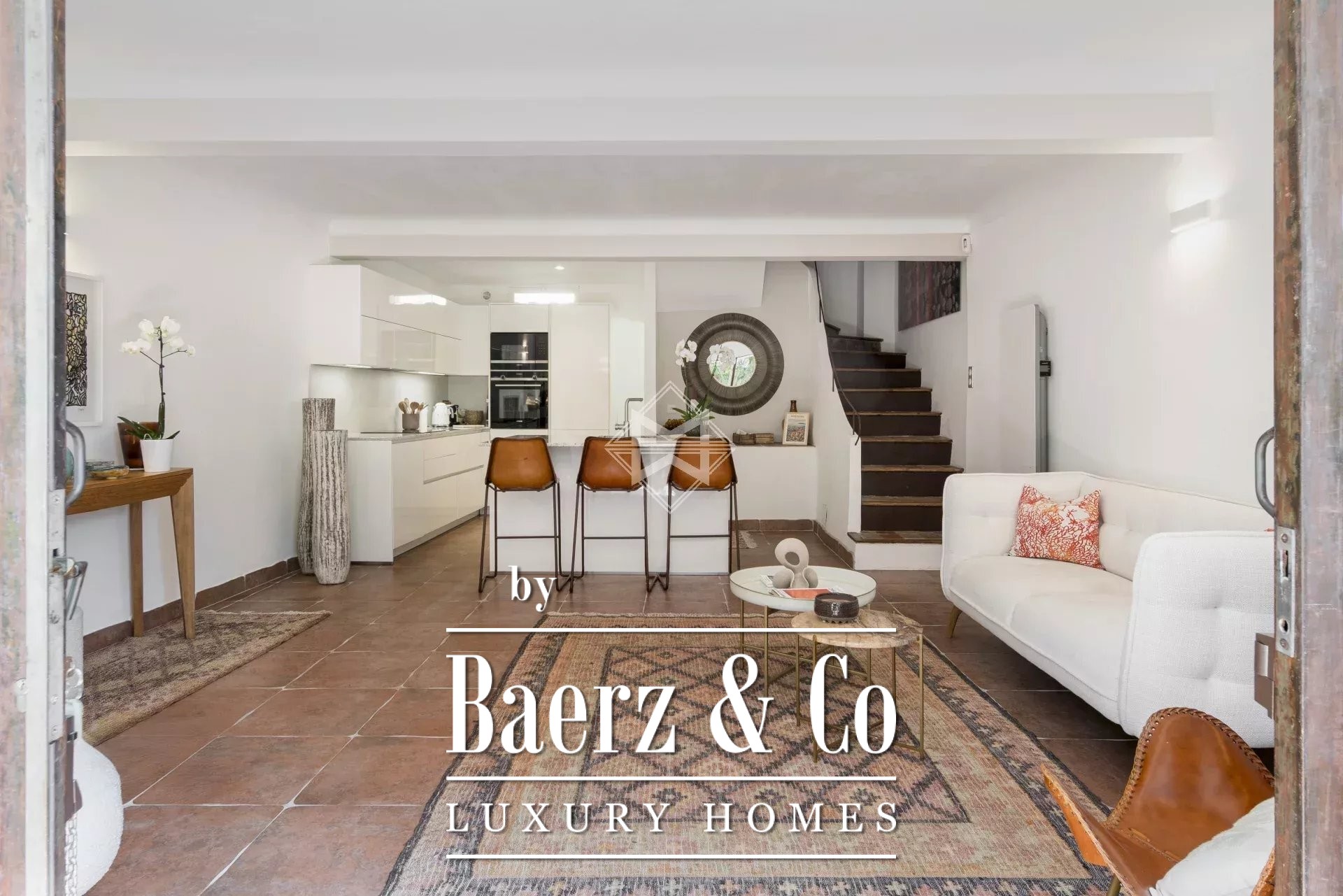 Villa Mougins stands discreetly within a quiet alley in the heart of the old town, providing a rare and refined balance of privacy and connection to village life. This villa Mougins offers approximately 100 m² of sunlit living space, where the atmosphere is shaped by soft light and gentle rhythms. The main floor flows between lounge, dining, and an open kitchen, all seamlessly linked to a flower-filled terrace that infuses the home with a sense of tranquility.