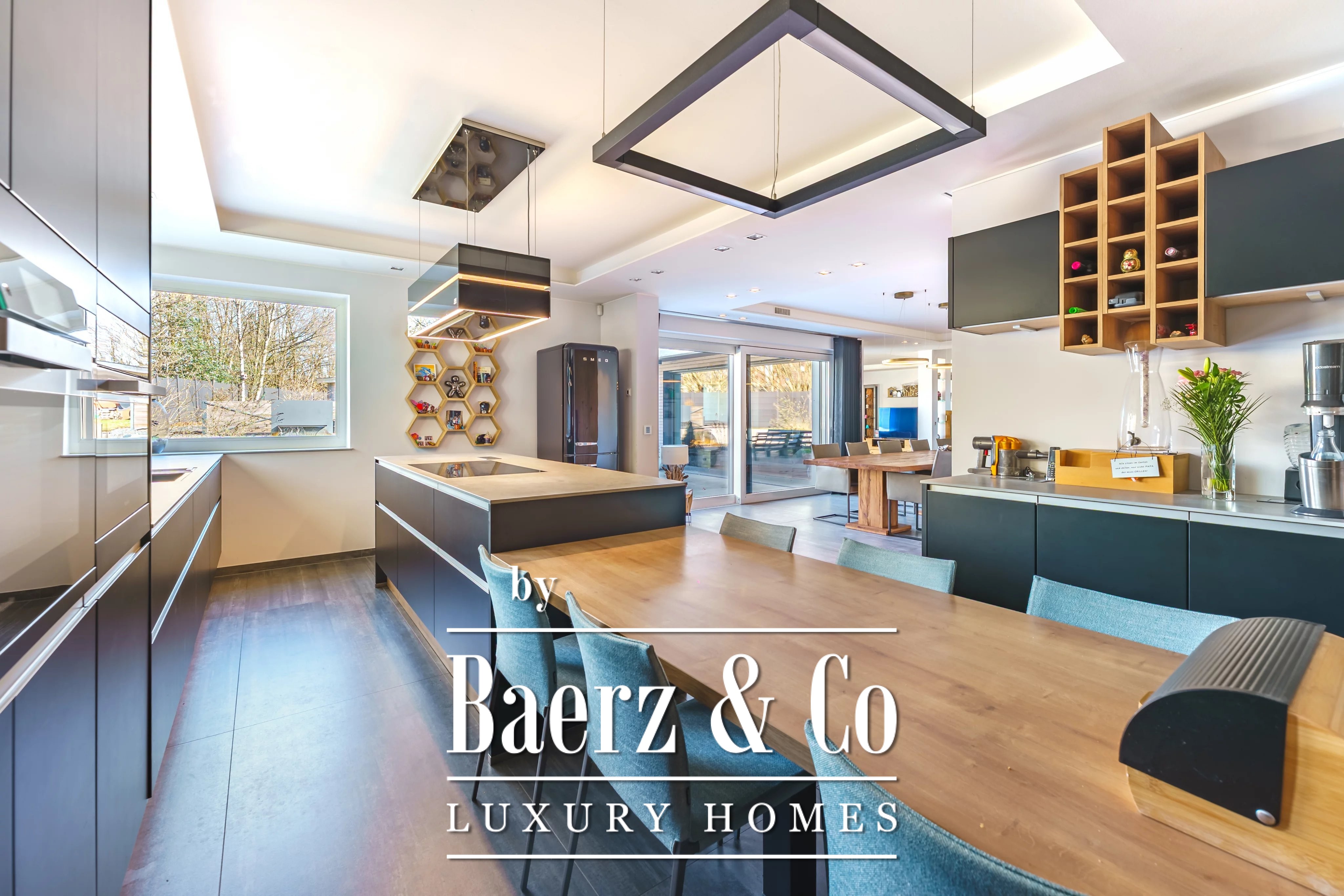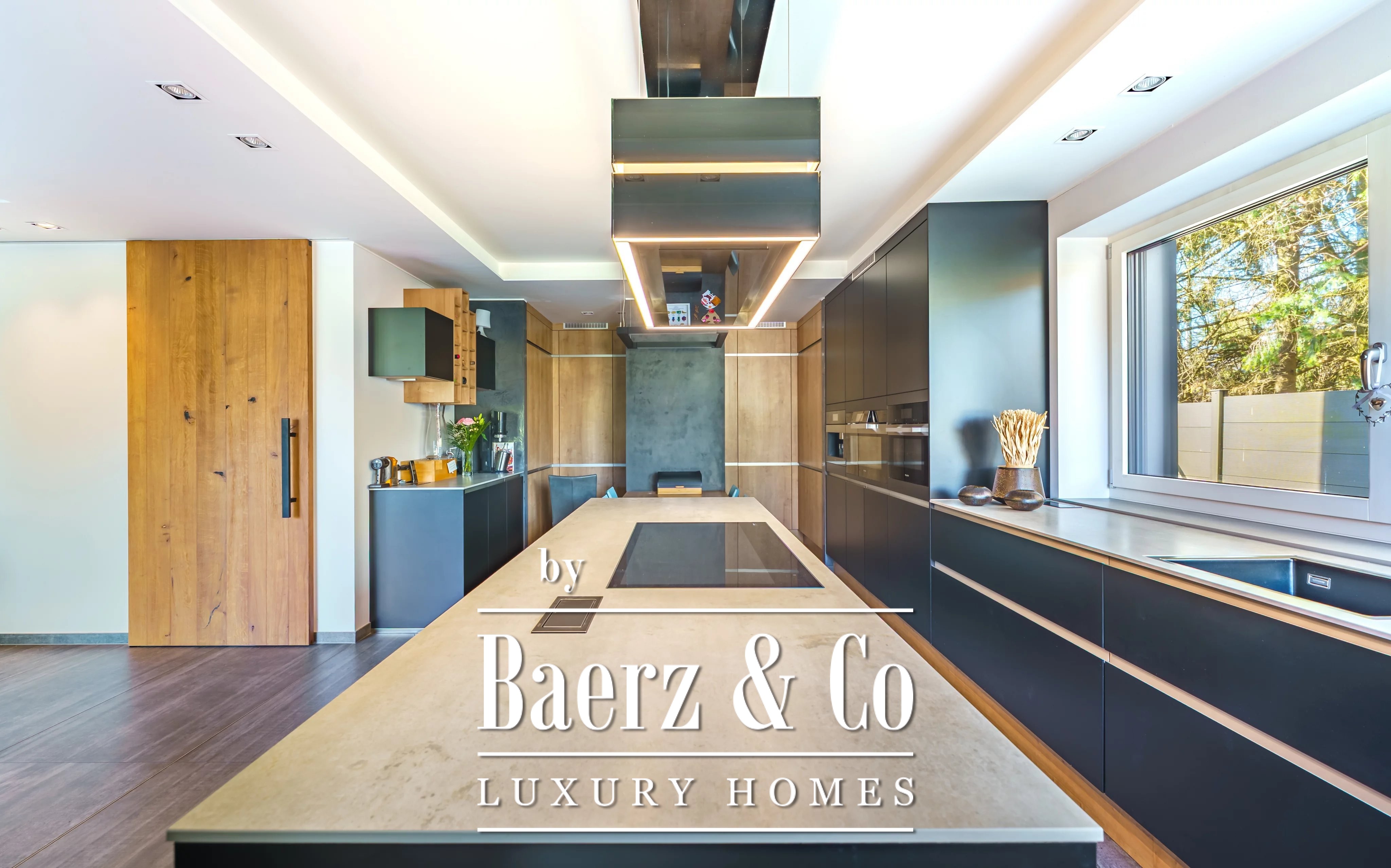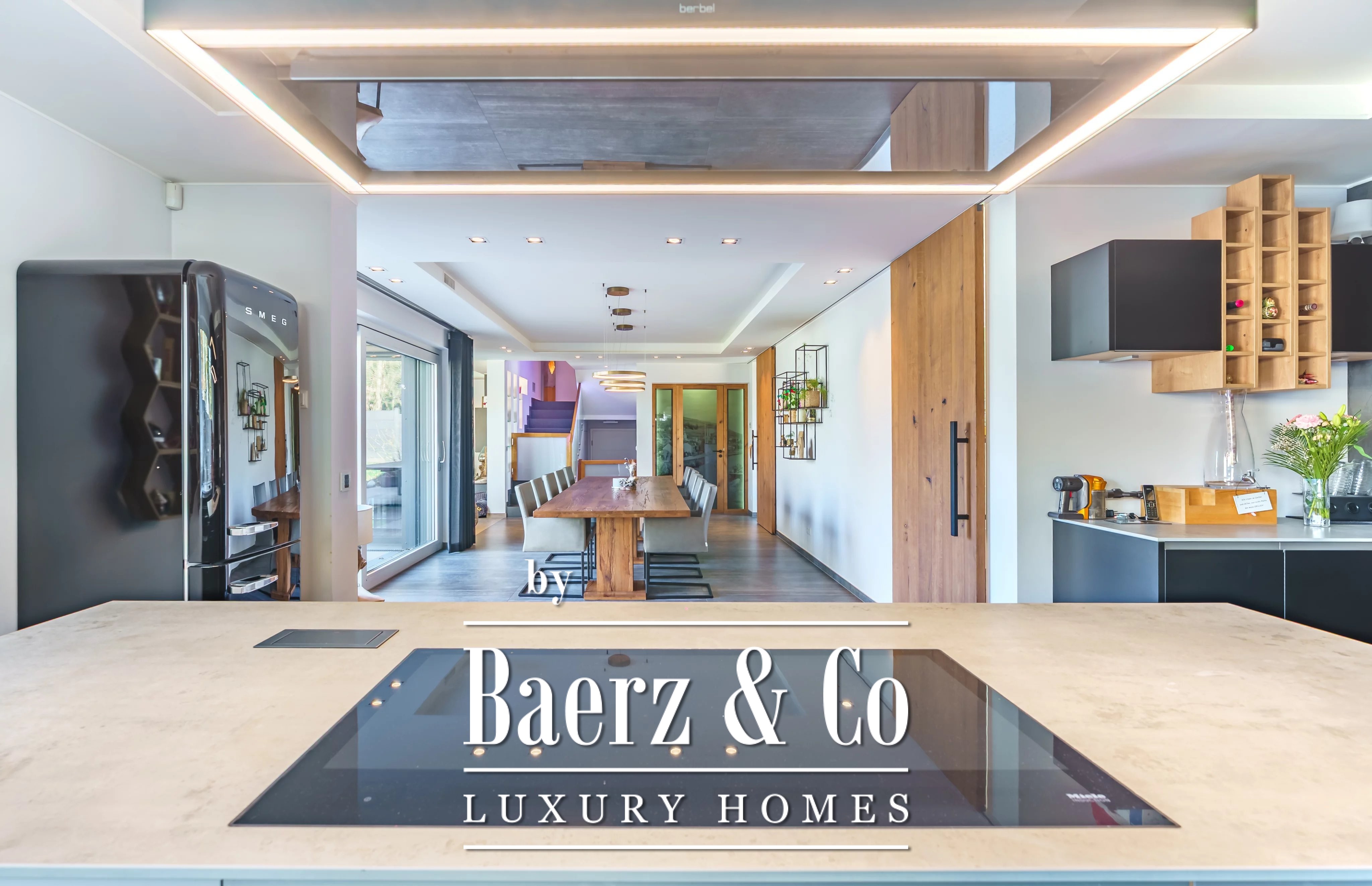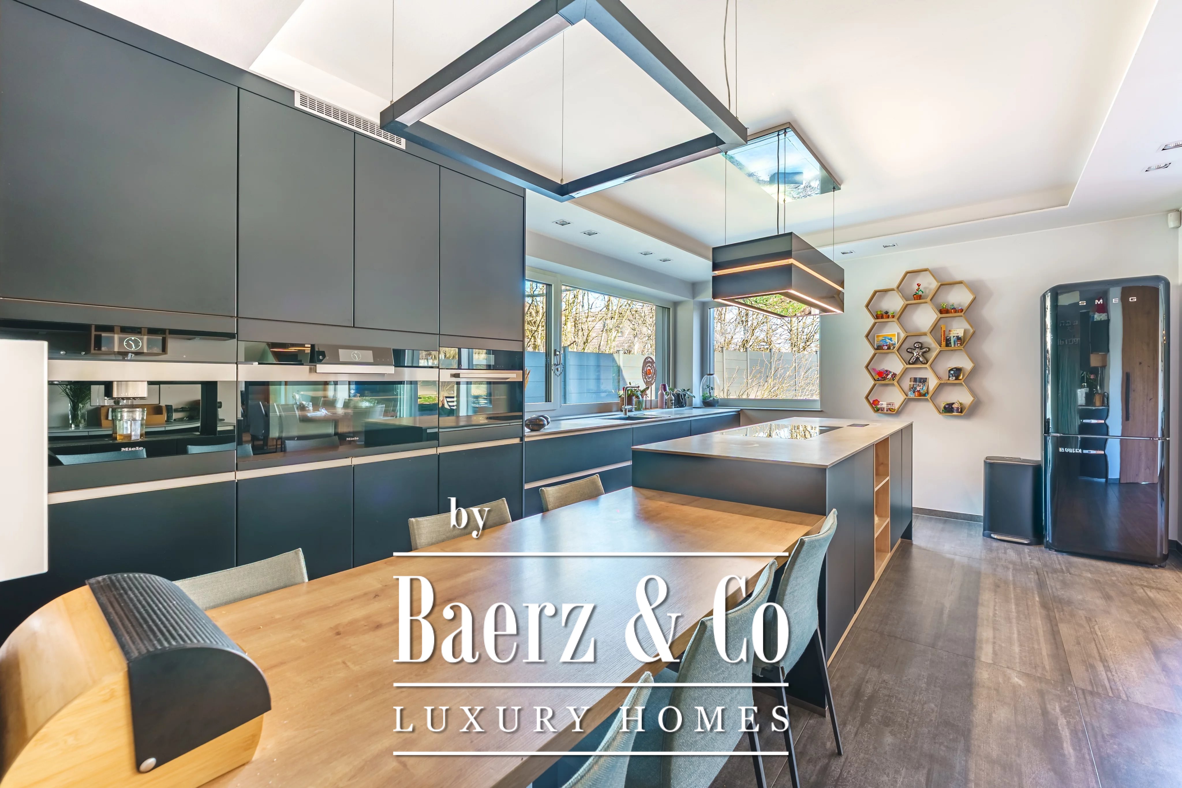 Upstairs, an additional living room creates a private retreat for family gatherings. There are five bedrooms and four bathrooms, including a master suite with a dressing room, private shower room, and a guest bedroom with en-suite. The laundry room is discreet and efficient, supporting daily comfort.