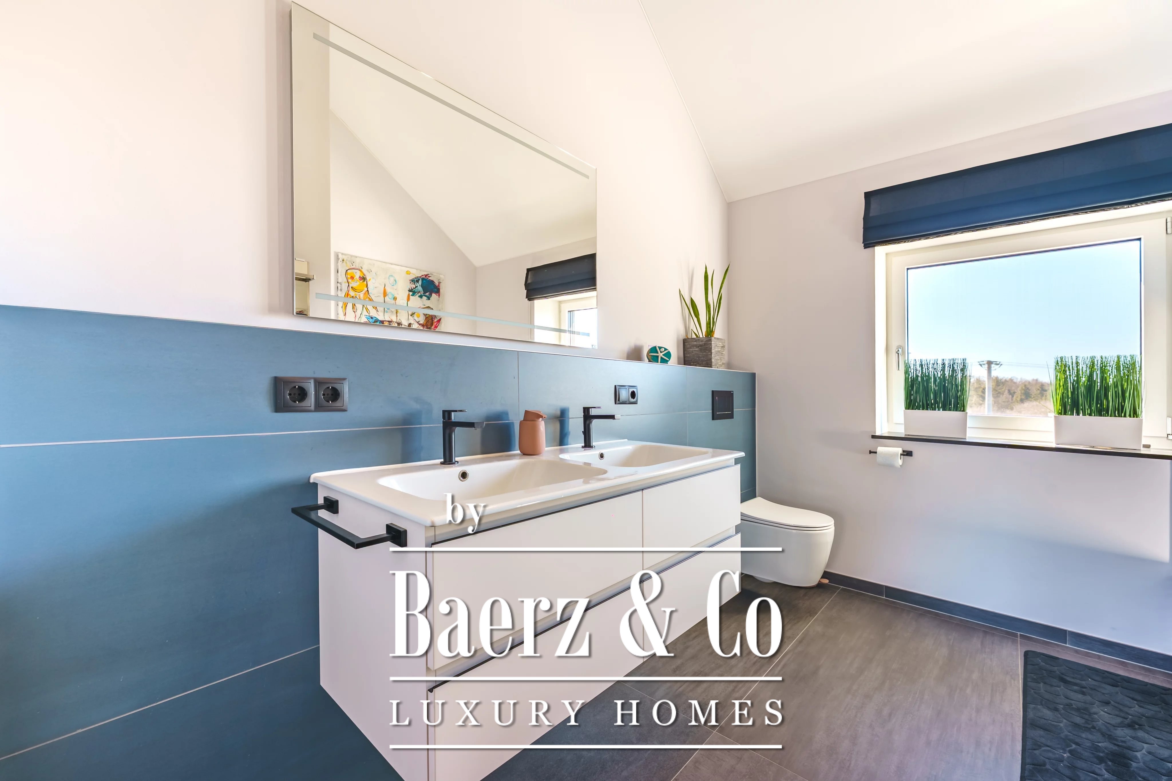 The wellness area is both distinctive and serene, featuring sauna, Jacuzzi, and shower on a covered terrace, suited for all seasons. The home’s systems are forward-thinking, with a KNX home automation system, triple-glazed windows, geothermal and photovoltaic energy, solar hot water, security, and preparation for a future lift. This luxury house for sale in Nocher-Route offers a rare balance of contemporary technology and pastoral calm, set against far-reaching country views.