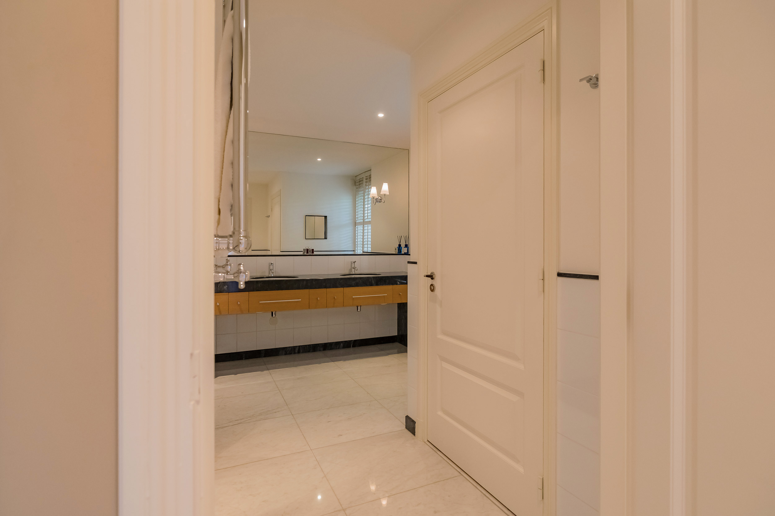 The villa exudes tranquility, space, and elegance. An elegant entrance, richly surrounded by flowers, welcomes you at the door. The spacious hall leads to the cozy living room with fireplace, adjacent dining room, and delightful kitchen with French doors to the garden. A place that invites you to spend long evenings cooking, dining, and enjoying life. A practical utility room and a spacious study on the ground floor complete the picture. All rooms have direct access to the garden, veranda, or one of the balconies.