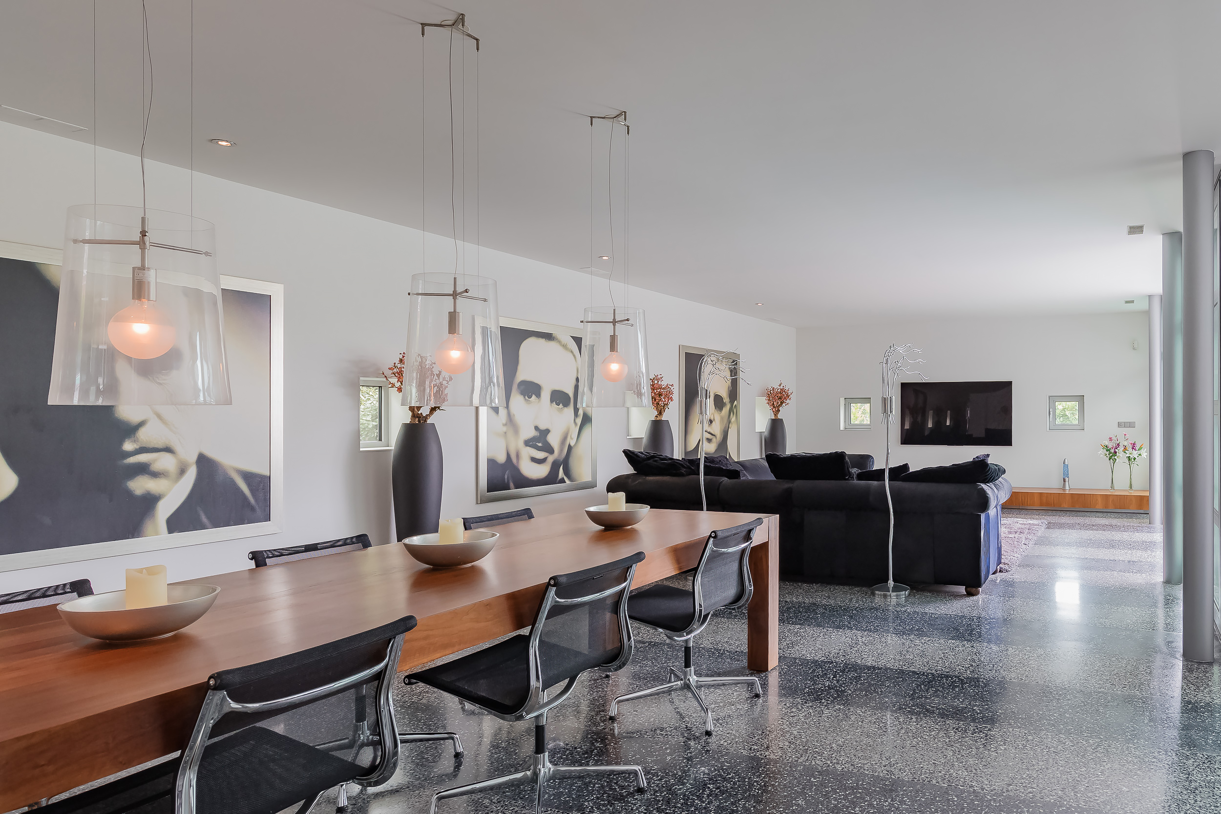 The large living room has a span of up to 18 meters. Enough space for a generous sitting area and a large dining table for cozy dinners.