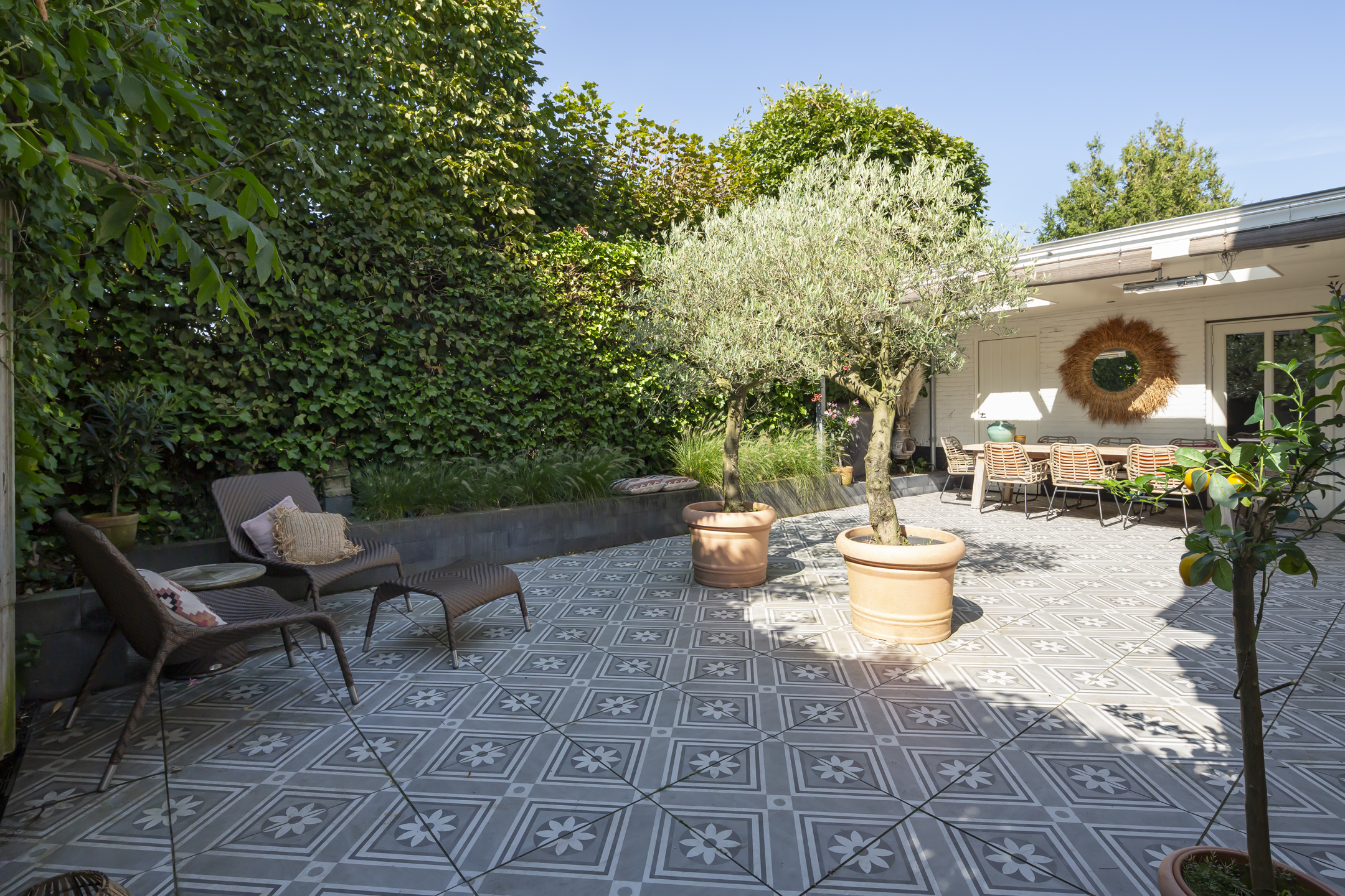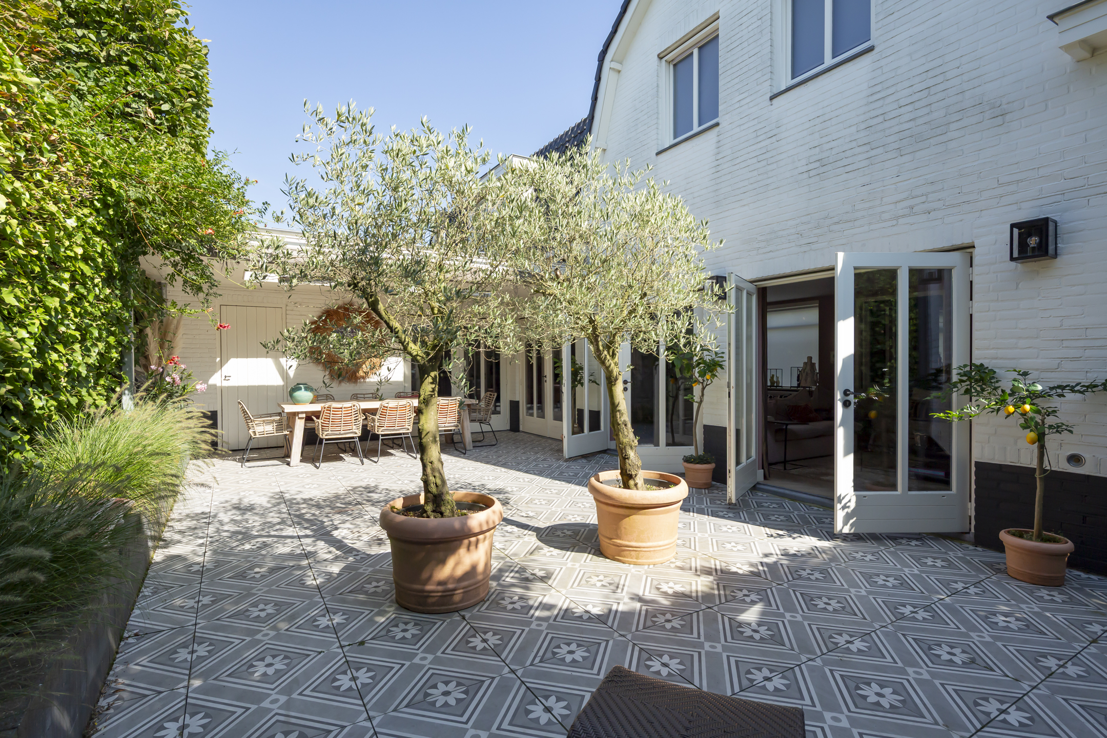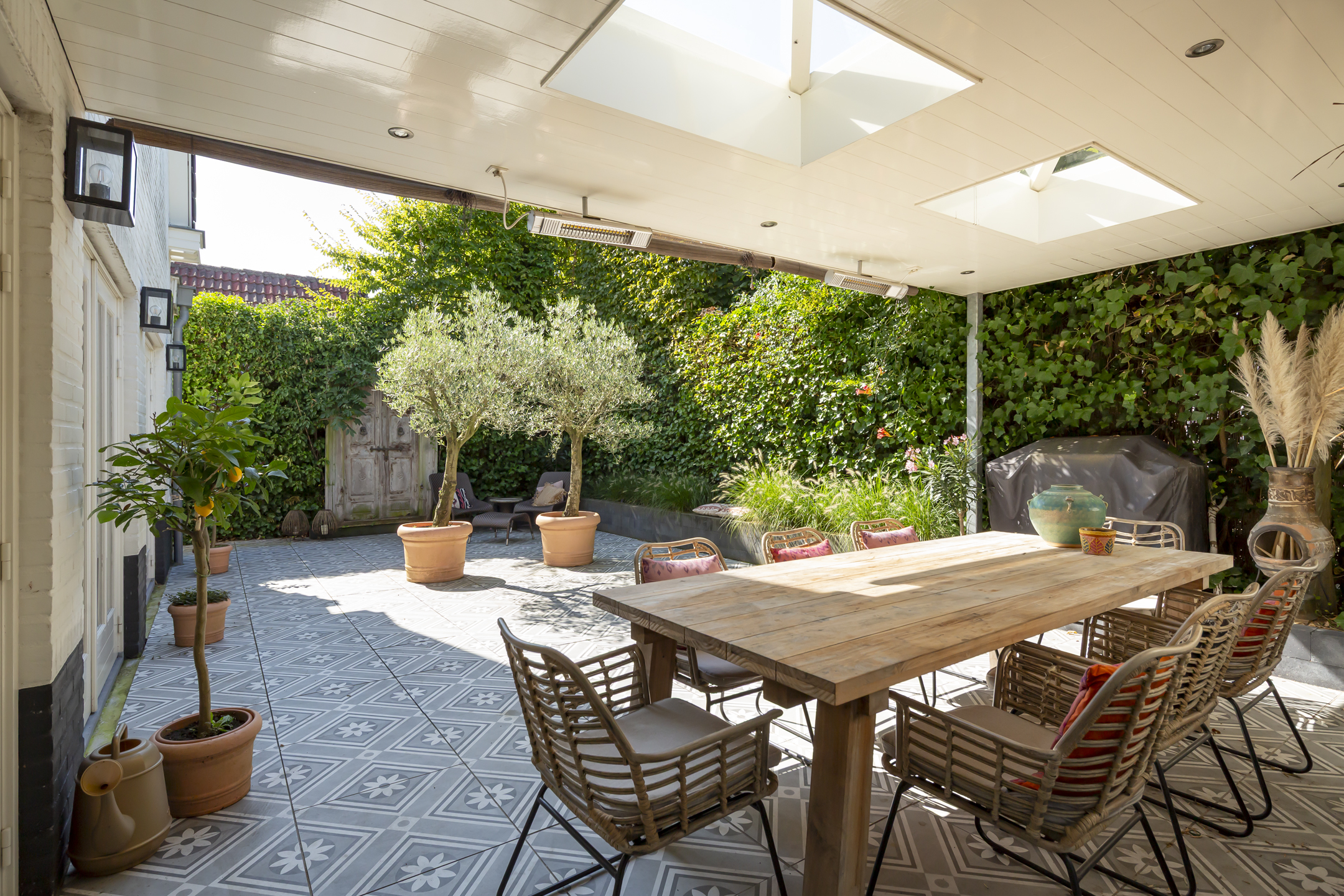 Outside, two distinct gardens allow for year-round enjoyment and complete privacy, with mature planting and stone paving. The property includes off street parking for multiple vehicles behind secure gates, and the garage is accessible from both the front and the rear. Extensive insulation and modern heating underline comfort. The location provides immediate access to natural reserves, cultural destinations, and the vibrant life of Oisterwijk, recognized for its rich amenities and green surroundings.