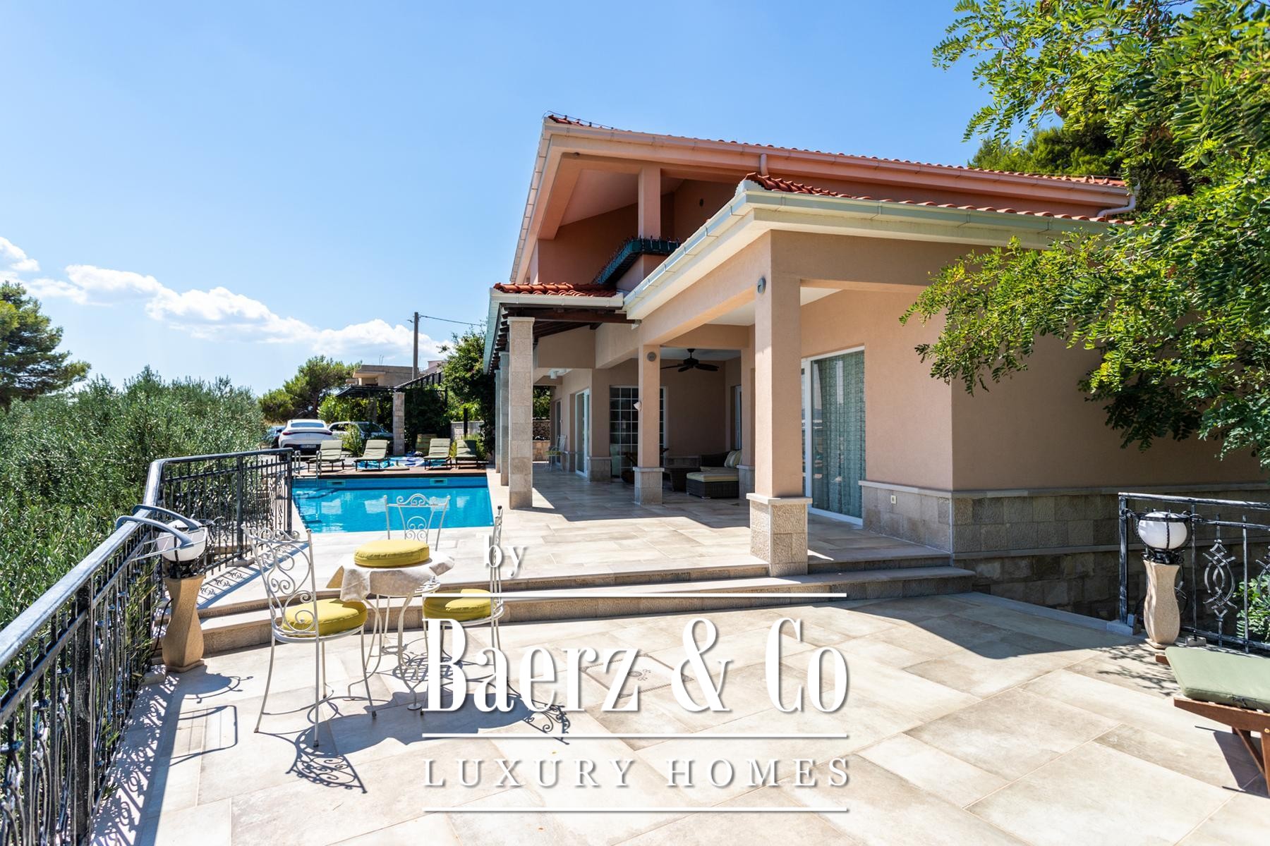 The property offers a special Mediterranean feel, with one of the most beautiful views of the sea and islands, where even Pelješac can be seen on a clear day. Also, the carefully landscaped garden promises its future owners peace with twelve old olive trees that produce fruit every year (approximately twenty liters of olive oil), several types of white and black grapes, figs, oranges, lemons...