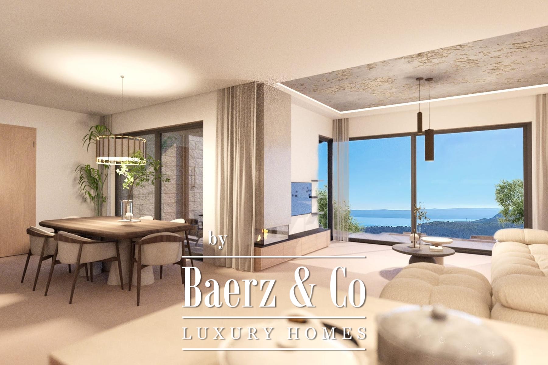 Modern villa Omiš stands discreetly atop a secluded cul-de-sac, occupying a 775 m² plot that commands sweeping views above the town and the Brač Channel. The villa’s 195 m² are artfully composed over two levels, with thoughtful placement ensuring privacy and natural light throughout.