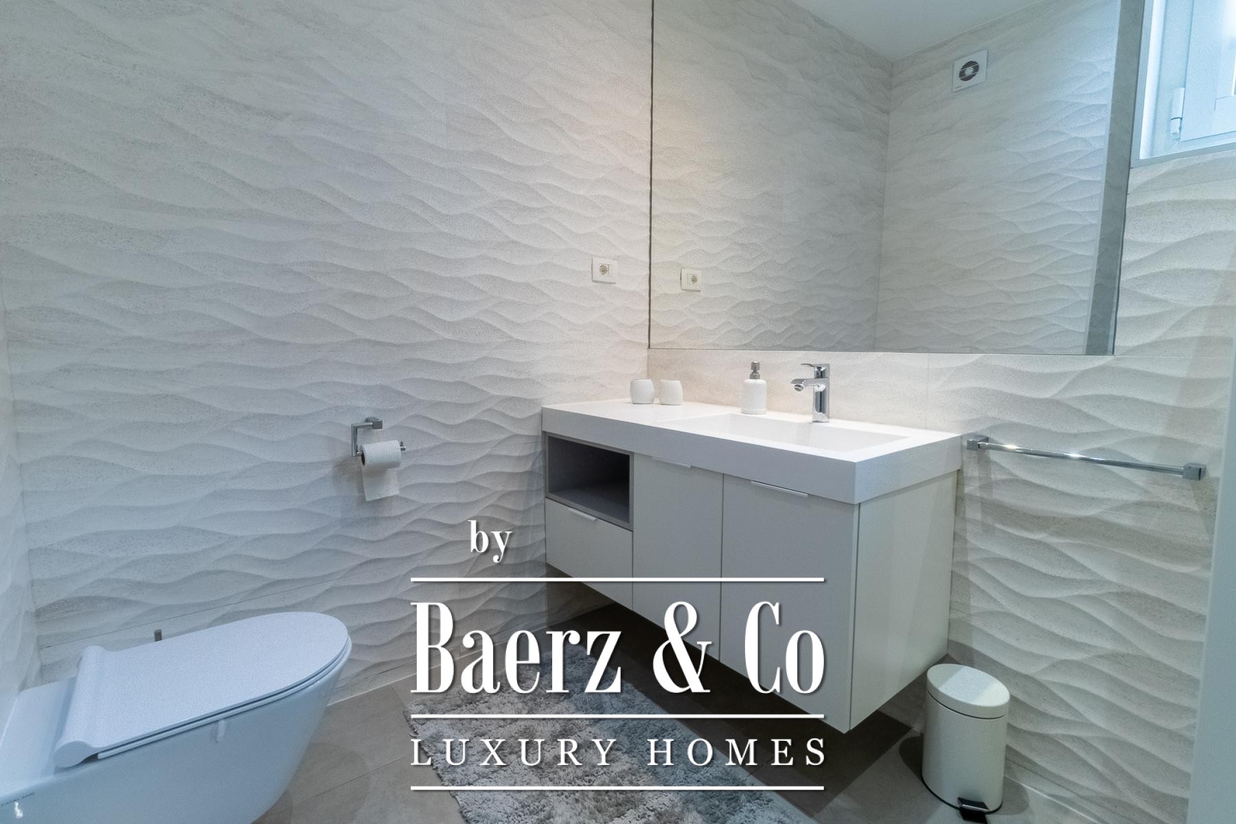 Two covered balconies invite tranquil views of the Mediterranean surroundings, enhancing the sense of connection between indoors and out. The highlight is a 50.20 m² rooftop terrace with Jacuzzi and an adjoining toilet, presenting an elevated escape for both intimate relaxation and sophisticated entertaining. Further elevating its exclusivity are three garage parking spaces, an outdoor parking place, and dedicated storage in the basement.