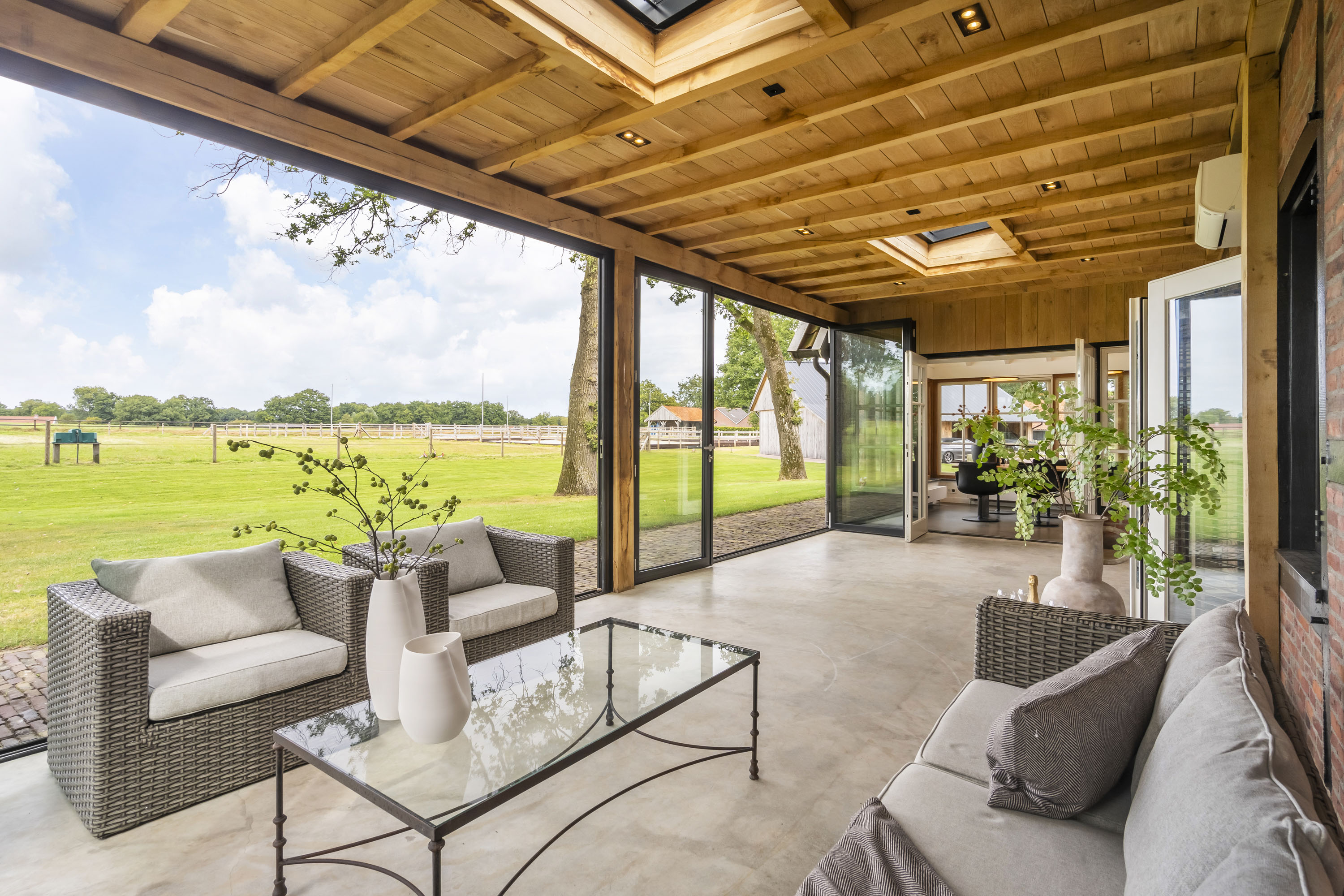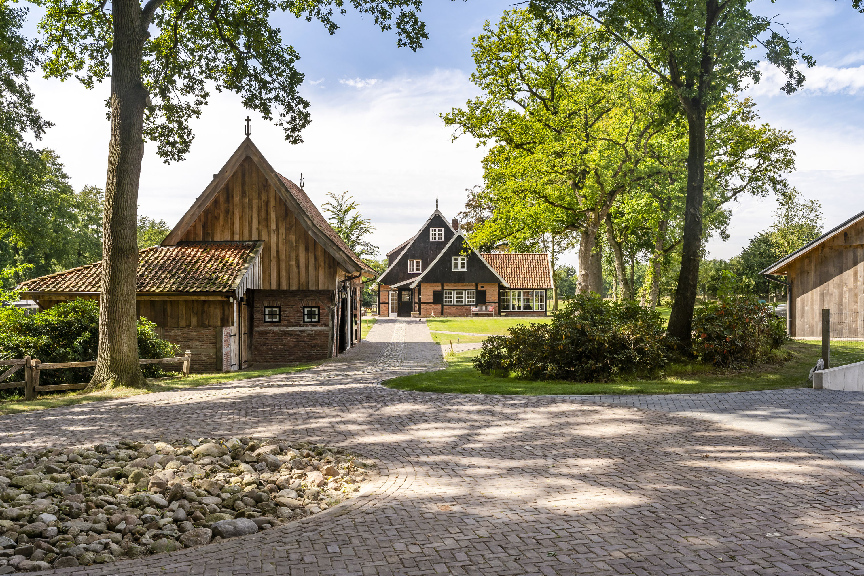 Country estate OUD OOTMARSUM stands where history, nature, and contemporary refinement converge. This estate, known as Erve Scholte Splinterink, traces its origin to 1272 and now rests quietly behind mature trees at the edge of Ootmarsum, on nearly 36,499 m² of park-like land. The residence encompasses 325 m², with four bedrooms and four bathrooms, realized in the regional Saxon architectural tradition and recently modernized to A++++ energy standards through extensive insulation, a heat pump, and 99 solar panels.