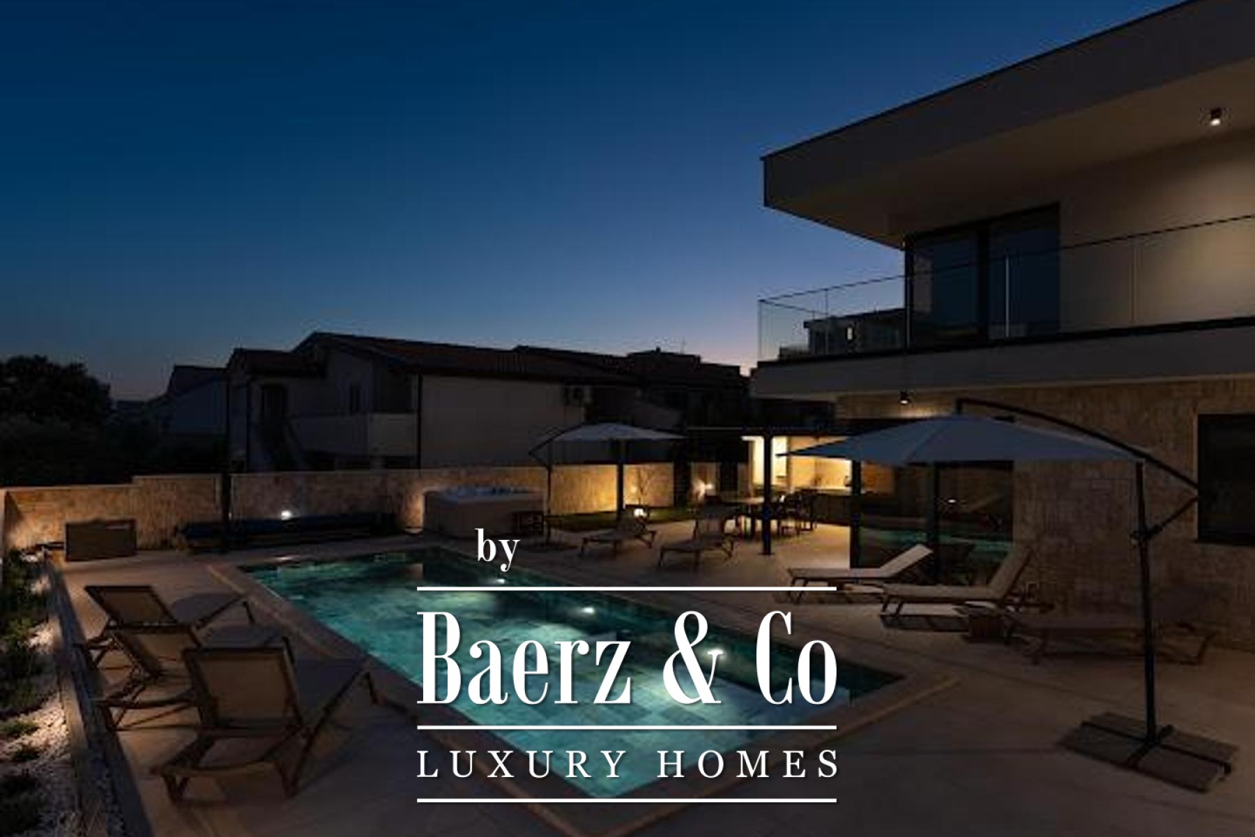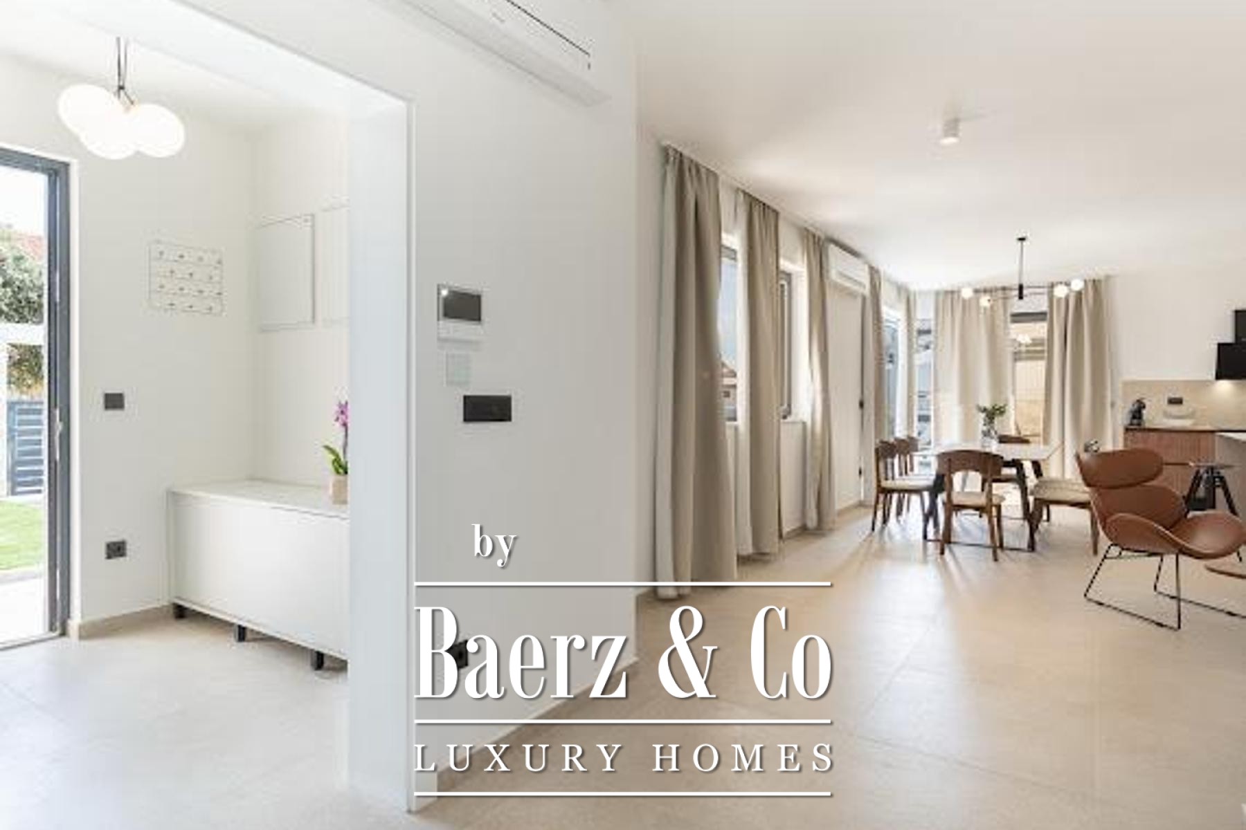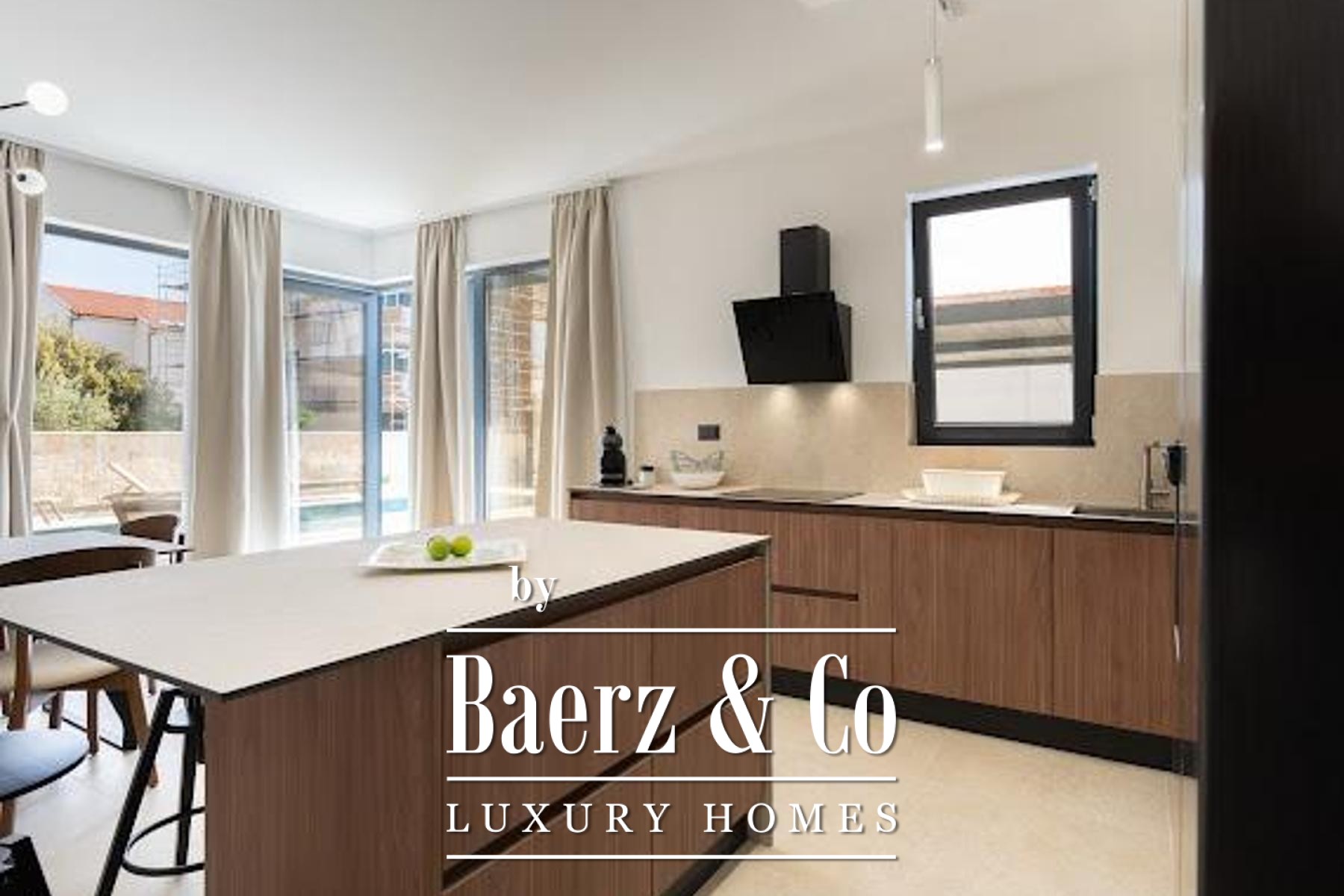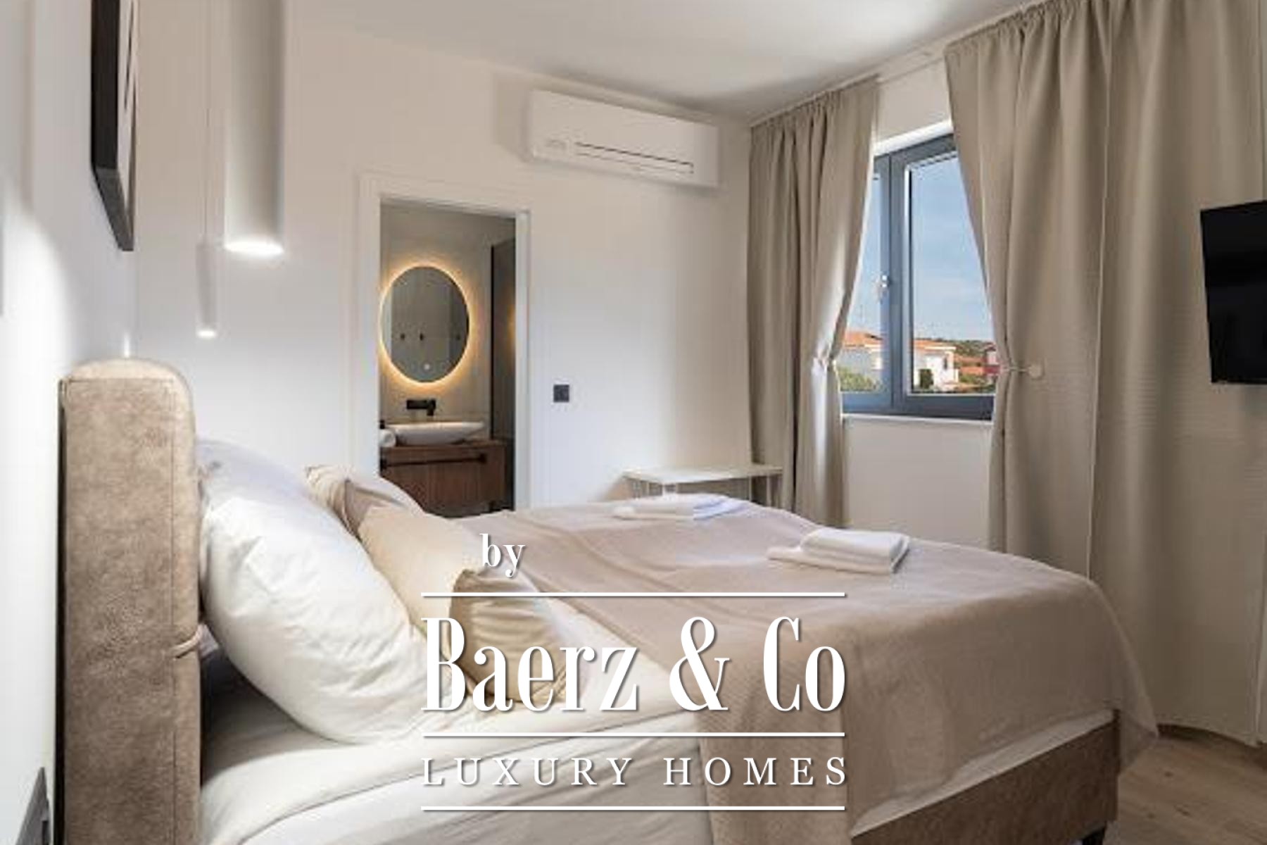Semi-detached house Pag Mandre offers a quietly sophisticated retreat on the Adriatic coast, with a living area of 220 m² set within a plot of 465 m². This semi-detached house Pag Mandre is positioned just 350 meters from the sea, making the rhythm of coastal life a daily privilege.