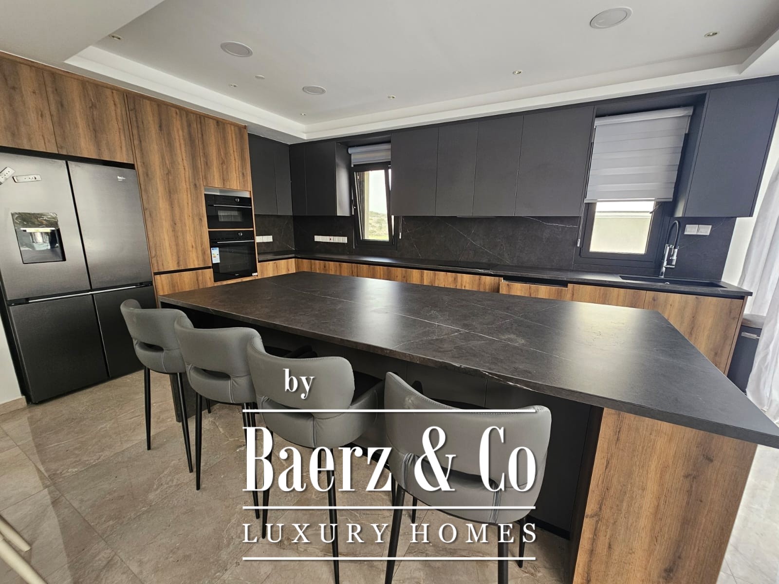 Set within a landscaped 888 sq.m. plot, the villa invites residents to savour quiet moments by the private swimming pool, host gatherings in the sunlit BBQ area, or simply relax in the exceptional living spaces. The layout includes four bedrooms, three bathrooms, and two guest WCs, while a service room adds further convenience. Interiors are finished to exacting standards, featuring large-format tiles, aluminium double-glazed windows for thermal and sound insulation, and a fully integrated underfloor heating and air conditioning system.