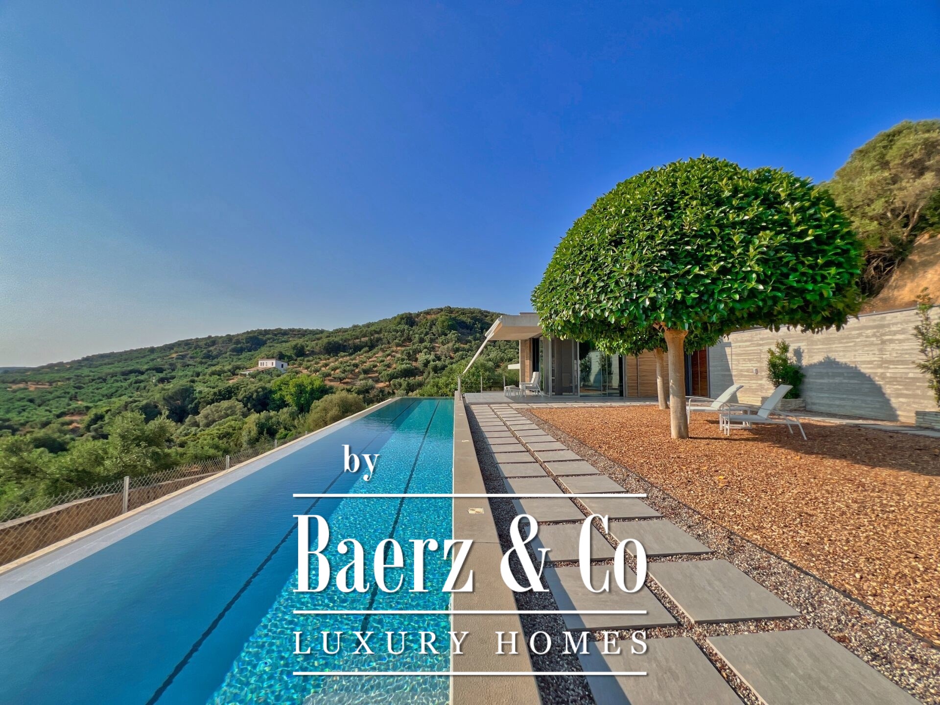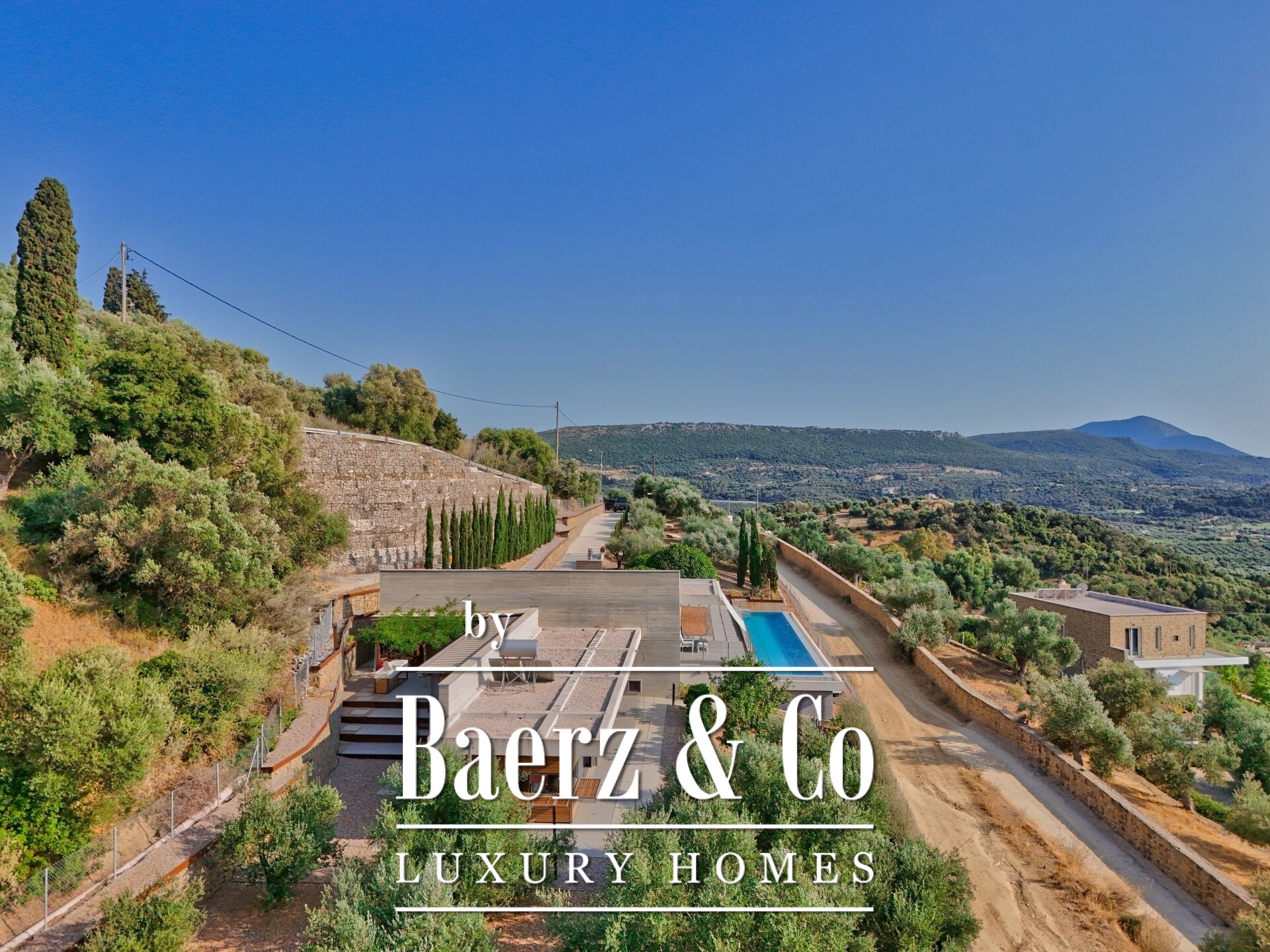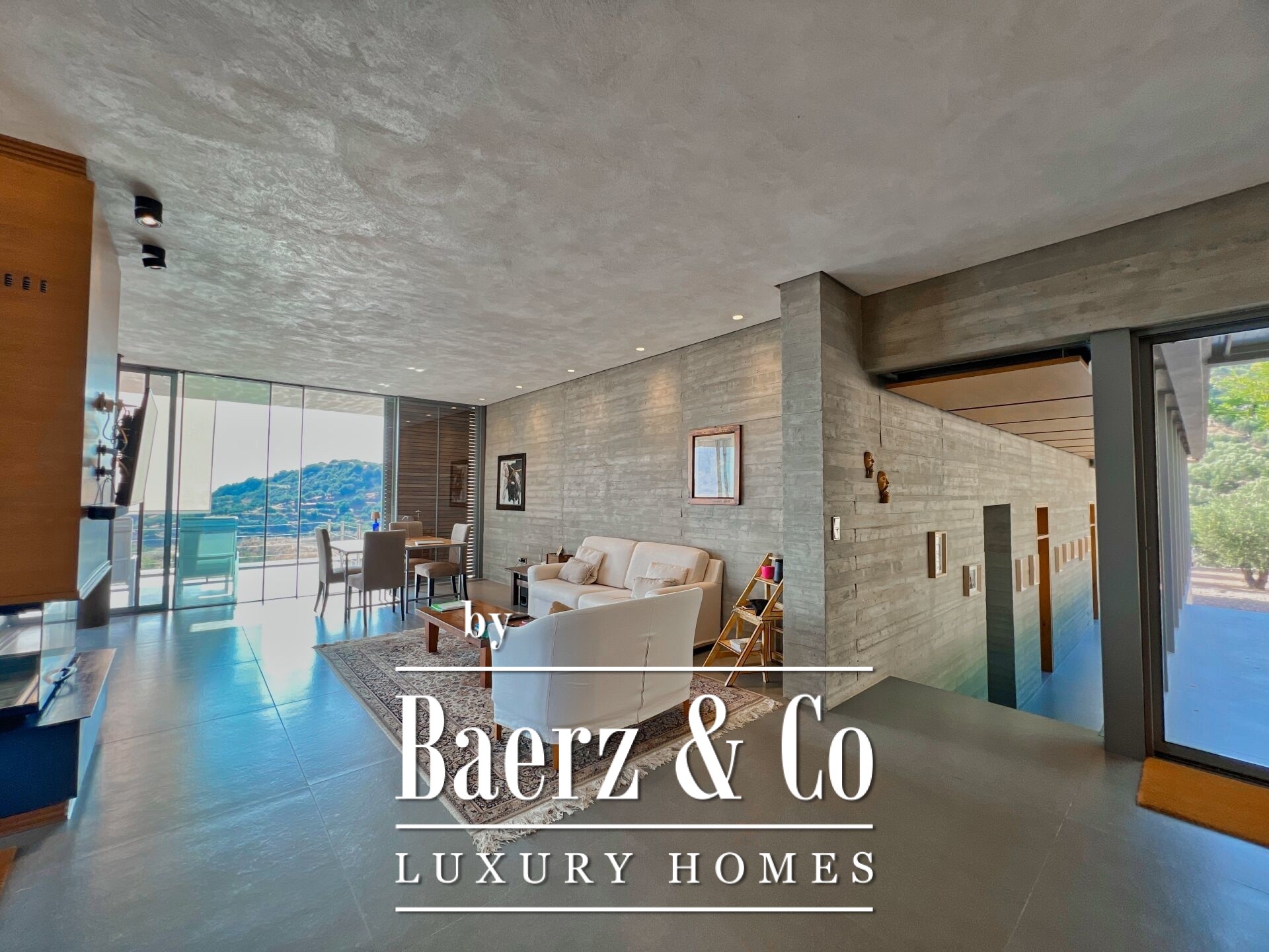 n one of the most iconic and rapidly emerging regions of Messinia, just minutes from Gialova and overlooking the historic Bay of Navarino, we present an impressive villa that redefines the concept of contemporary architecture and ultimate privacy. This is a property of unique aesthetics, characterized by clean lines, exposed concrete, and bold minimalist design elements. Fully integrated into its natural surroundings, it offers an unobstructed panoramic view that is truly breathtaking.
