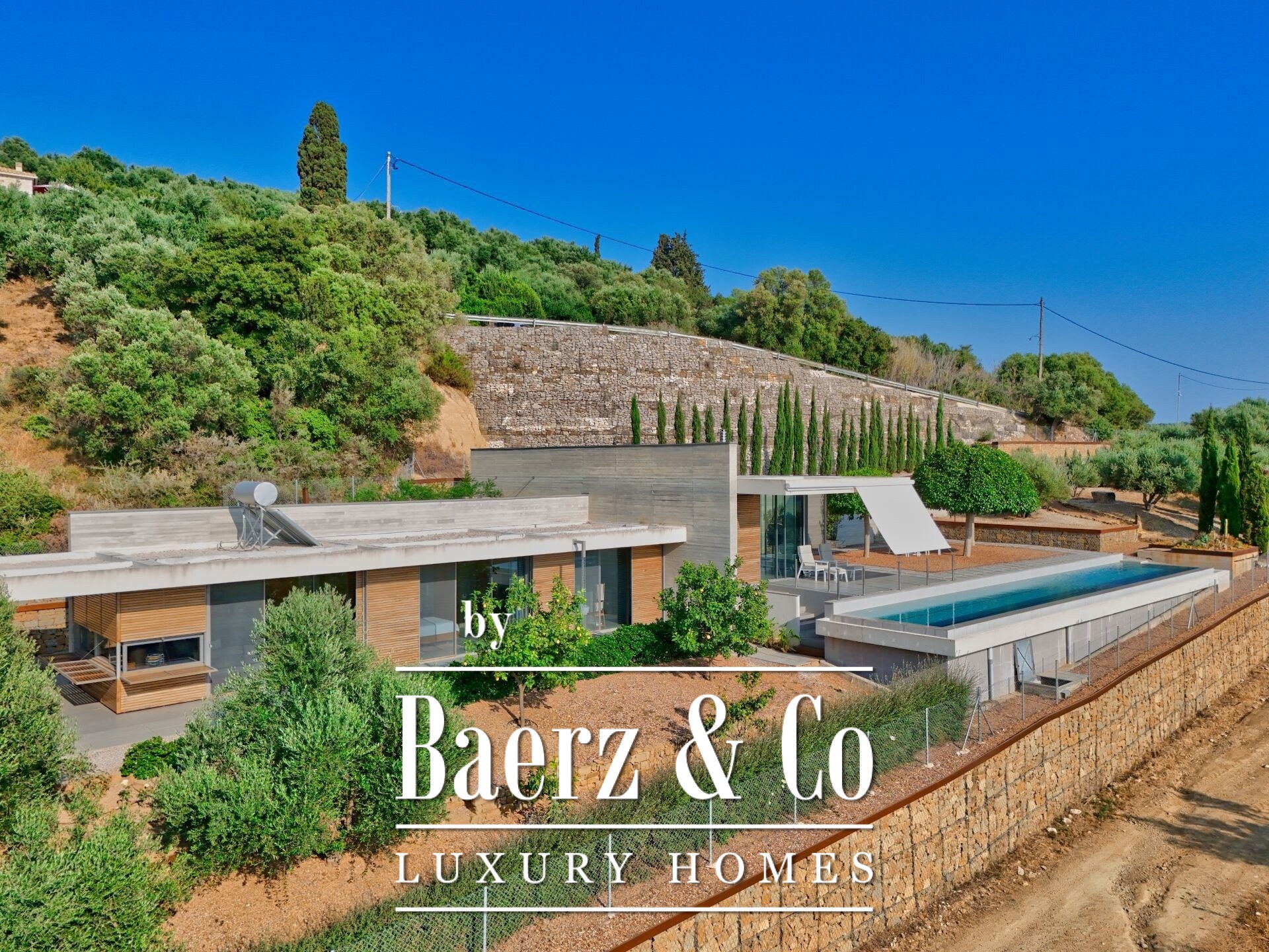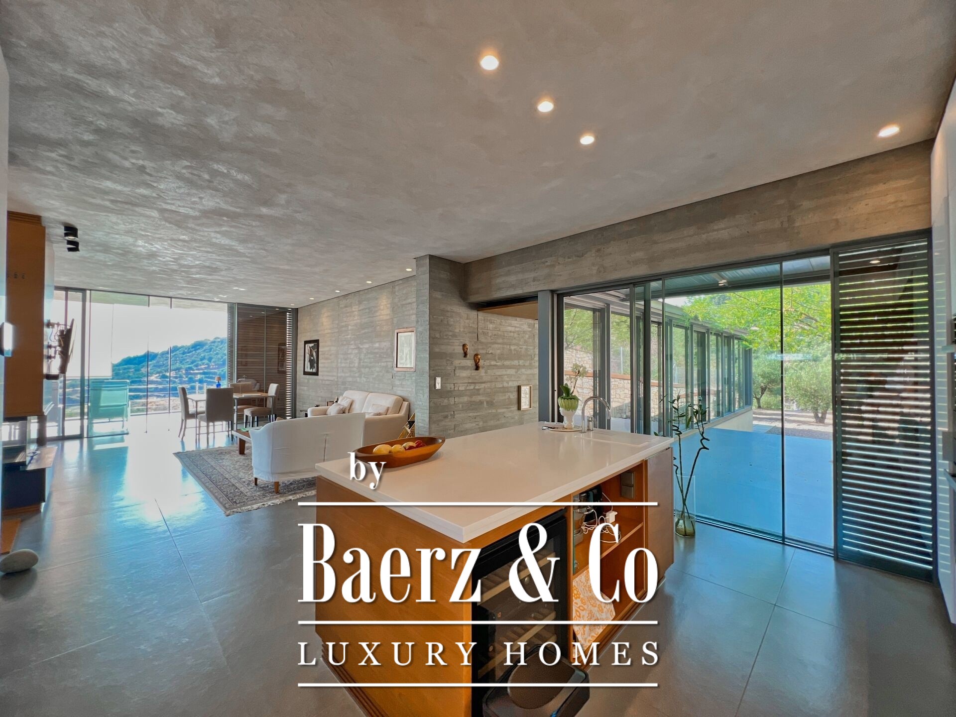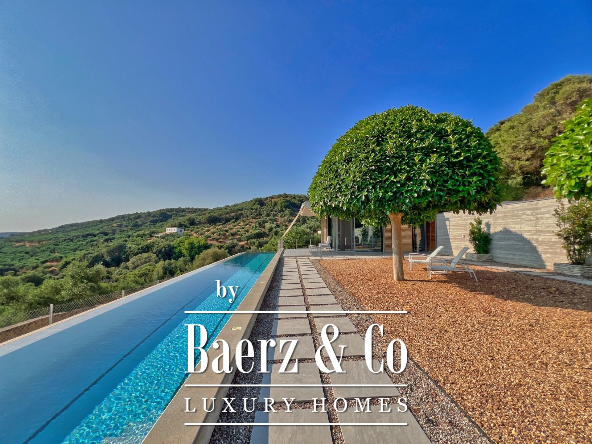 n one of the most iconic and rapidly emerging regions of Messinia, just minutes from Gialova and overlooking the historic Bay of Navarino, we present an impressive villa that redefines the concept of contemporary architecture and ultimate privacy. This is a property of unique aesthetics, characterized by clean lines, exposed concrete, and bold minimalist design elements. Fully integrated into its natural surroundings, it offers an unobstructed panoramic view that is truly breathtaking.