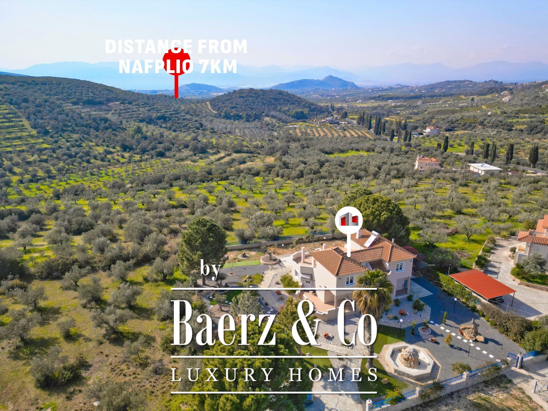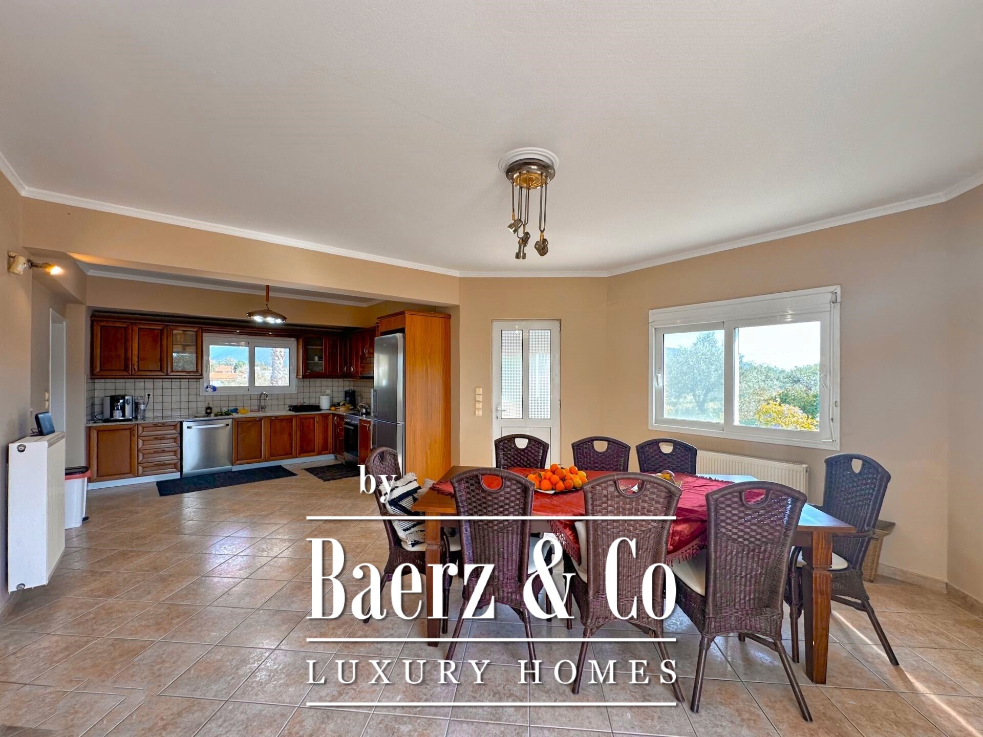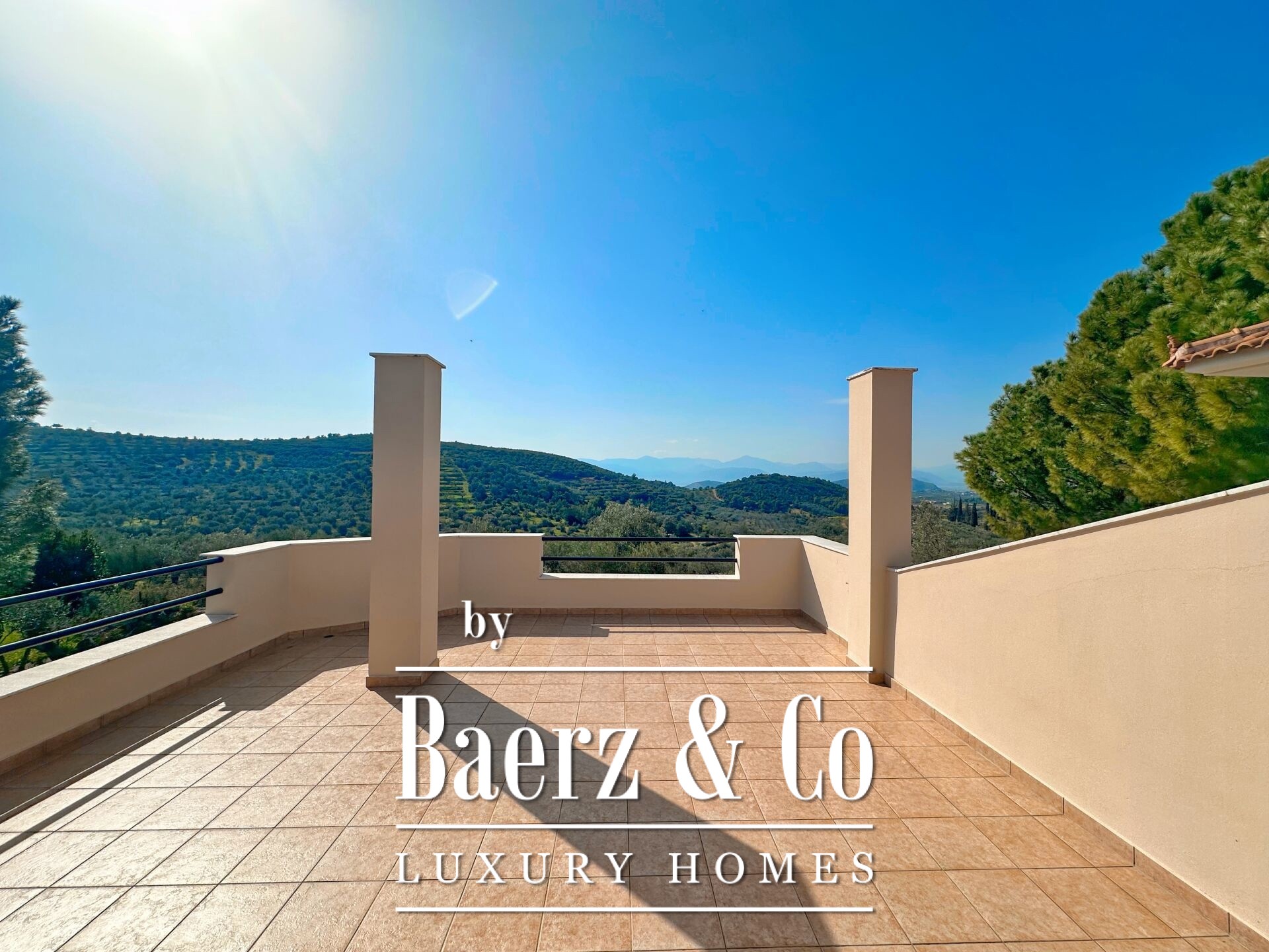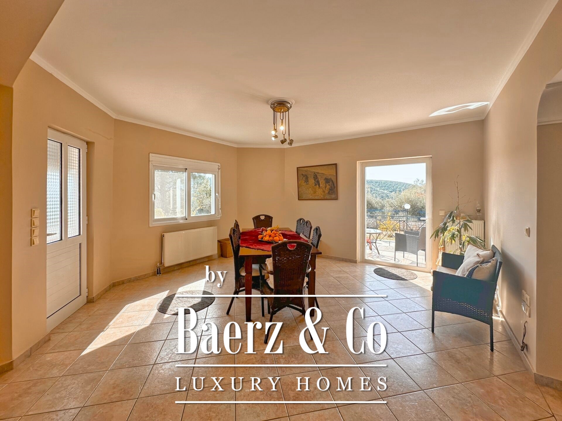 Detached house Pyrgiotika Nafplio offers a rare balance of privacy, scale, and accessibility. Set within a 3,643 m² plot and presenting a living area of 240 m², this residence built in 2003 is nestled among natural surroundings, providing panoramic views across the landscape and towards Nafplio.