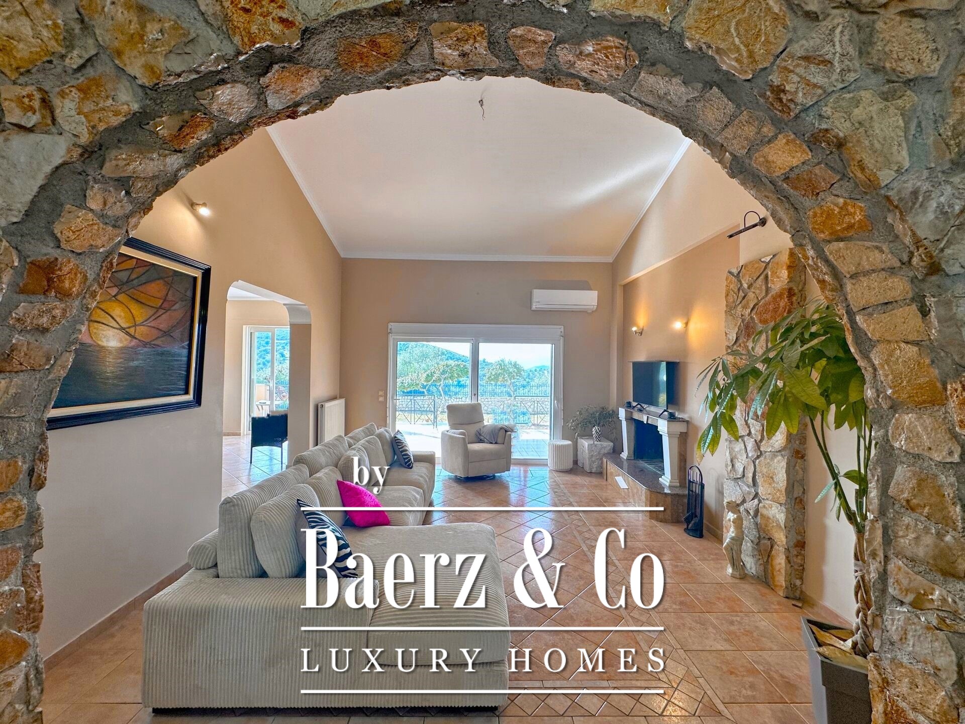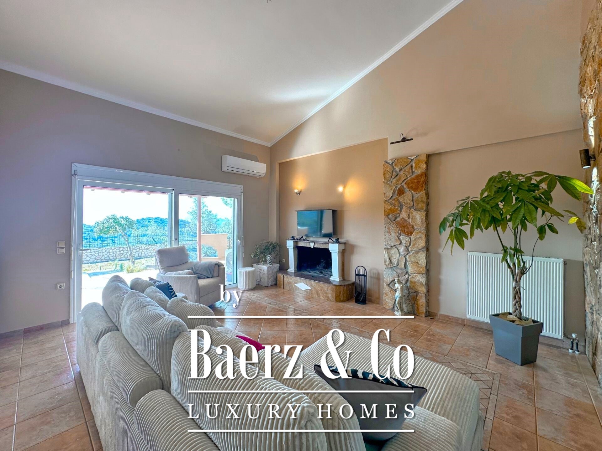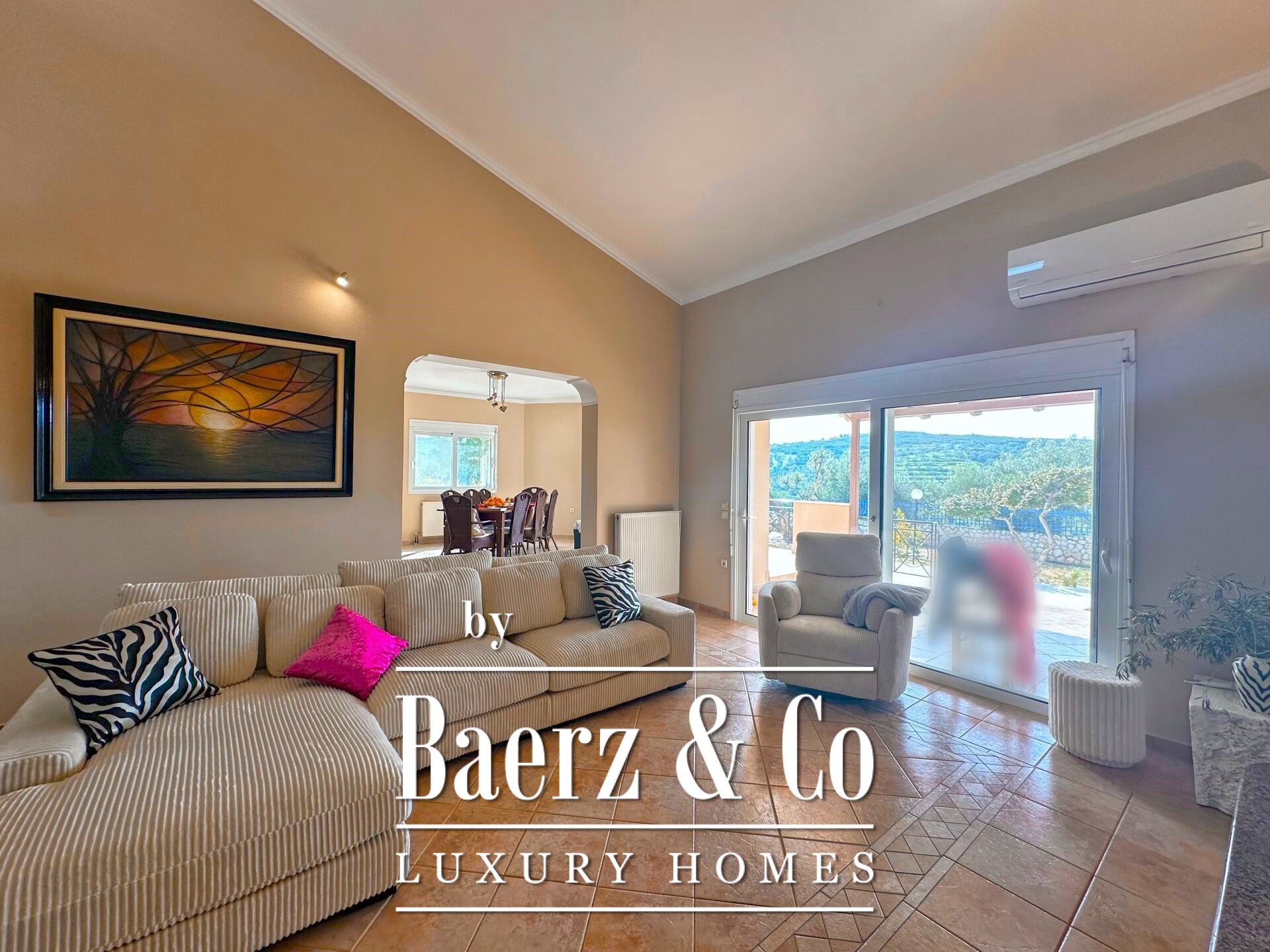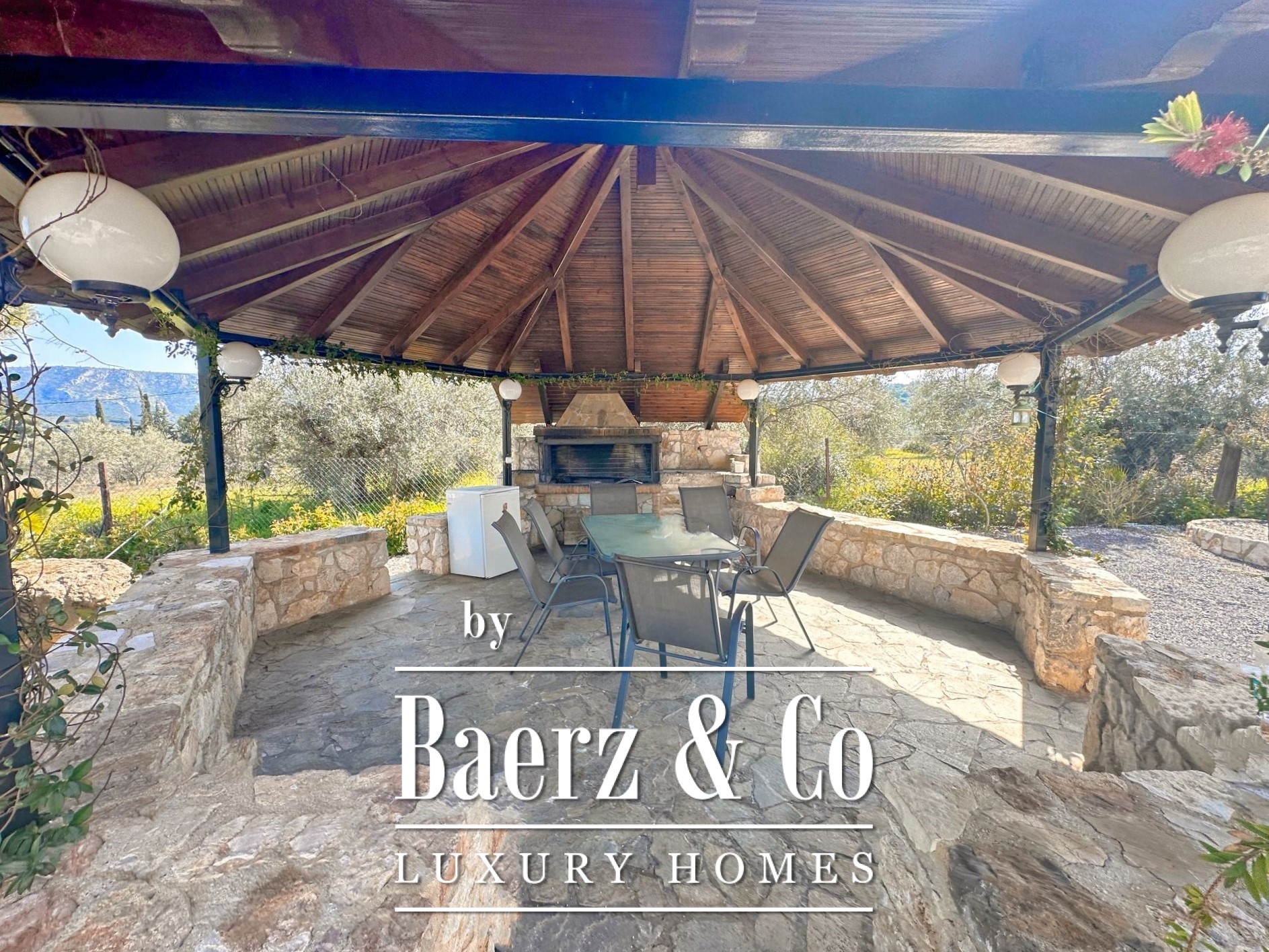 Detached house Pyrgiotika Nafplio offers a rare balance of privacy, scale, and accessibility. Set within a 3,643 m² plot and presenting a living area of 240 m², this residence built in 2003 is nestled among natural surroundings, providing panoramic views across the landscape and towards Nafplio.