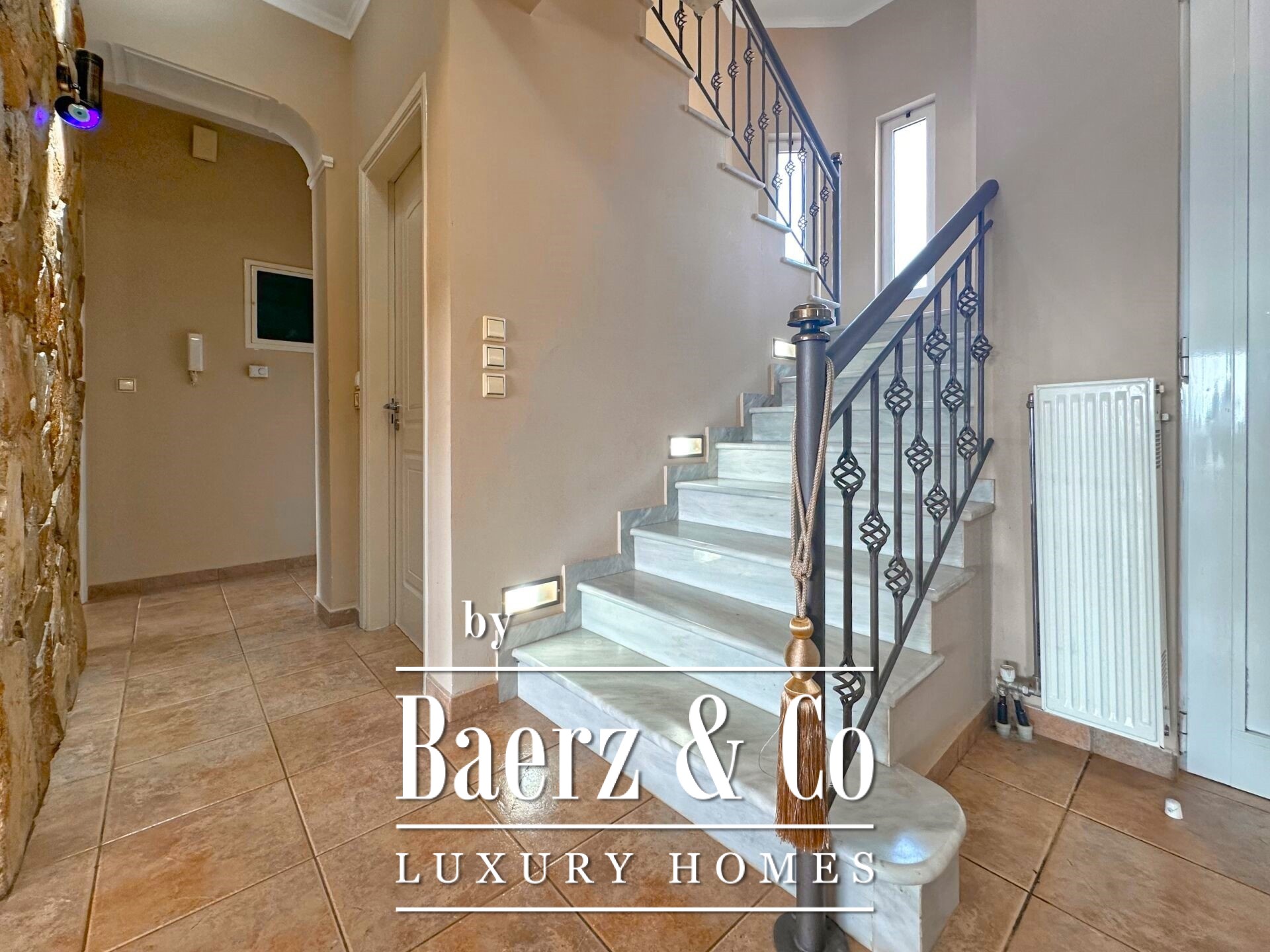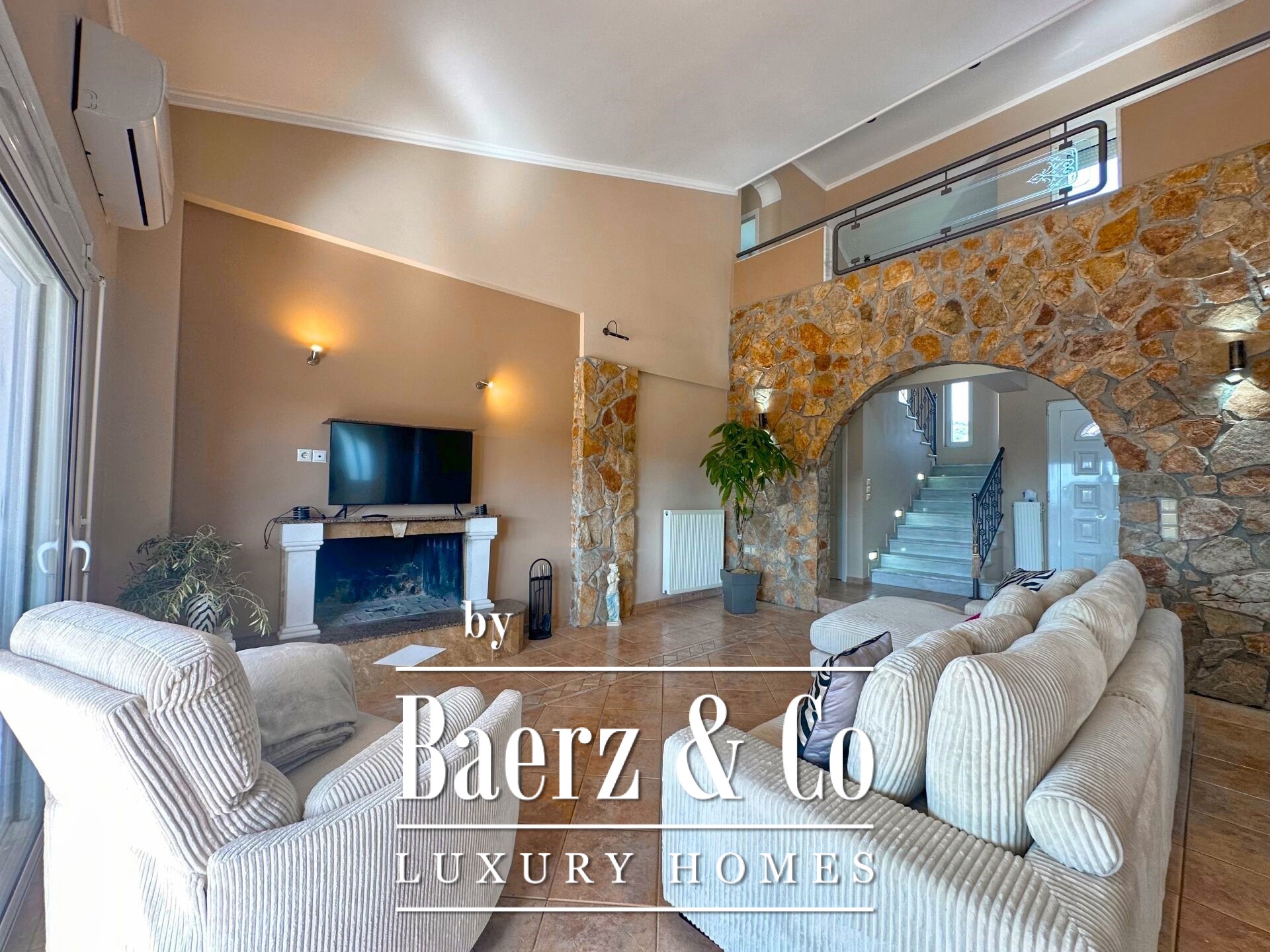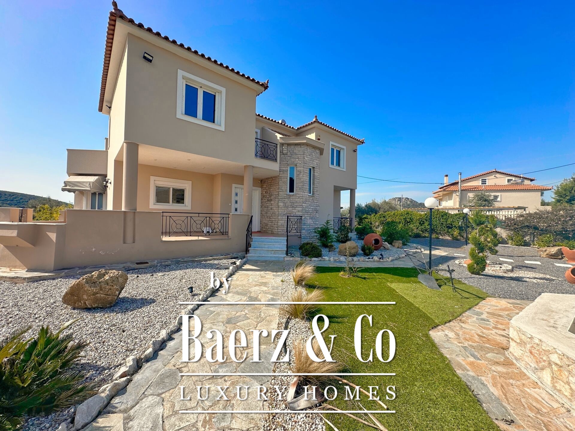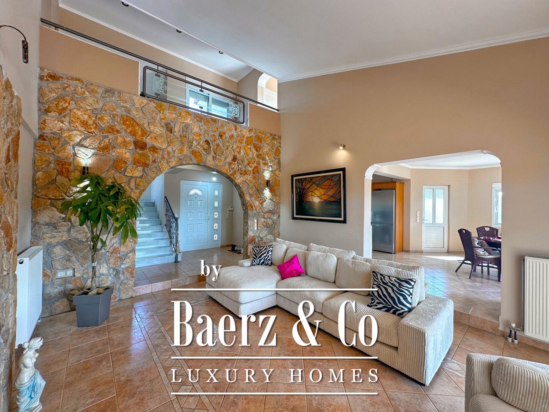 Detached house Pyrgiotika Nafplio offers a rare balance of privacy, scale, and accessibility. Set within a 3,643 m² plot and presenting a living area of 240 m², this residence built in 2003 is nestled among natural surroundings, providing panoramic views across the landscape and towards Nafplio.