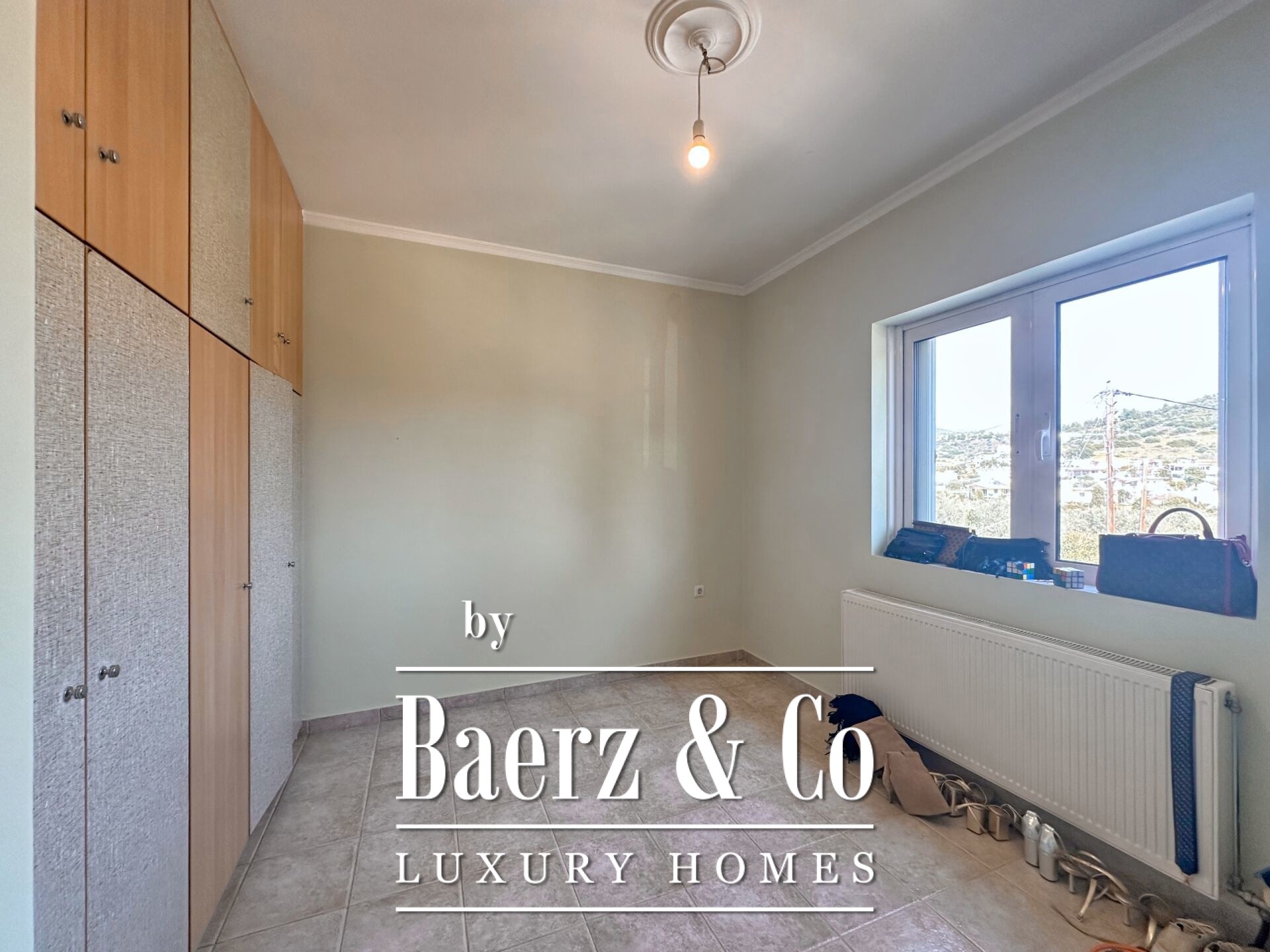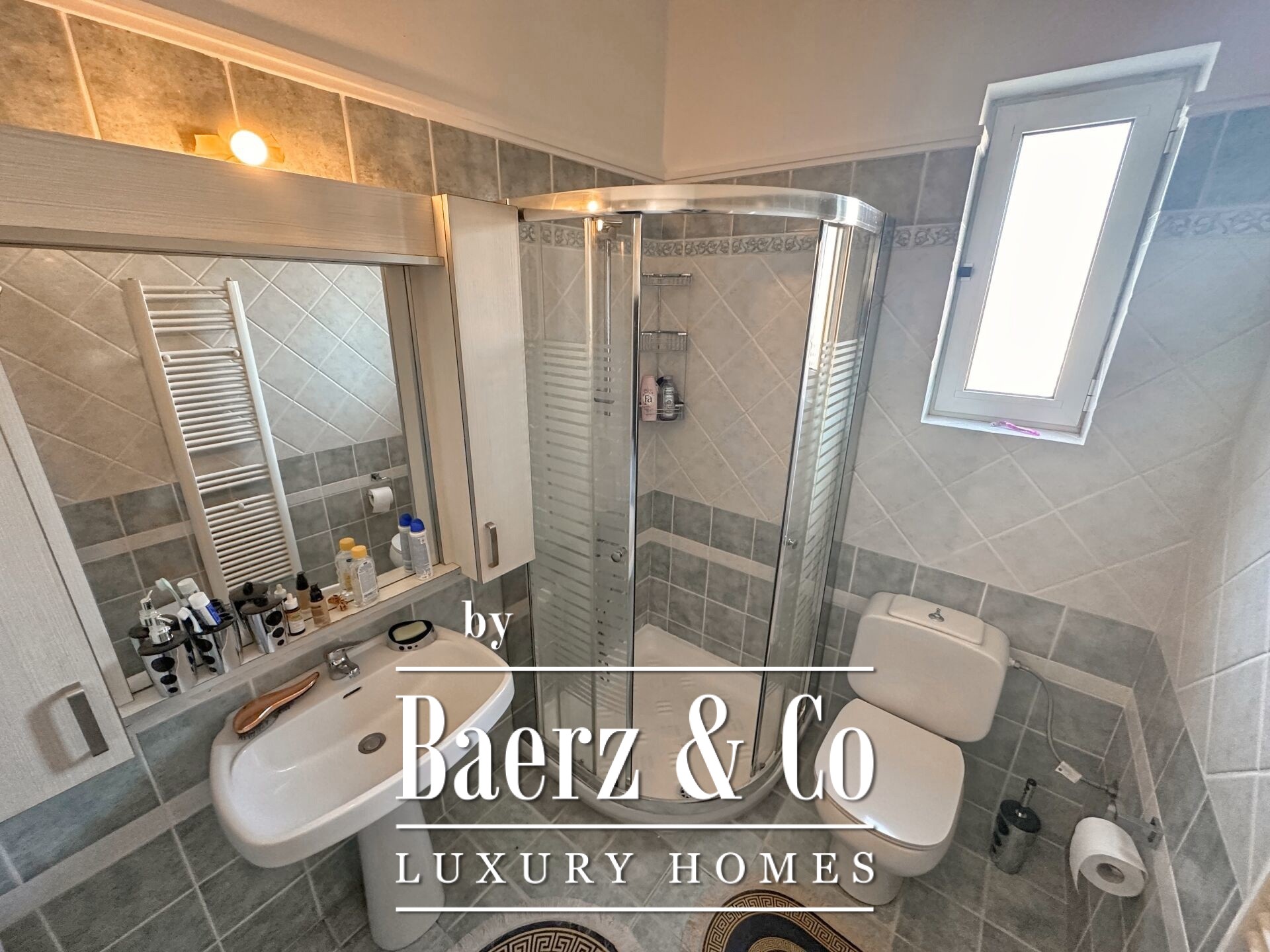 Practical features include a 10 m² storage room, a security system with alarm and cameras, and cost-efficient irrigation supplied by the Anavalos network. Currently rented until November 2027, this property combines tranquility, investment potential, and a privileged location just minutes from Nafplio's center.