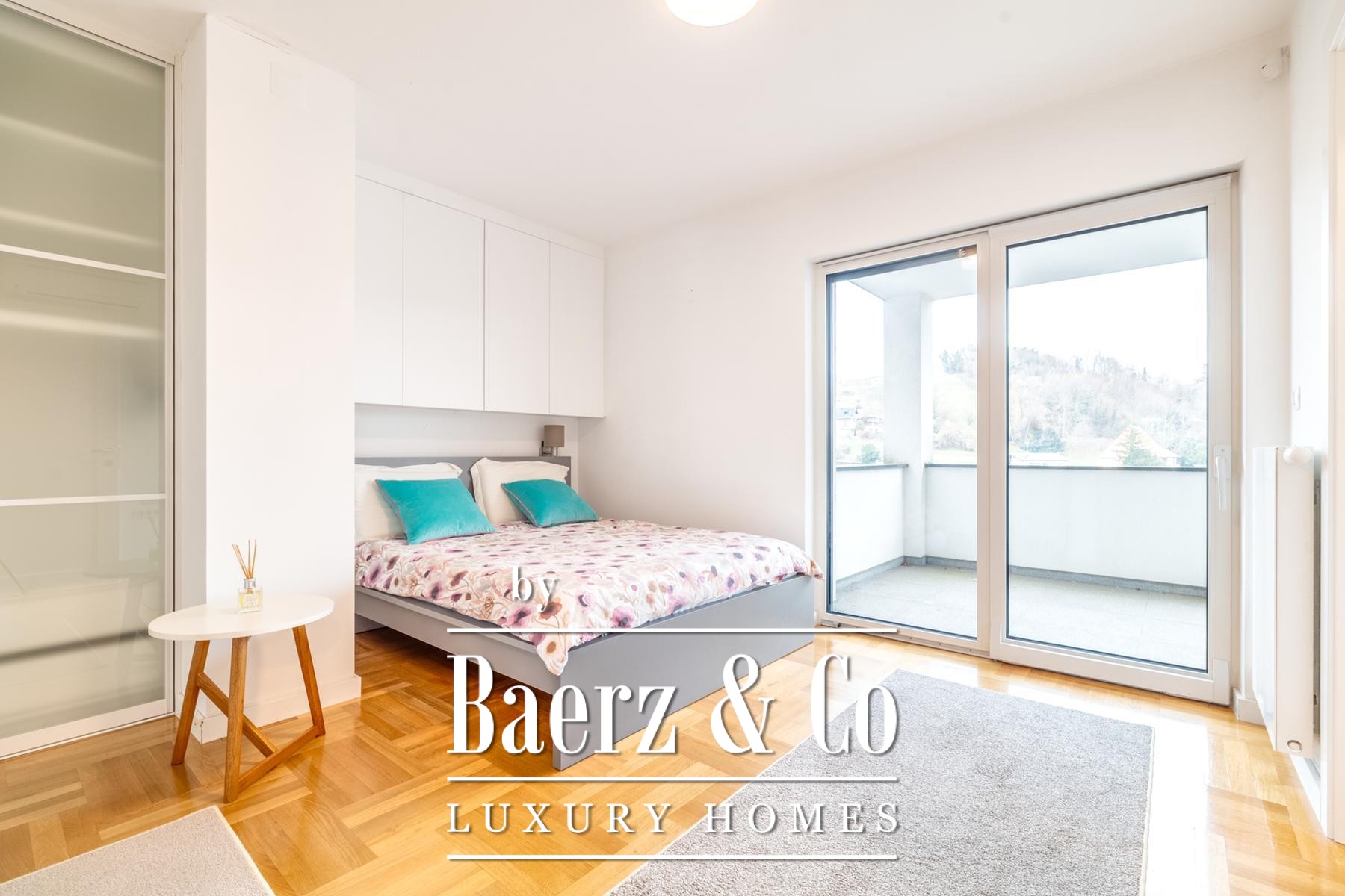 First-class materials, including travertine stone and stone-clad bathrooms, are paired with aluminum triple-glazed windows, air conditioning, and integrated security systems. The atmosphere is refined yet welcoming, with thoughtful attention to privacy and natural light. Local amenities such as boutiques, cafes, and renowned dining at Okrugljak are within easy reach. The villa’s position combines tranquil, green surroundings with proximity to urban life, encapsulating the rhythm of contemporary living in Podsljeme.
