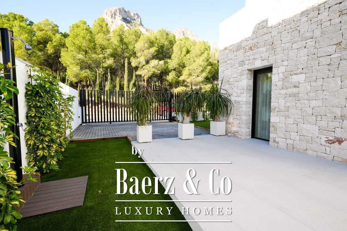 Last villa available in an exclusive promotion of 6 luxury villas in Polop, with spectacular views of the sea and the mountains! Situated on a private plot of 434.05 m², this elegant property features an infinity pool, parking area, barbecue, and a large garden ideal for enjoying the Mediterranean lifestyle. The home is distributed across three levels: on the main floor we find a modern kitchen with an island, a bright open-plan living-dining room, a bedroom, a full bathroom, a covered terrace, and a large uncovered terrace perfect for outdoor entertainment. On the upper floor, there are two spacious bedrooms, two bathrooms, a hallway, a covered terrace, and another uncovered terrace with panoramic views. The semi-basement, with independent access, offers the possibility of creating an additional home, a guest apartment, or a multifunctional