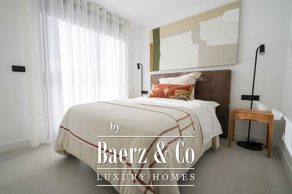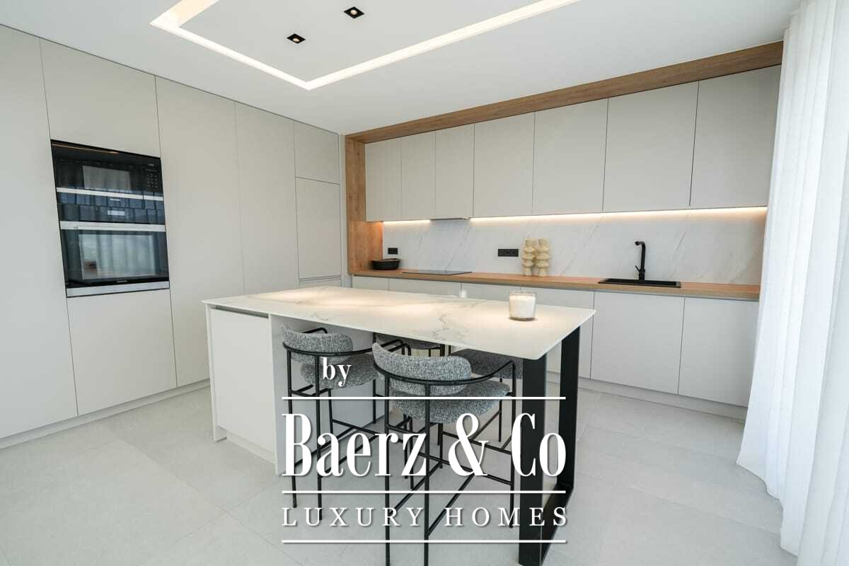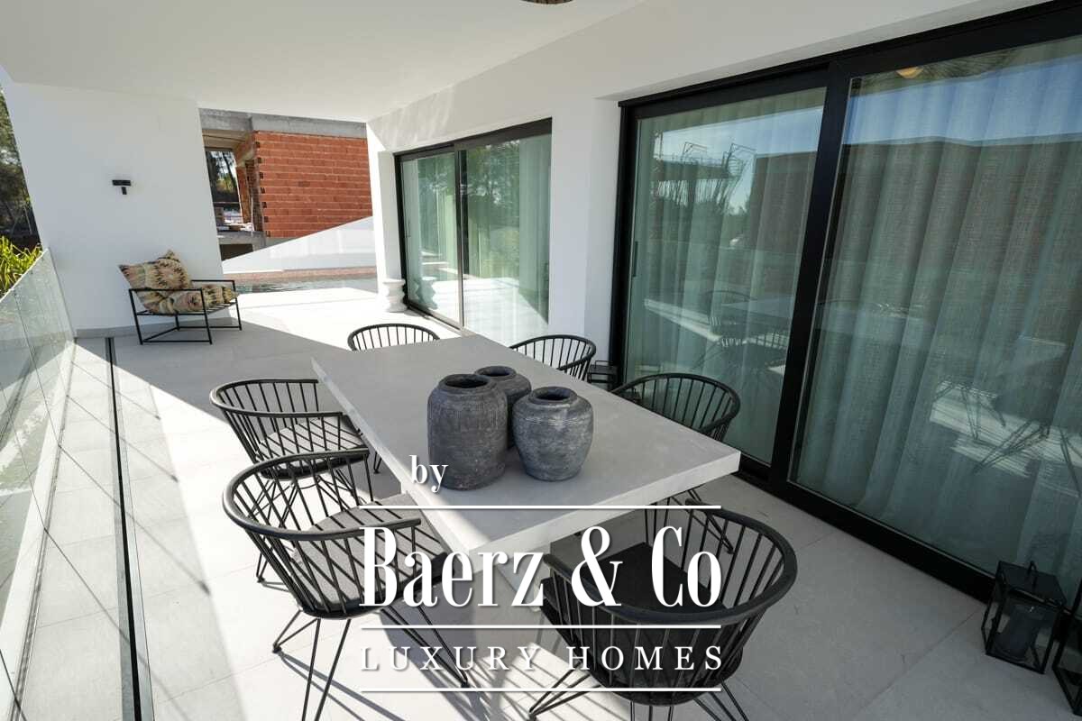 space. The villa is equipped with high-end Siemens appliances, such as induction cooktop, oven, microwave, decorative hood, double-bowl stainless steel sink, and integrated panel refrigerator. The bathrooms are fully equipped with suspended sanitary ware, designer fittings, towel radiators, and sinks from the Roca brand. The Panasonic aerothermal climate control system provides underfloor heating, hot sanitary water, and comfort all year round. The interior carpentry includes 2.80 m high passage doors and equipped built-in wardrobes, while the exterior carpentry offers aluminum profiles with double glazing for excellent insulation. The porcelain stoneware flooring throughout the home ensures durability and style. A unique property that combines contemporary design, energy efficiency, and a privileged natural environment.