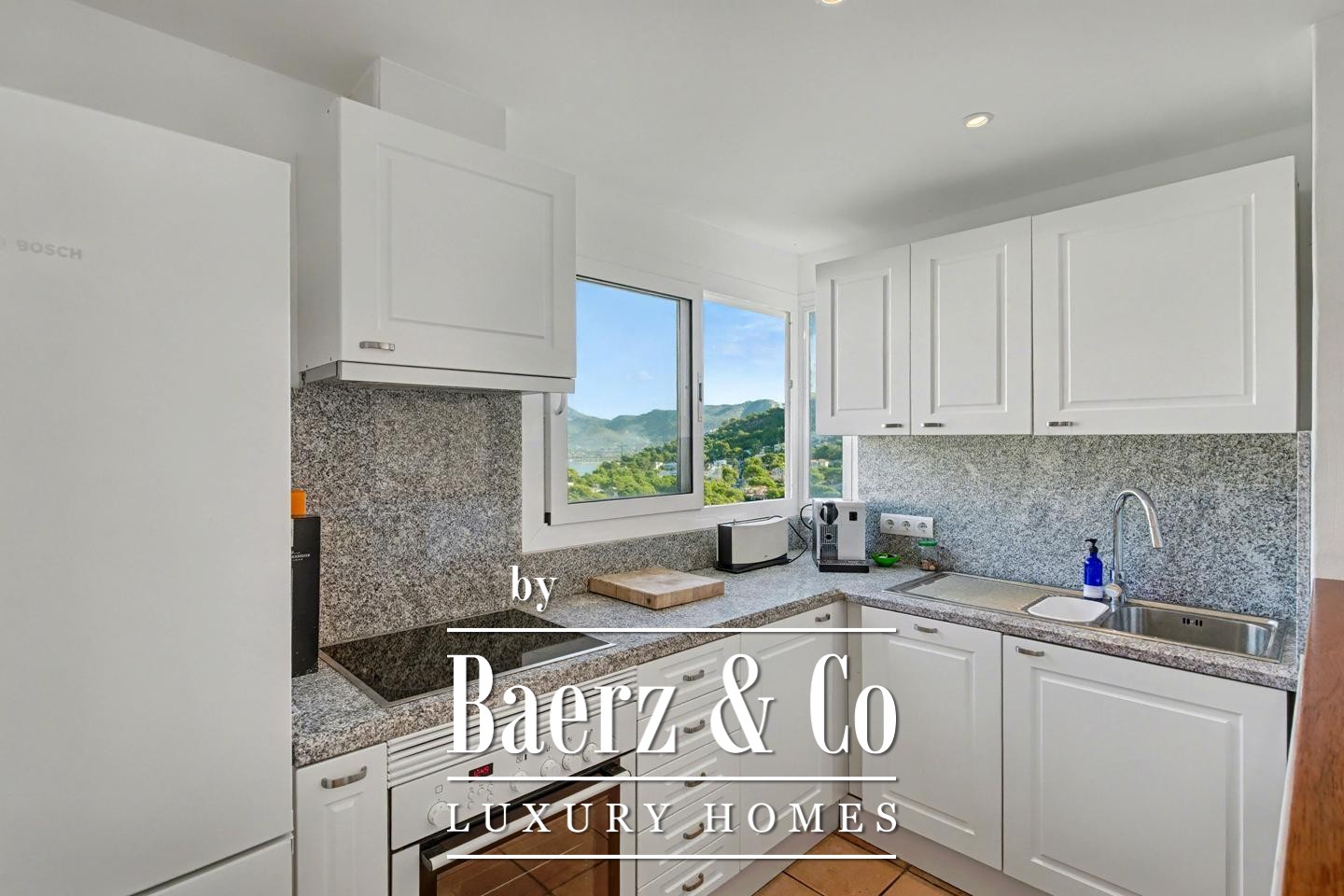Apartment Port d'Andratx provides a Mediterranean living experience defined by space, light, and uninterrupted views across Cala Marmassen, the open sea, and the Port of Andratx. Across 214 m², this residence reflects refined elegance, offering two generously proportioned bedrooms and two contemporary bathrooms. The main suite features an en-suite bath for privacy and comfort. The living and dining area is bathed in natural light, flowing out onto a spacious terrace where the panorama becomes part of daily life.