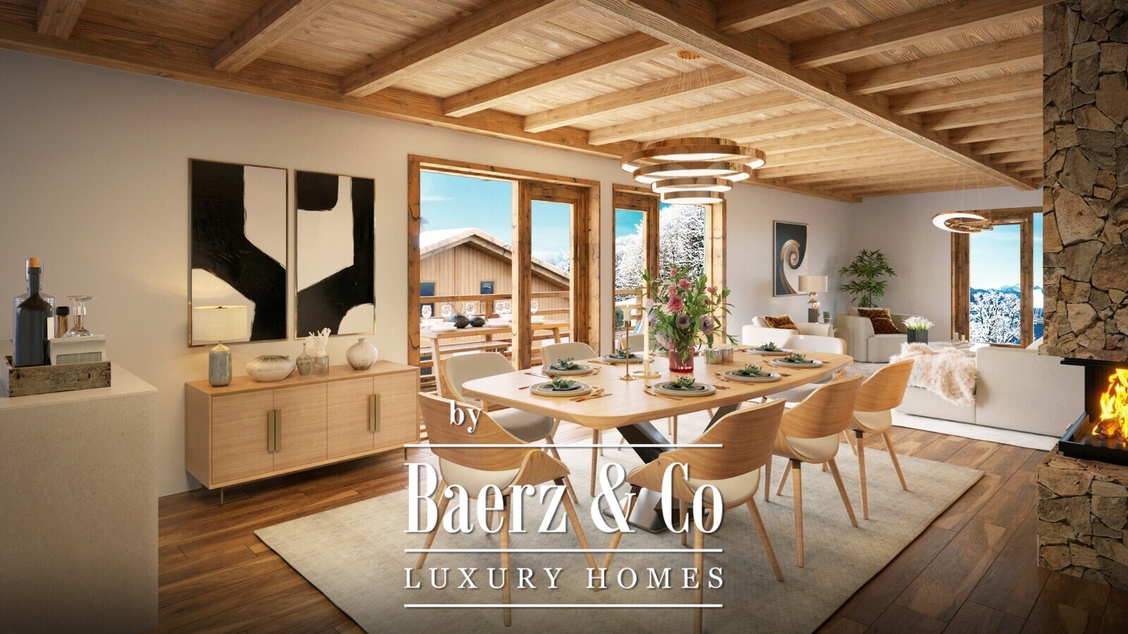 This new chalet with a surface area of 224 sqm currently under construction nestled on the heights of PRAZ SUR ARLY, it fits perfectly into its environment, it was designed in accordance with the typical alpine architecture of the resort. 5 minutes from the village center and in the immediate vicinity of the slopes, it reveals breathtaking views of the surrounding massifs and a quiet and private location. Built on three levels of living space, it has five bedrooms, a bright living space of approximately 71 sqm including an open unequipped kitchen, a living / dining room giving access to a large terrace ideally exposed.