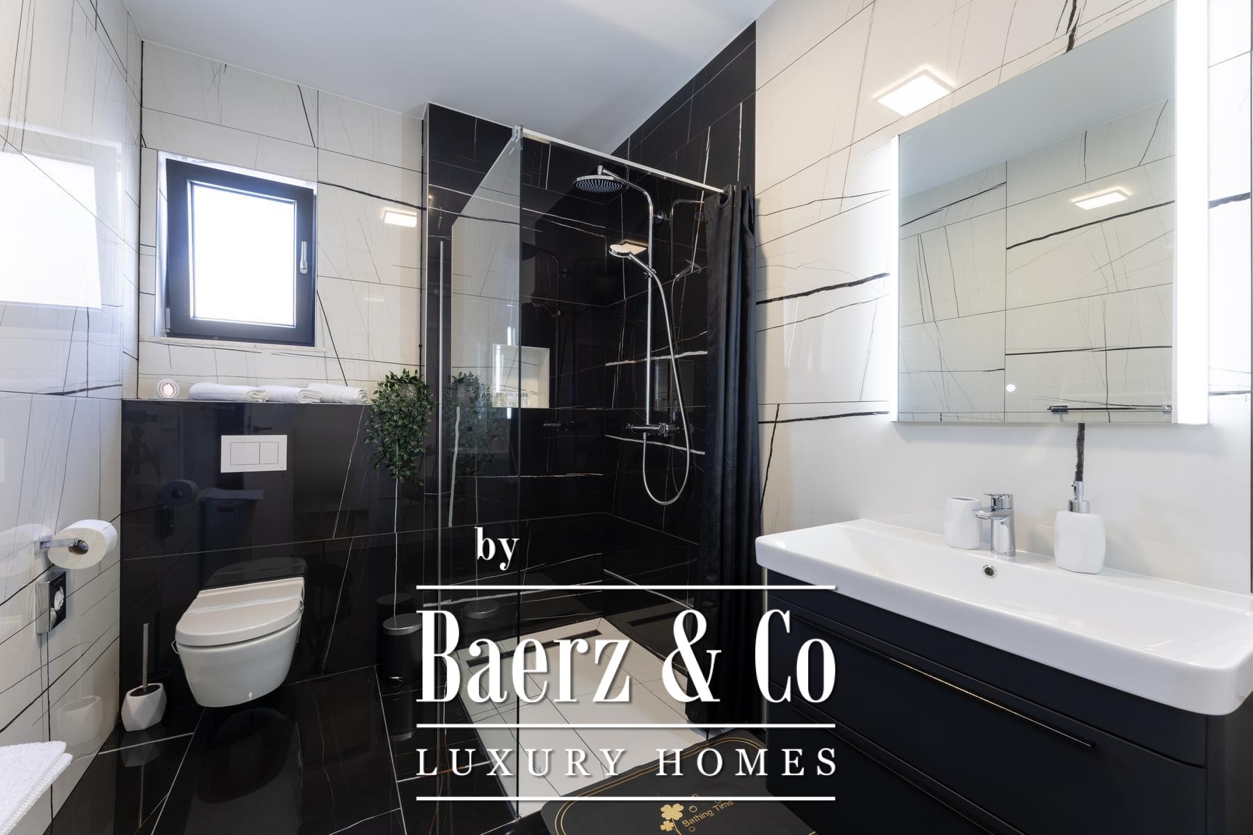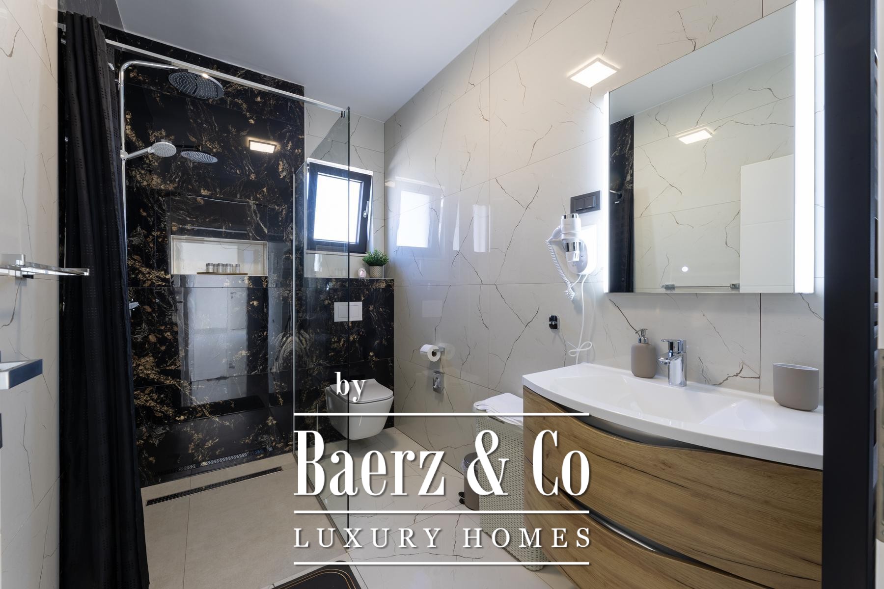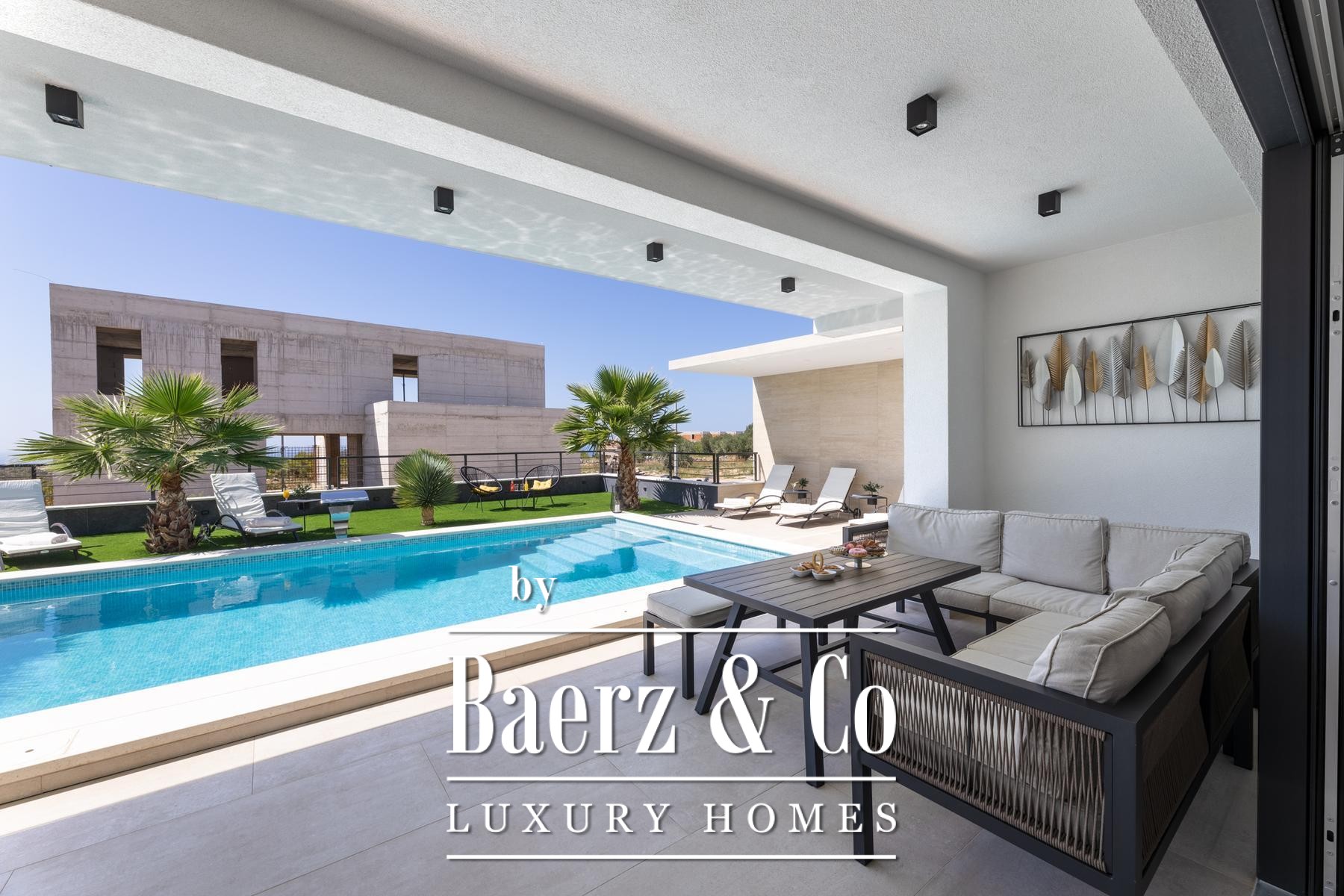 Villa Primošten with sea view presents a modern Croatian retreat defined by its 311.56 m² of refined living space and compelling Adriatic outlook. Completed in 2024 on a 515 m² plot, this residence articulates contemporary architecture across three thoughtfully arranged floors. The main level flows from a light-filled living room into a kitchen and dining area, accompanied by a bedroom suite and a separate wellness room with a sauna. Expansive glass doors open onto a sheltered terrace beside the pool, where a counter-current swimming system invites leisure and fitness alike.