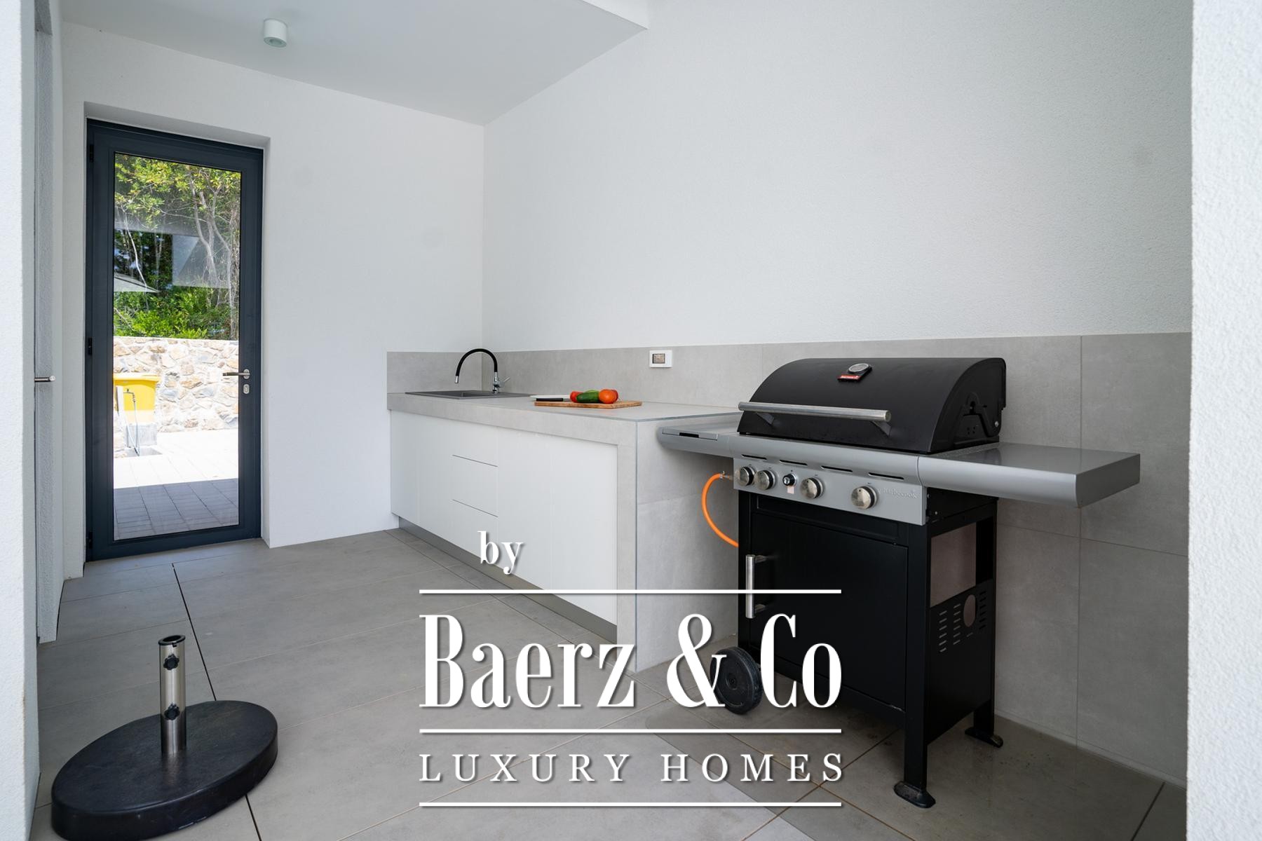 A 50 m³ cistern collects filtered rainwater for garden and household use, and the house is ready for future solar integration. Parquet floors throughout and meticulous details in waterproofing and insulation mark every room. The home achieves energy class A, satisfying the needs of a discreet global buyer seeking enduring quality in a villa Rab. Access is direct by asphalt road, suitable for arrival in privacy and comfort.