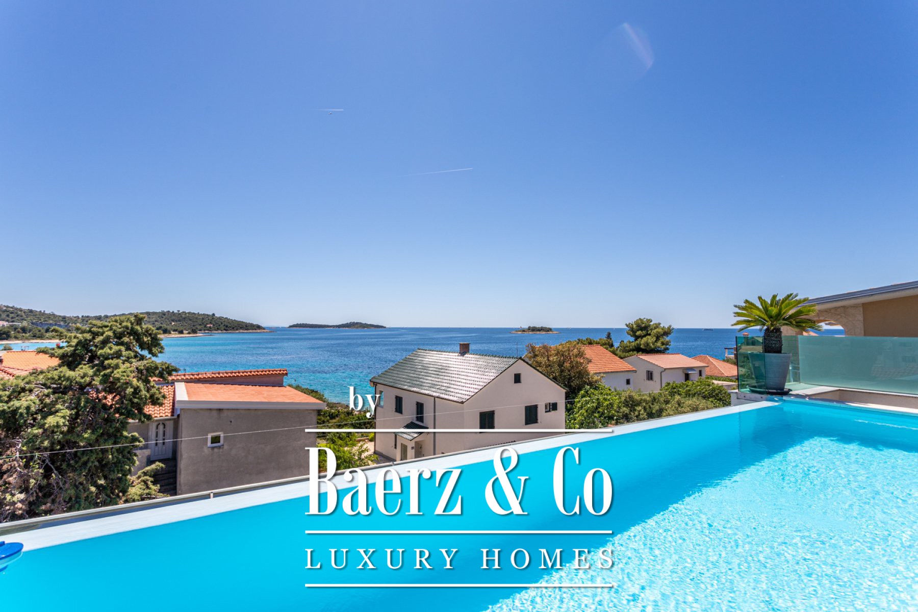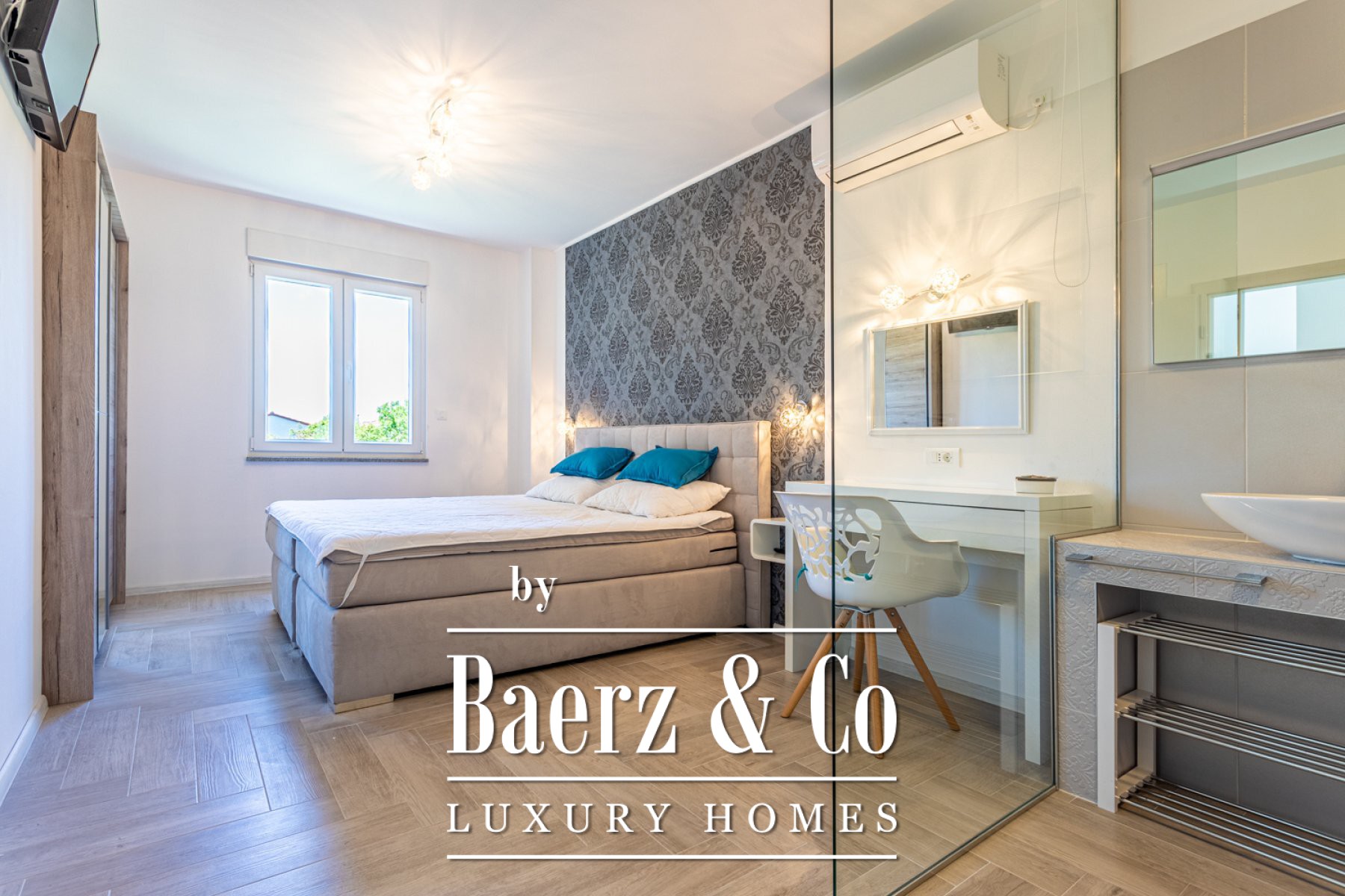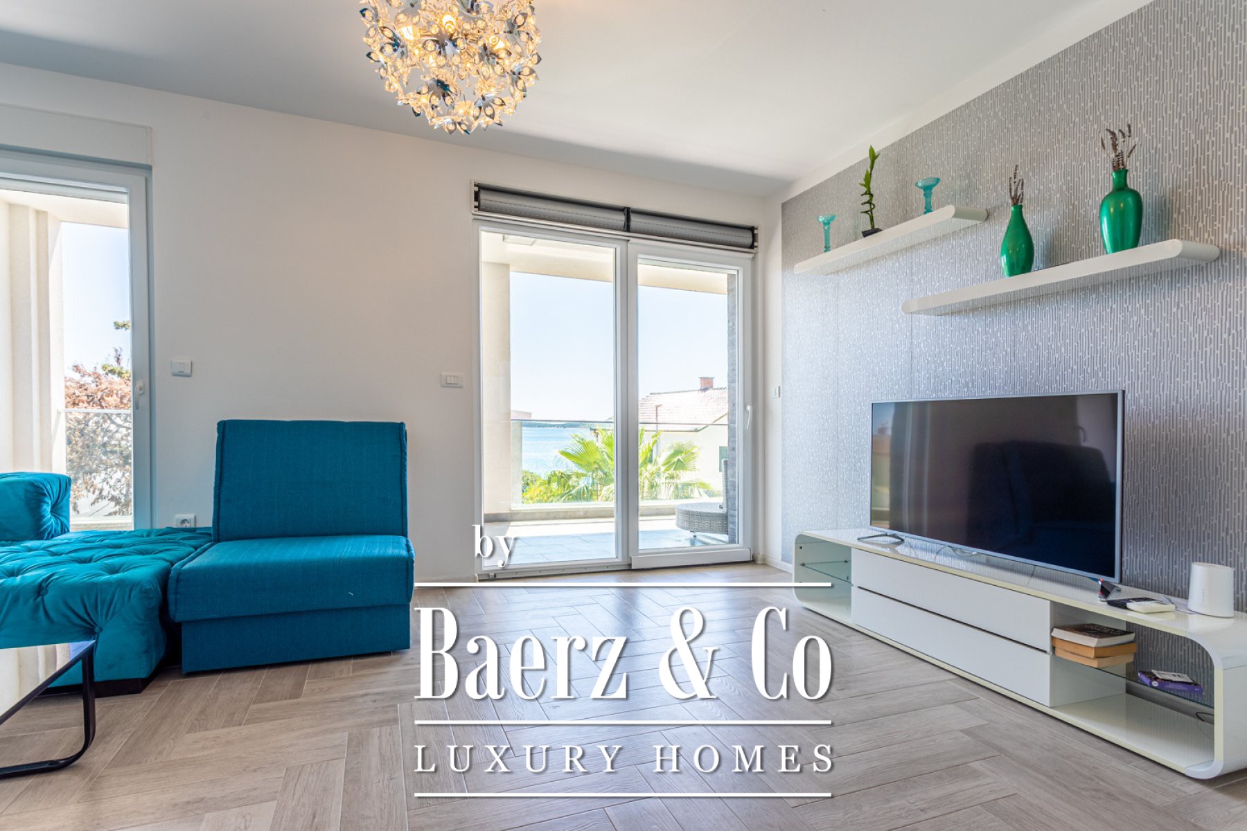 Modern, completely renovated family villa located in a beautiful small bay in Rogoznica in an ideal micro location with very little traffic, in the second row to the sea, with landscaped garden and parking. It is divided into three floors; ground floor with living area that includes kitchen with dining area, two en suite bedrooms, guest toilet and laundry room. The ground floor leads to a spacious outdoor terrace