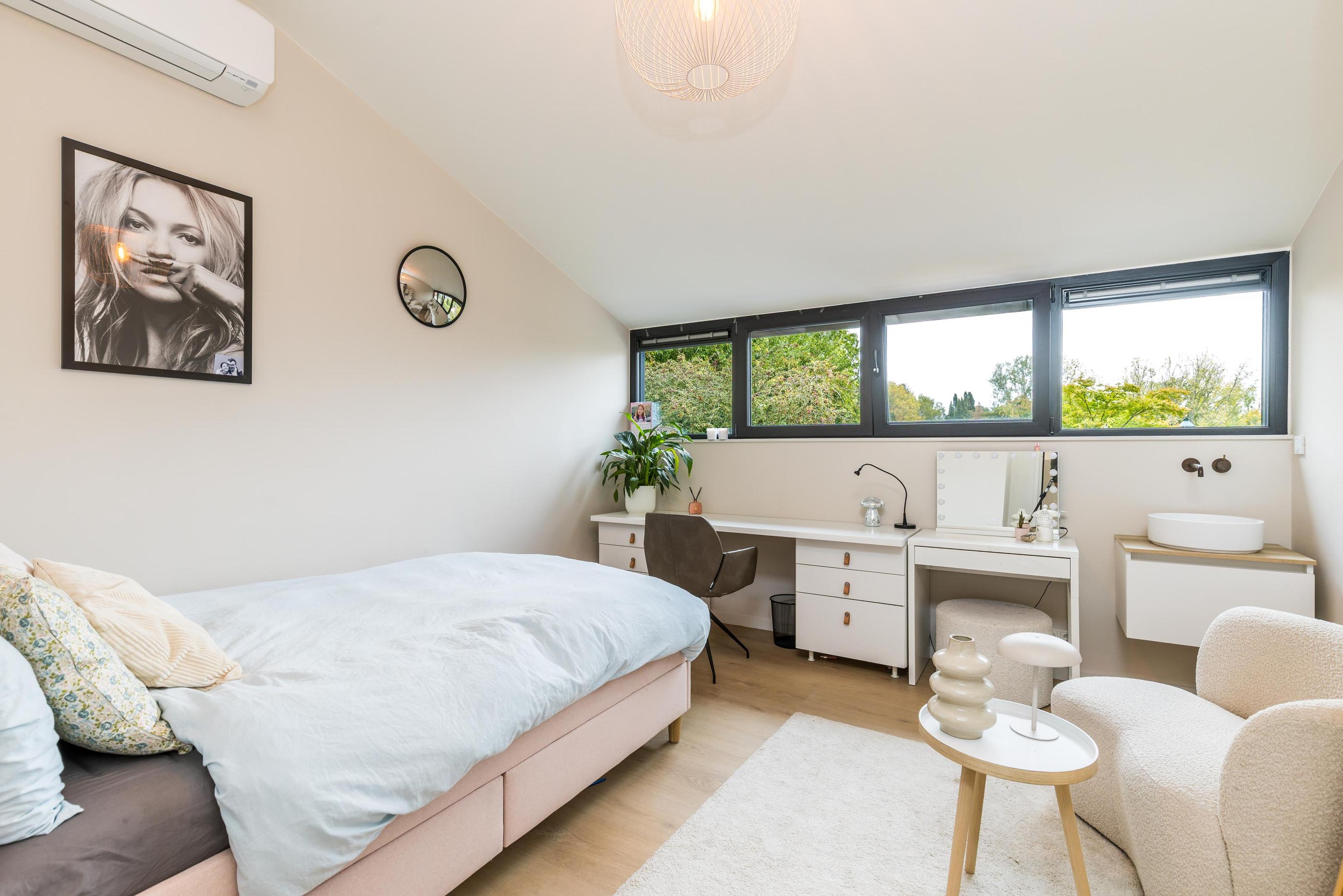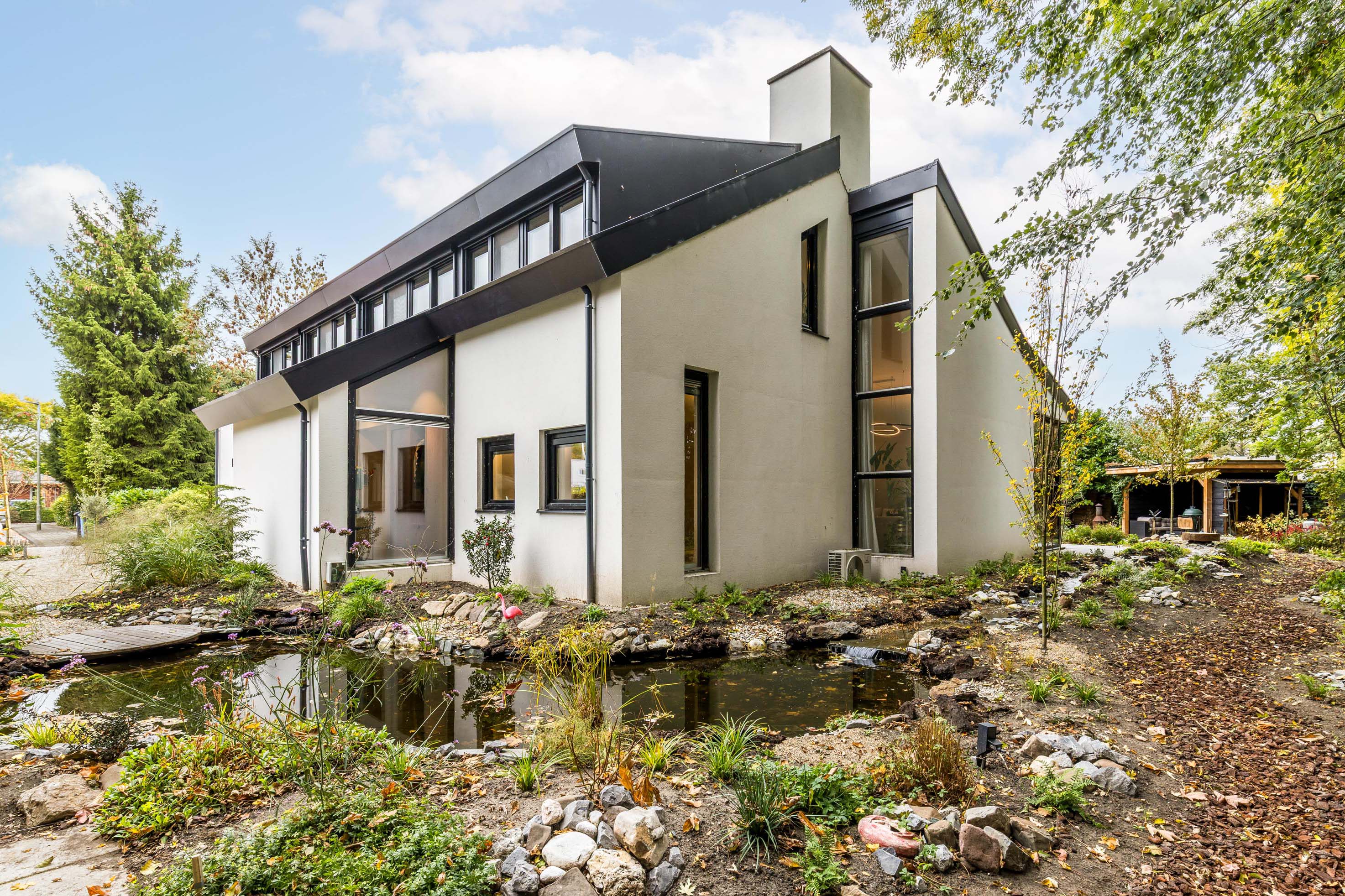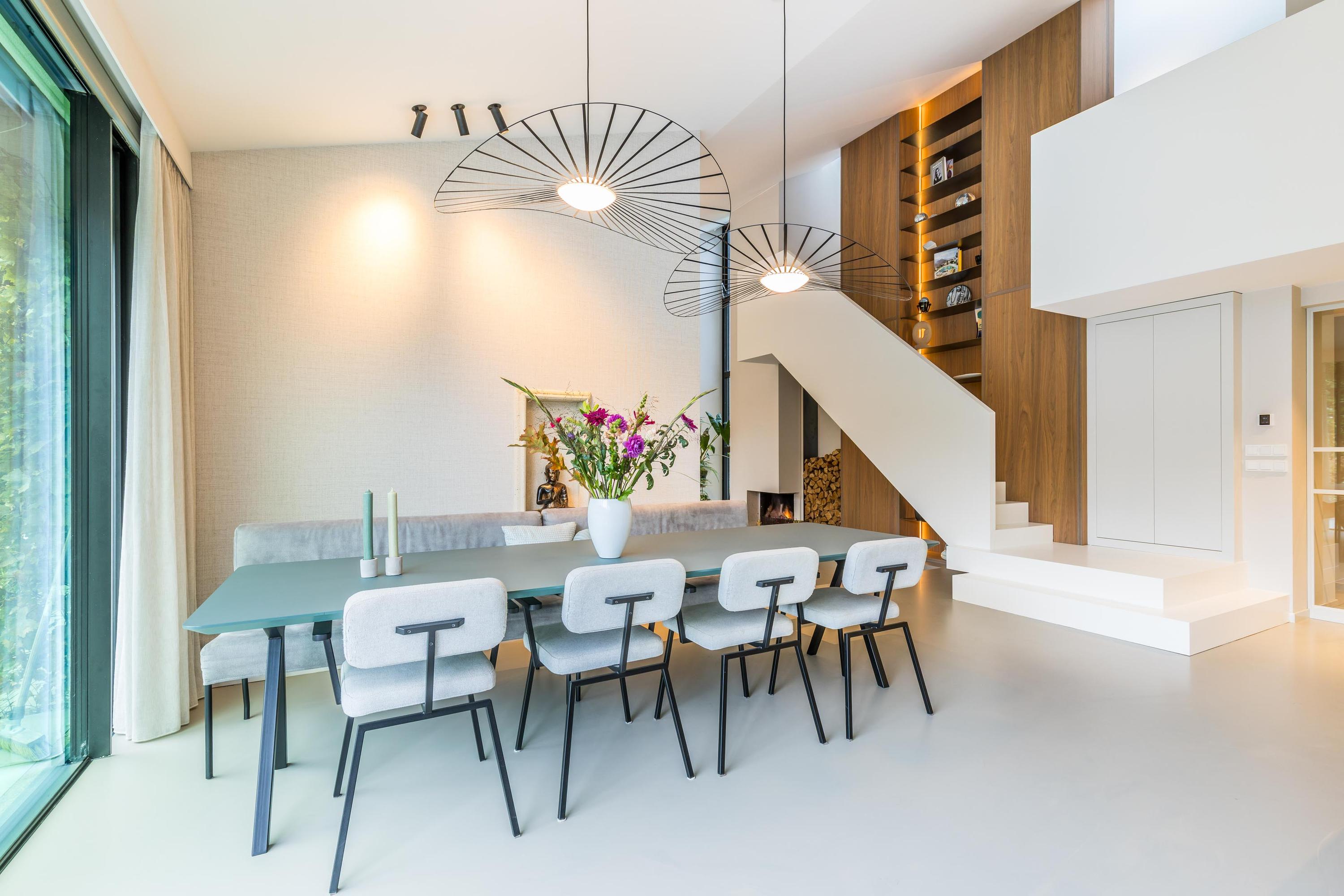 Sustainability is integrated through A++ insulation, a heat pump from 2024, 33 solar panels, and a charging station, keeping energy usage remarkably low. Living here means direct access to forest paths, rivers, and lakes, yet shops, schools—including international options—and transport links to Amsterdam and Utrecht are moments away. This luxury villa for sale in Rotterdam represents considered living where architecture, nature, and urban access meet.