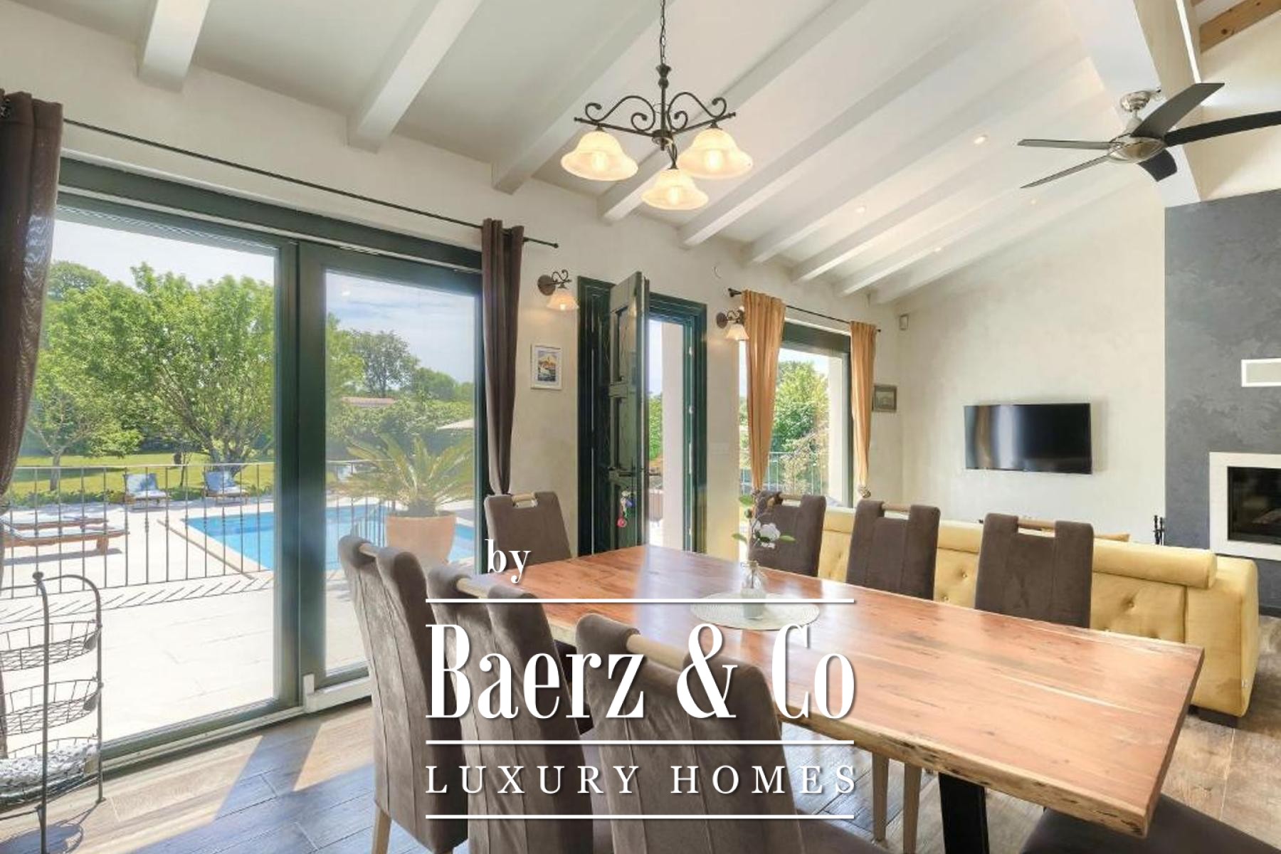 Villa Rovinj is set within a tranquil green enclave, offering a refined estate with two distinct residences and a sense of complete privacy. This villa Rovinj estate spans a living area of 200 m² on a generous 3,116 m² plot, where mature olive and fruit trees and Mediterranean planting provide a natural backdrop to daily life.