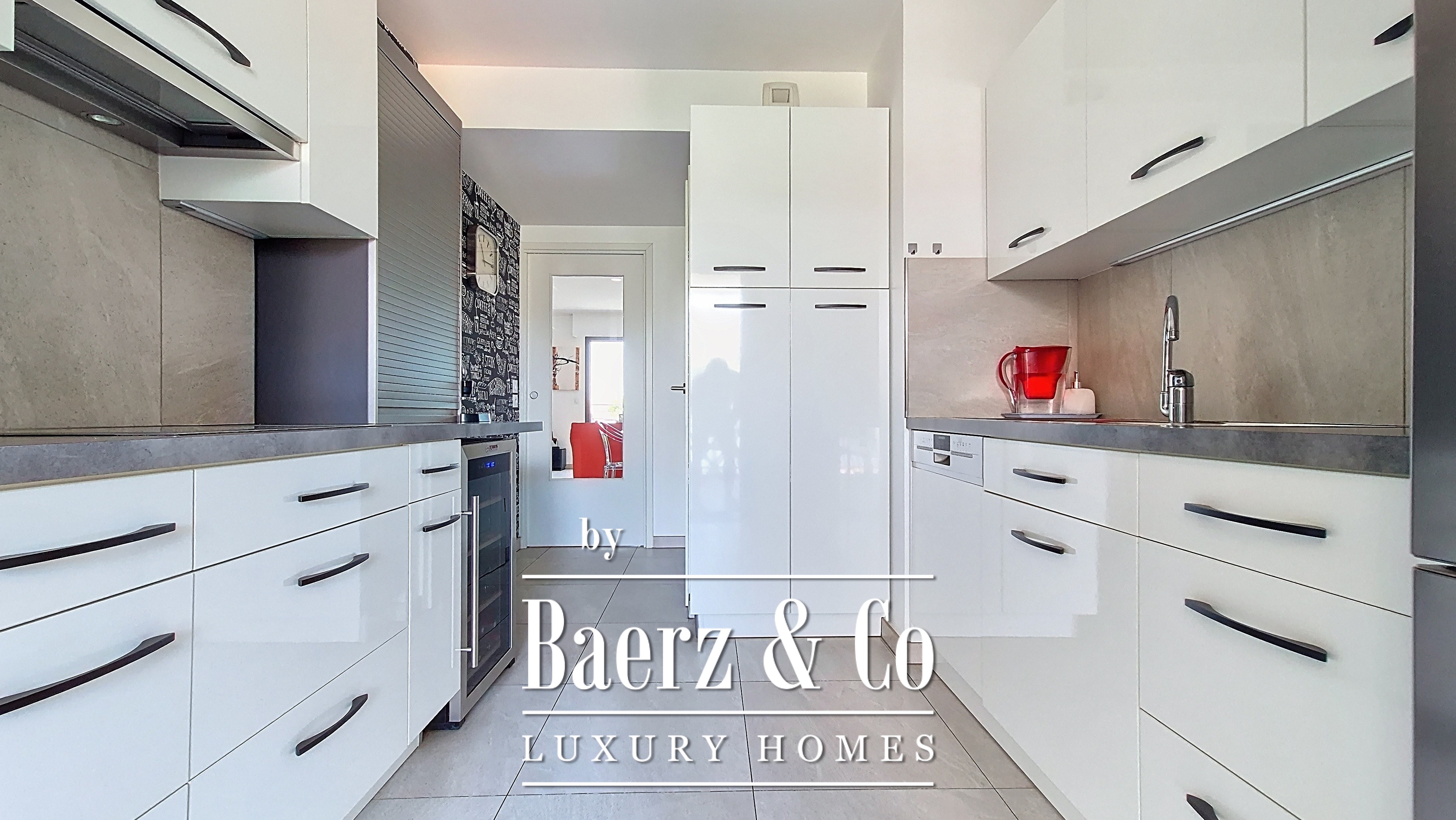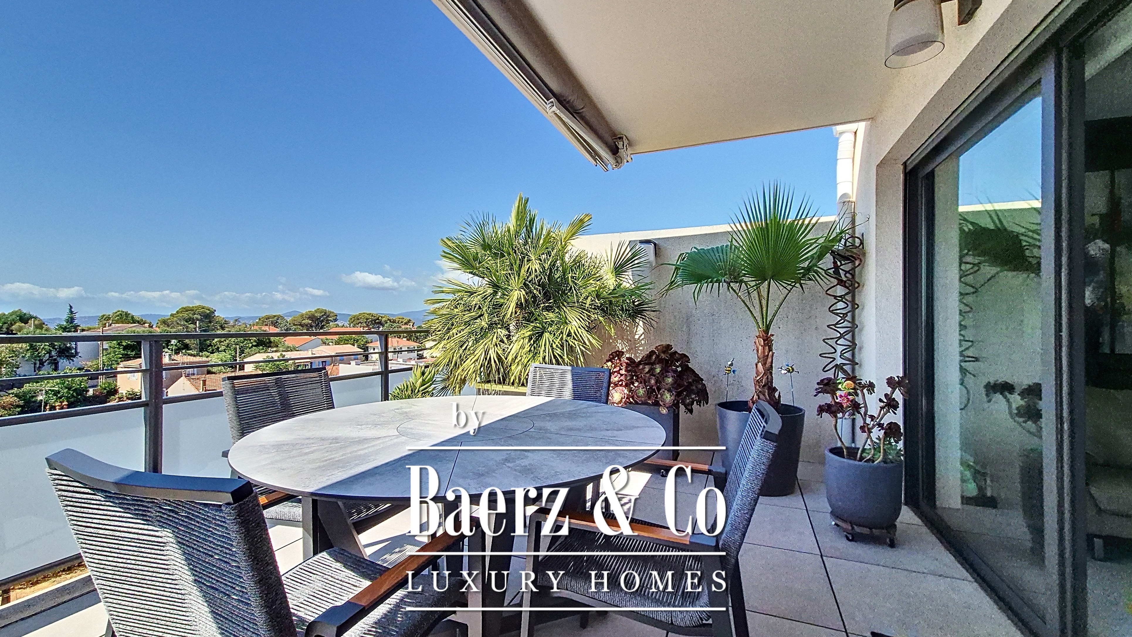 Apartment Saint Raphael is poised on the top floor of a refined contemporary residence, offering 102 m² of quietly luxurious living. The layout flows from a luminous living room to a large south-facing terrace, where a glimpse of the sea draws the outdoors in and soft daylight shapes each moment. The separate kitchen is fully equipped, supporting relaxed gatherings or focused culinary work. Three bedrooms, a bathroom, and a shower room assure calm and privacy, all finished with clarity and restraint.