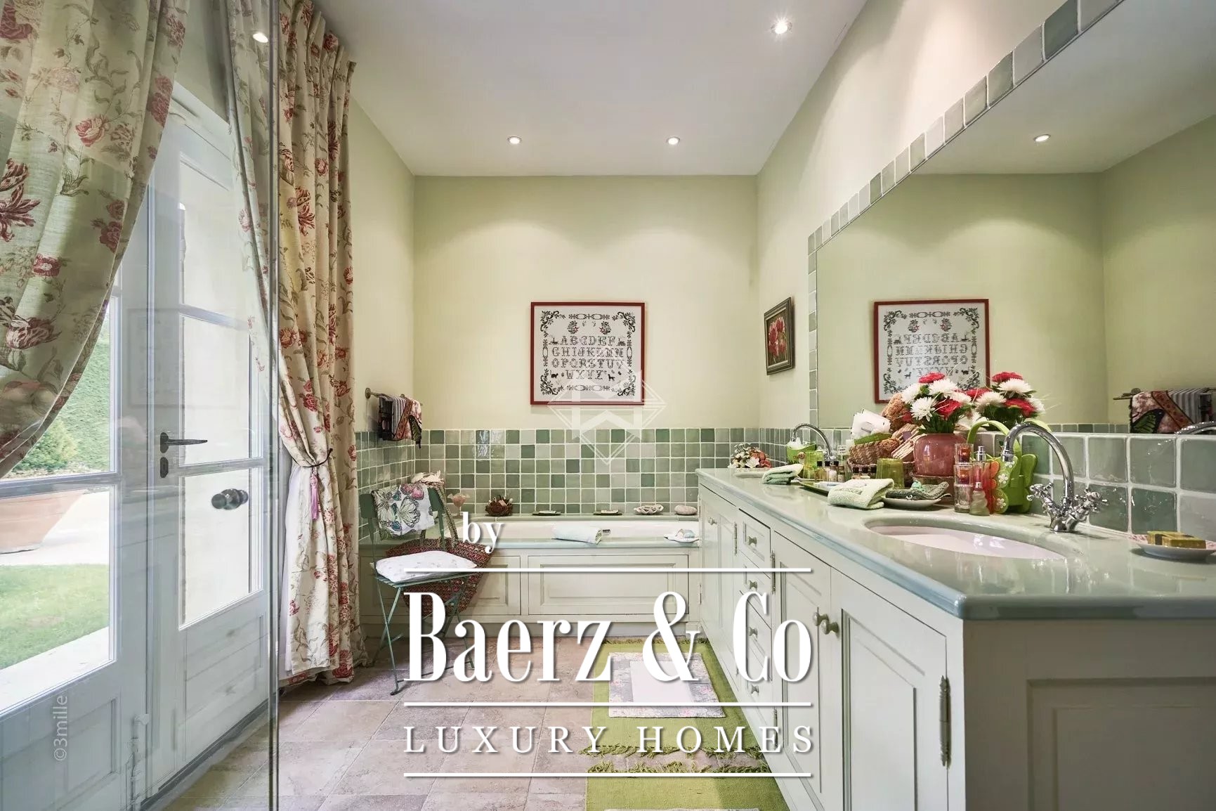 The bastide-style building with two levels is set on 4 400 m² land, enjoying large volumes and high-quality materials.