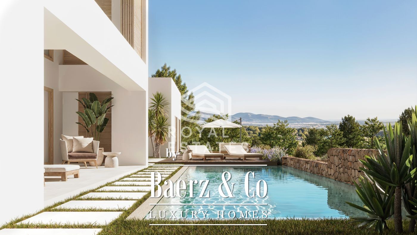 The development concept presents a contemporary take on traditional Ibizan architecture, defined by clean volumes, natural materials and an open flow between interiors and the outdoors. A granted building permit enables a swift move from vision to construction. The planned residence offers approximately 520 m² of built space with five bedrooms and five bathrooms, including distinct suites for family and guests. Interior design centers on abundant natural light and continuous movement between living, dining, terraces and pool area.