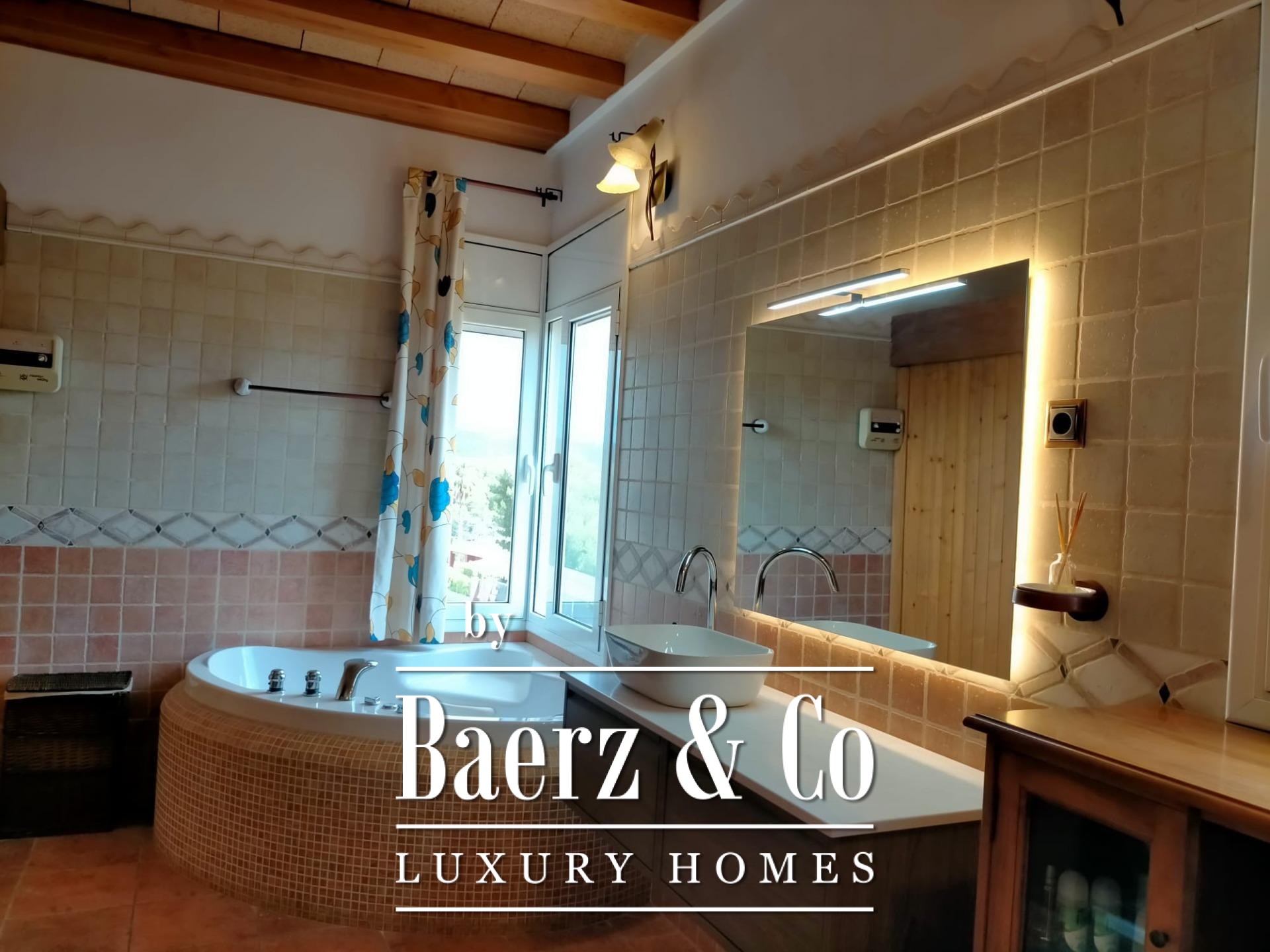 Villa Sant Pere de Ribes is quietly positioned in the esteemed Els Cards residential area, set between Sitges and Sant Pere de Ribes, where privacy and panoramic views define every living moment. This five-bedroom, three-bathroom villa blends traditional Spanish architecture with contemporary refinement. Recently renovated interiors preserve authentic details such as arches and natural textures, while bringing in clean modern lines and warm tones. The open-plan main floor flows across kitchen, dining and living spaces, illuminated by abundant sunlight from windows on two sides. A statement fireplace centers the living area, offering an inviting gathering point year-round.