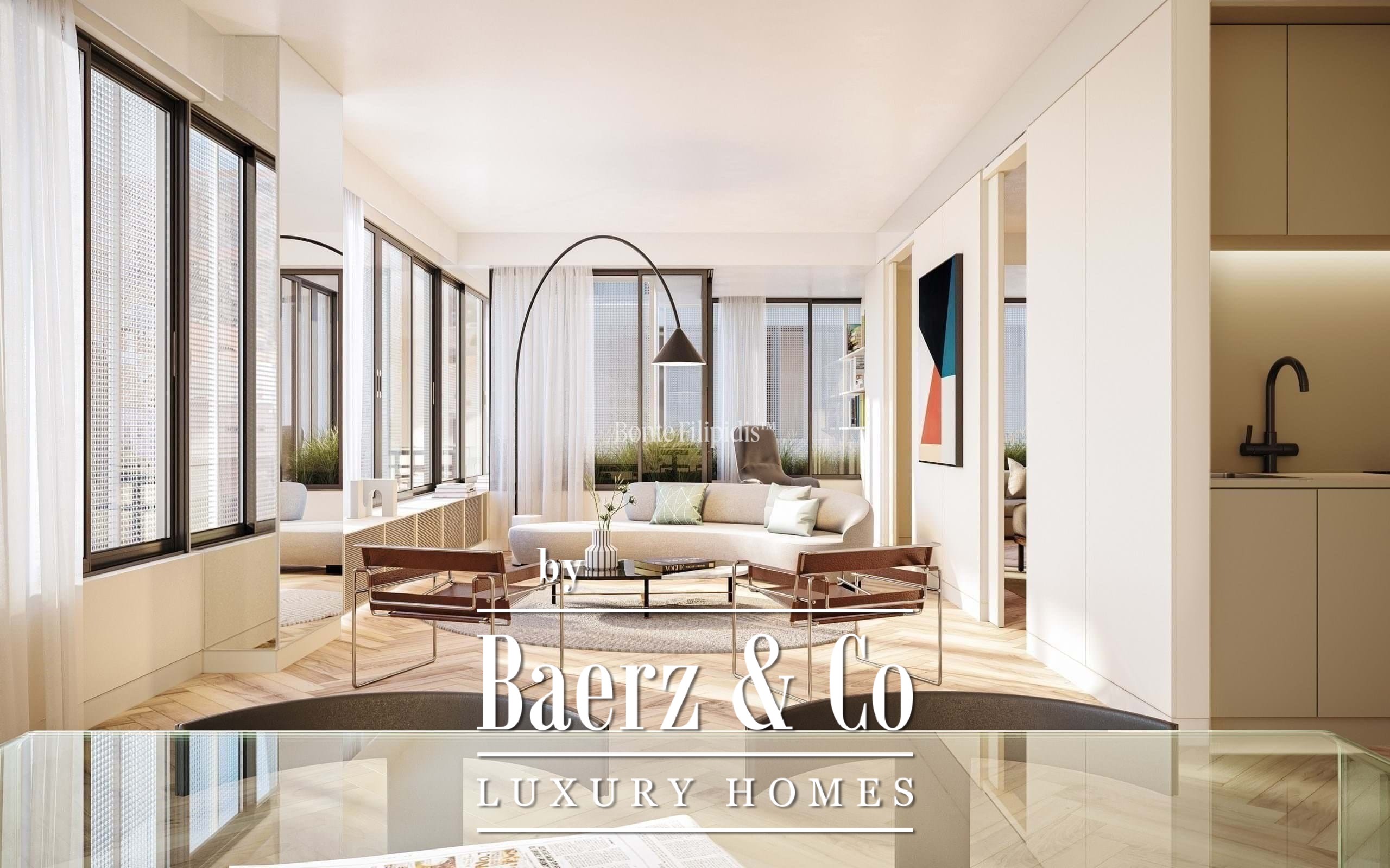 Natural light enters through expansive windows, while interiors are carefully designed to balance comfort and discretion. Thoughtful details such as a fully equipped kitchen, air conditioning pre-installation, and an elevator reflect the building’s commitment to comfort and sustainability, including the use of solar energy. A 13 m² exterior gross area extends the living experience outdoors.