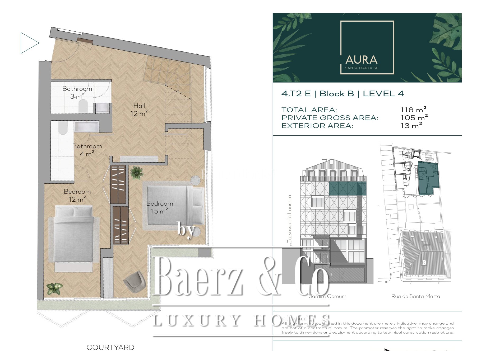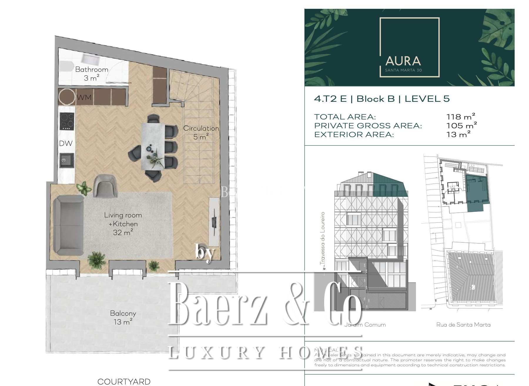 Duplex apartment Santo António is set within Aura Residences, just moments from Avenida da Liberdade, one of Lisbon’s most celebrated addresses for luxury and cosmopolitan life. This 2 bedroom, 3 bathroom duplex quietly claims 105 m² of refined living space, elevated by garden views and contemporary finishes across two floors. The building’s modern architecture harmonizes with traditional forms and green spaces, including a dedicated 180 m² communal garden, an inviting pool, a gym, and private parking.