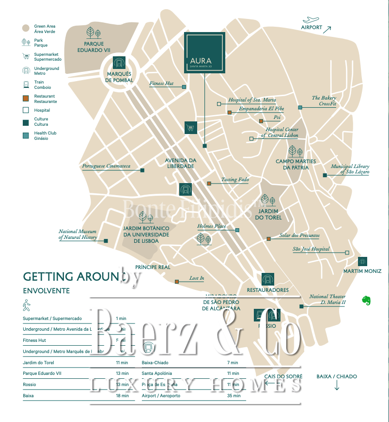 Aura’s setting delivers direct access to cultural icons, fine dining, theaters, and curated boutiques. Only steps away from designer shops, historic cafés, and award-winning restaurants, this duplex apartment in Santo António appeals to those seeking the intersection of Lisbon’s heritage and modern vibrancy, all within a private, expertly serviced enclave.