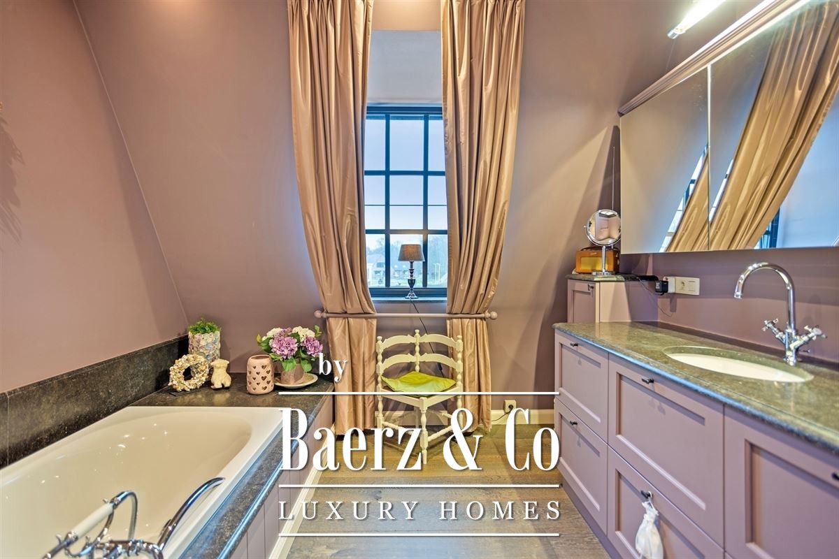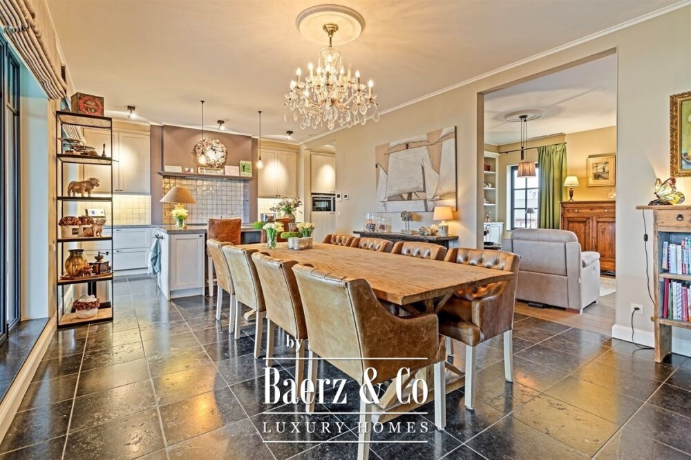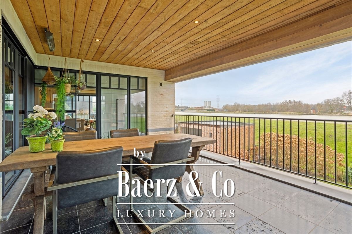 This duplex apartment Schilde stands quietly just outside the town center, situated in Zandhoven yet easily accessible from Schilde, and offers sweeping, uninterrupted vistas over the Albertkanaal. The property blends understated design with tailored comforts across its 364m² living area. On arrival, a landscaped front garden leads you to multiple parking options, including a garage with automated entry, carport, and a extended basement of 182m². The private entrance hall, accessible via lift or stairs, introduces a thoughtfully arranged interior highlighted by oak and natural stone finishes.