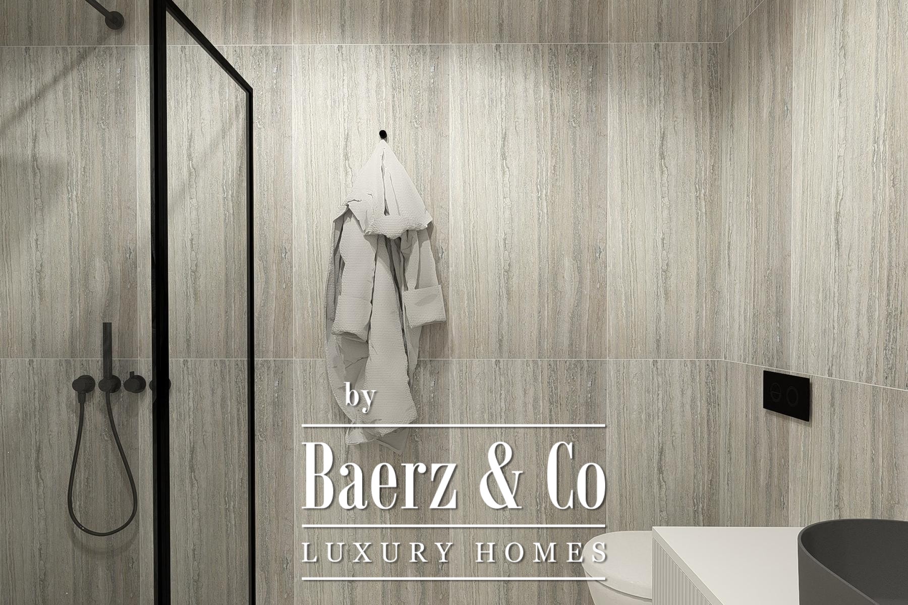 bathroom, one separate bathroom, and a spacious terrace with a pool and a sea view. Above the apartment there is a spacious roof terrace with a sunbathing area and a barbecue area. Each room has air conditioning, and the apartment also has underfloor heating. The building is equipped with an elevator.The building is located only 40 meters from the sea. This is a luxury project consisting of two buildings, with a total of 9 apartments, where each apartment has a private pool.We are at your disposal for all other information.