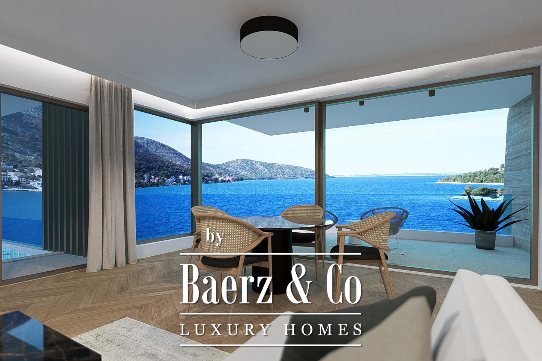 private bathroom, one separate bathroom, and a spacious terrace with a swimming pool and sea view. Each room has air conditioning, and the apartment also has underfloor heating. The building is equipped with an elevator.The building is located only 40 meters from the sea. This is a luxury project consisting of two buildings, with a total of 9 apartments, where each apartment has a private pool.We are at your disposal for all other information.