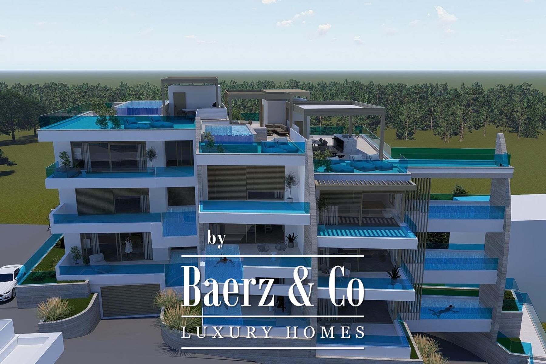 and dining room, three bedrooms, each with a private bathroom, and a spacious terrace with a swimming pool and sea view. Each room has air conditioning, and the apartment also has underfloor heating.The building is located just 40 meters from the sea. It is a luxury project consisting of two buildings, with a total of 9 apartments, where each apartment has a private pool.We are at your disposal for all other information.